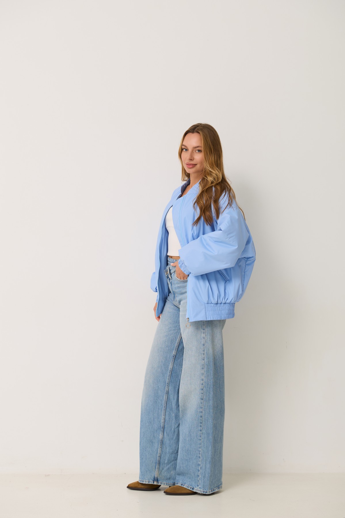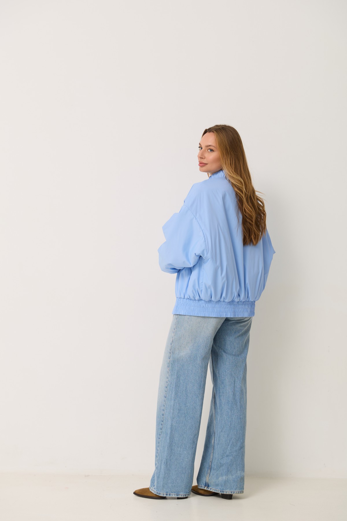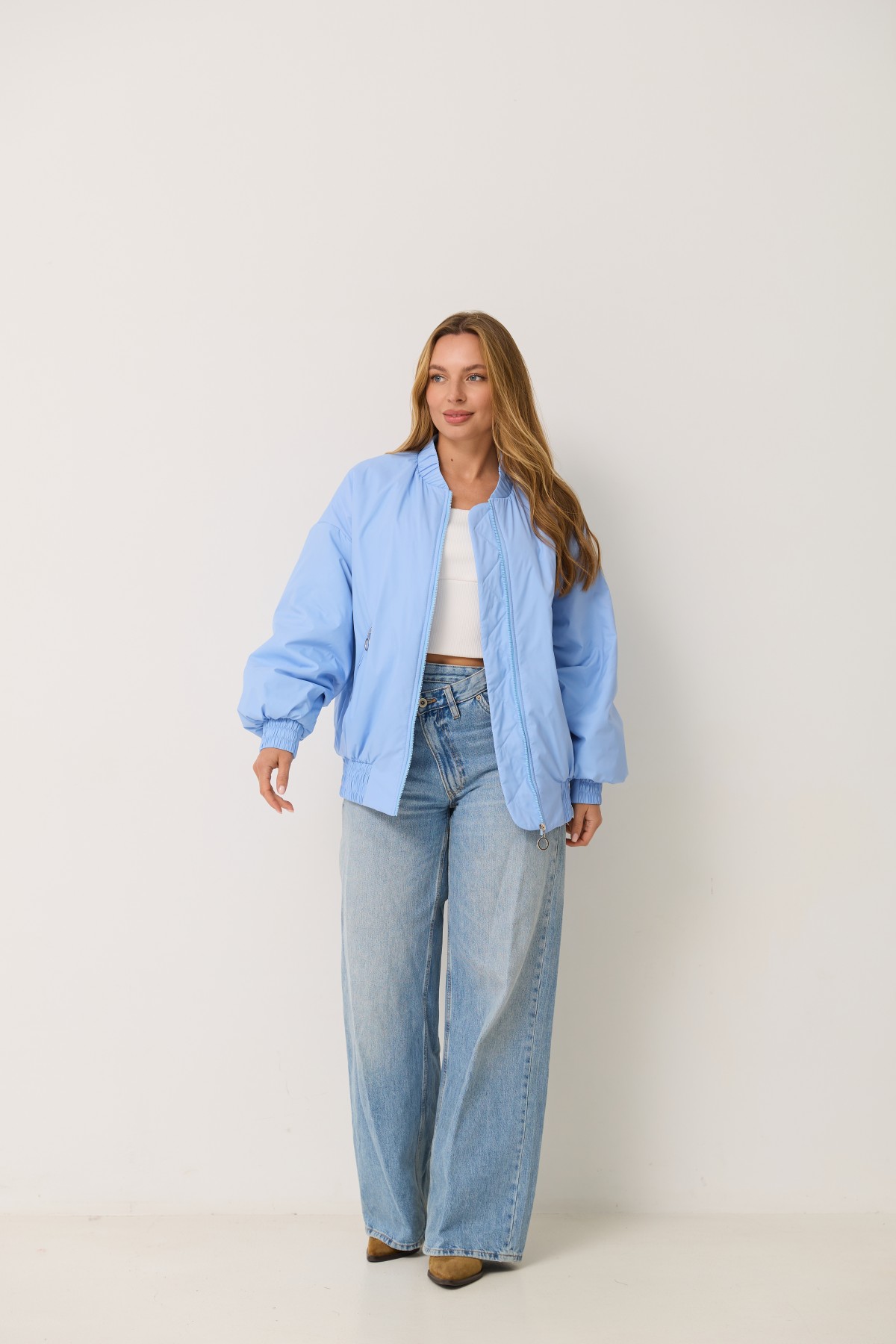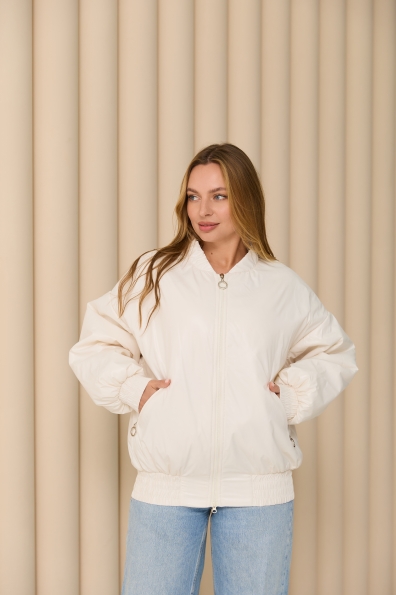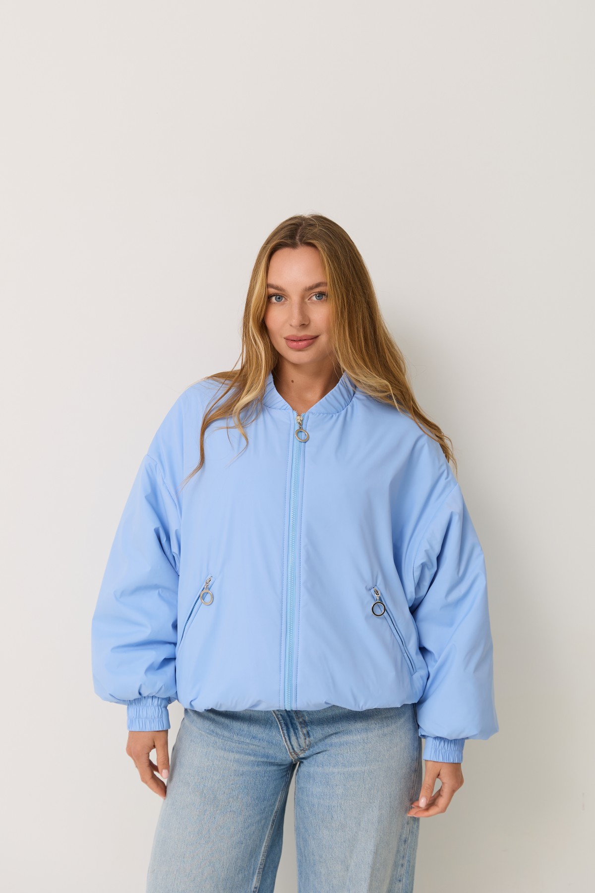 Стильна куртка-бомбер прямого підходить під стиль "спорт шик" та "кежуал". Застібка по борту на блискавці, для комфорту передбачений вітровик. Довжина куртки на рівні стегна. Низ виробу закінчується широким манжетом на гумці, що надає зручності в експлуатації. Комір-стійка еластичний завдяки гумці, можна носити як худі з капюшоном так і футболку. Втачний одношовний рукав, низ рукава закінчується манжетом на резинці.