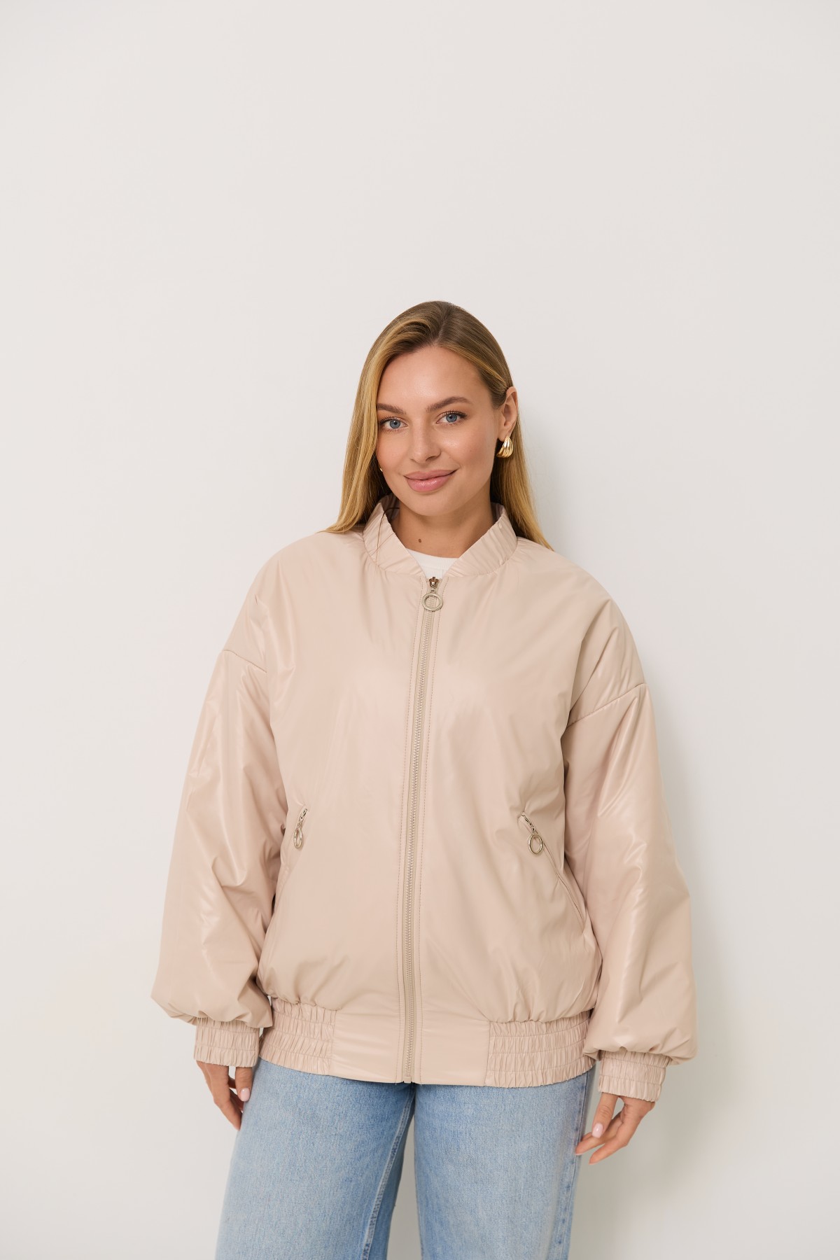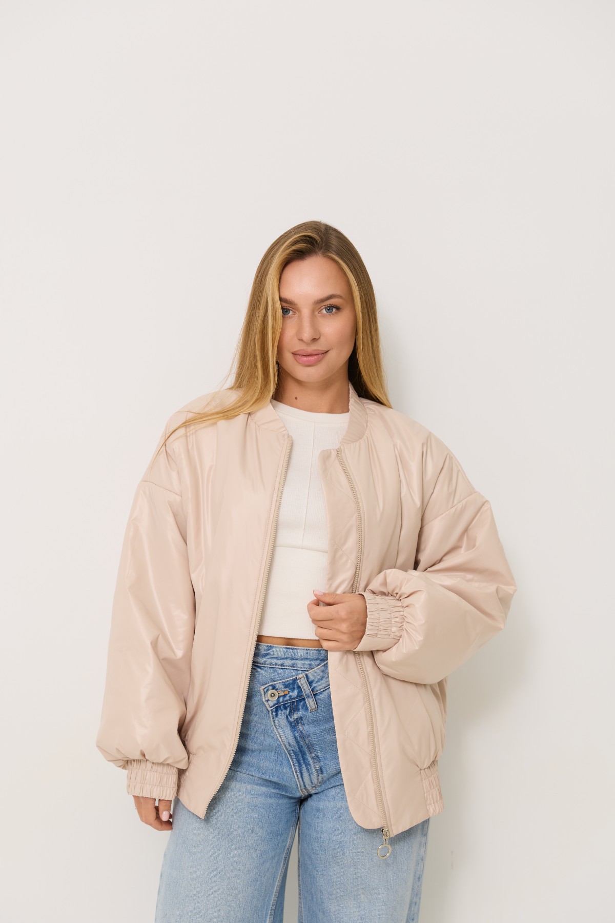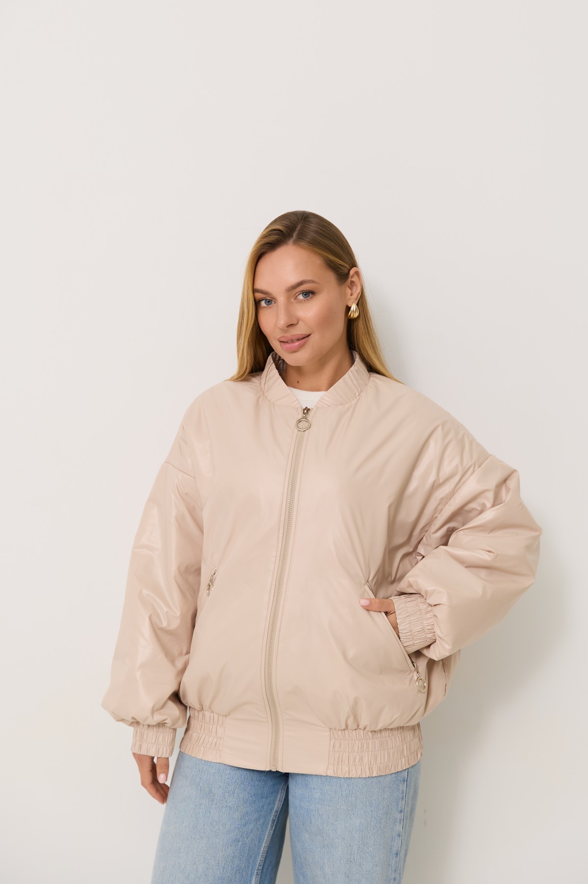 Стильна куртка-бомбер прямого підходить під стиль "спорт шик" та "кежуал". Застібка по борту на блискавці, для комфорту передбачений вітровик. Довжина куртки на рівні стегна. Низ виробу закінчується широким манжетом на гумці, що надає зручності в експлуатації. Комір-стійка еластичний завдяки гумці, можна носити як худі з капюшоном так і футболку. Втачний одношовний рукав, низ рукава закінчується манжетом на резинці.