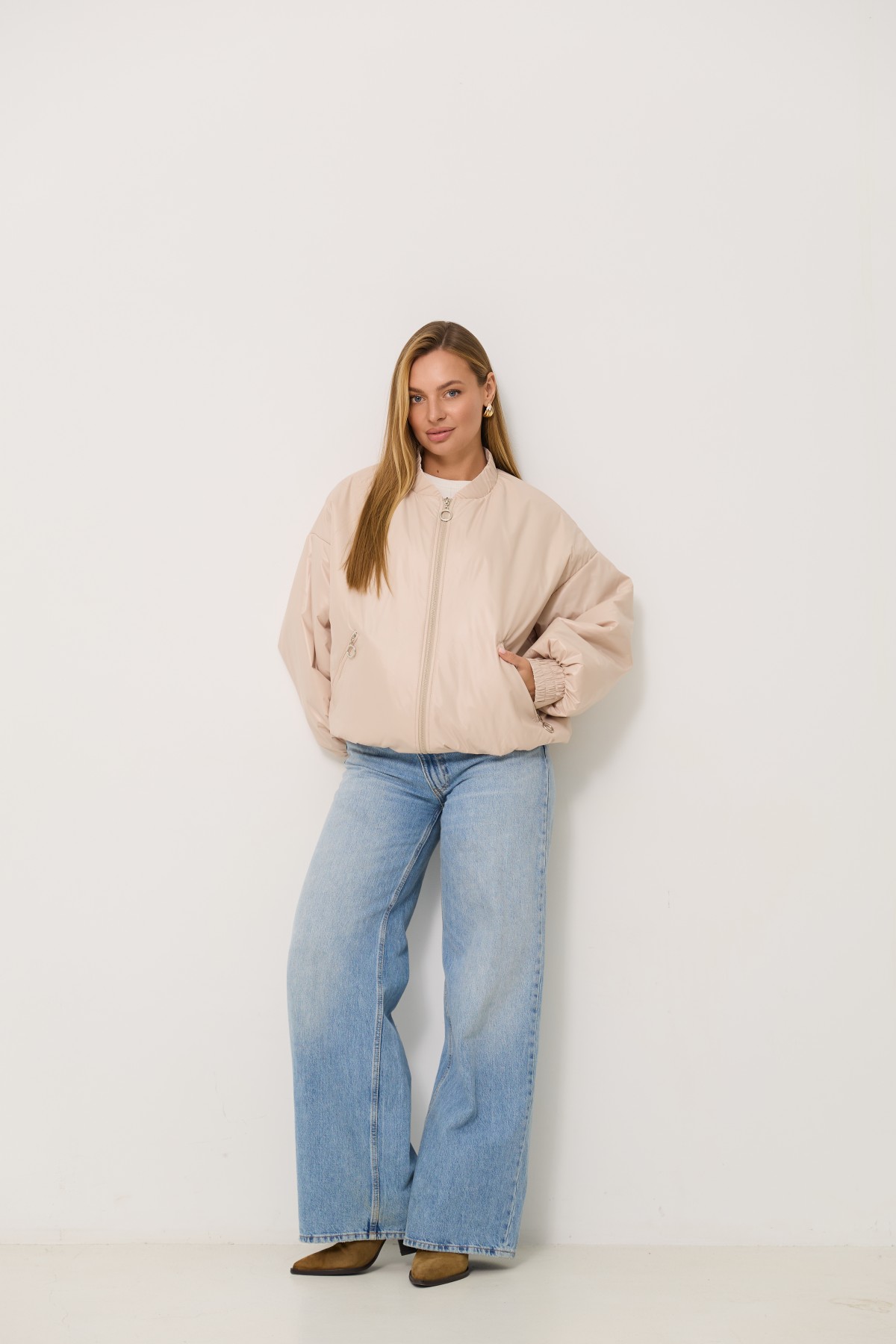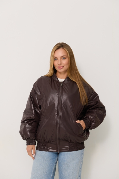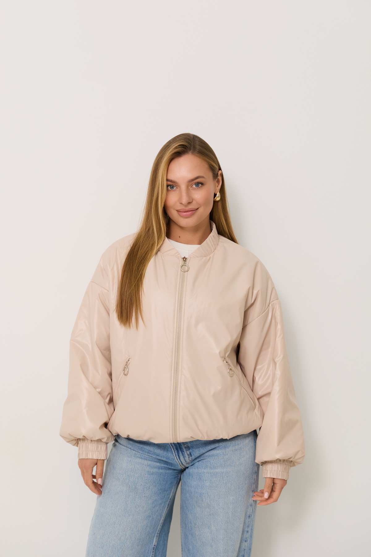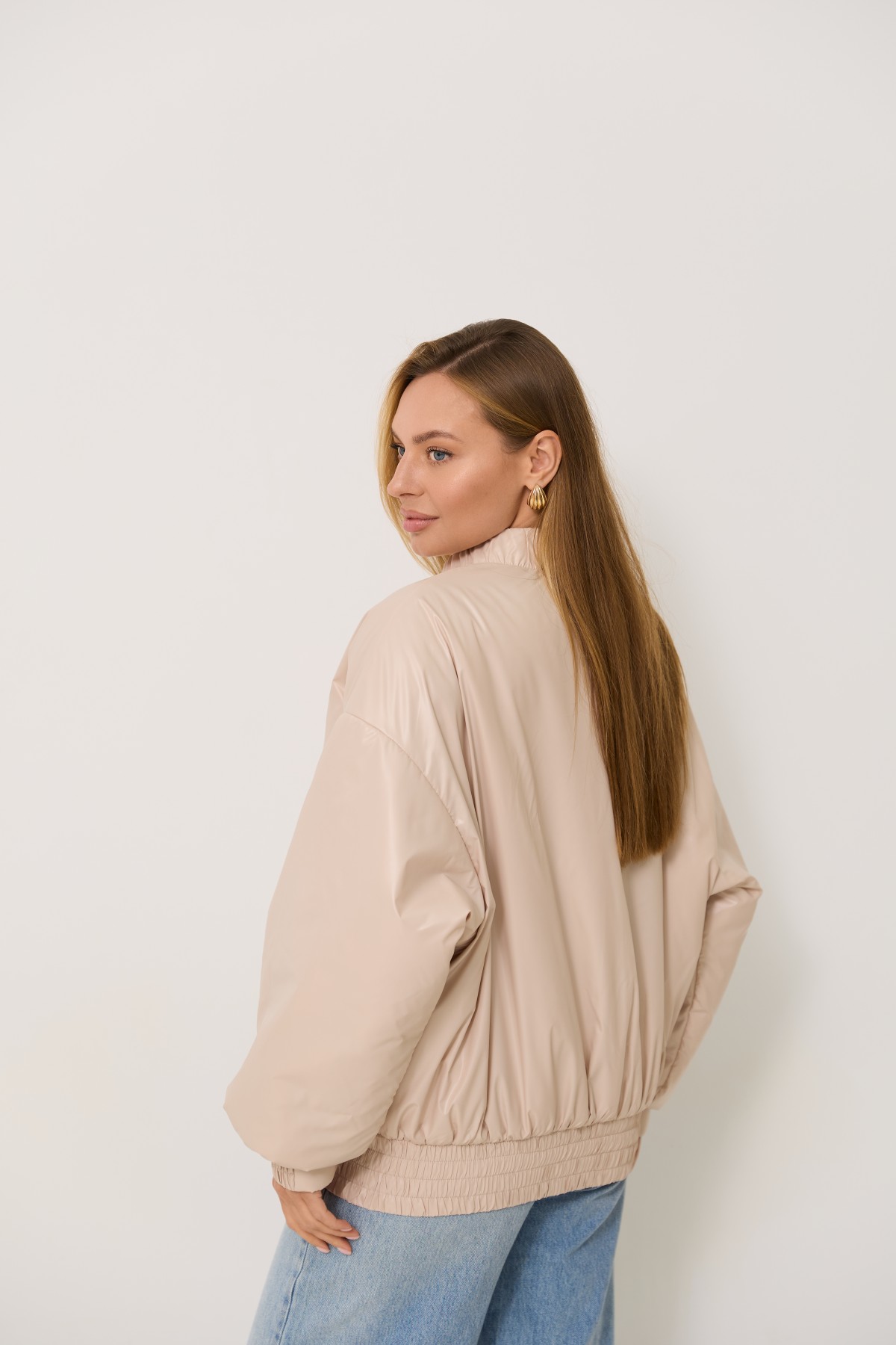 Стильна куртка-бомбер прямого підходить під стиль "спорт шик" та "кежуал". Застібка по борту на блискавці, для комфорту передбачений вітровик. Довжина куртки на рівні стегна. Низ виробу закінчується широким манжетом на гумці, що надає зручності в експлуатації. Комір-стійка еластичний завдяки гумці, можна носити як худі з капюшоном так і футболку. Втачний одношовний рукав, низ рукава закінчується манжетом на резинці.