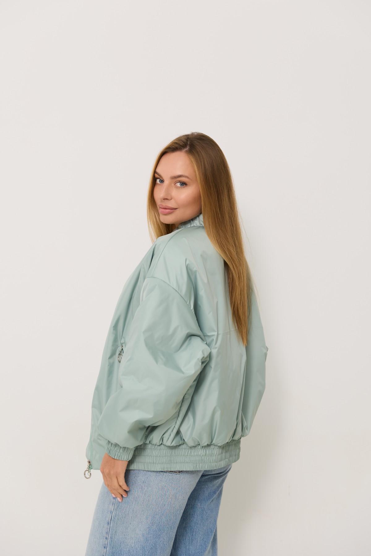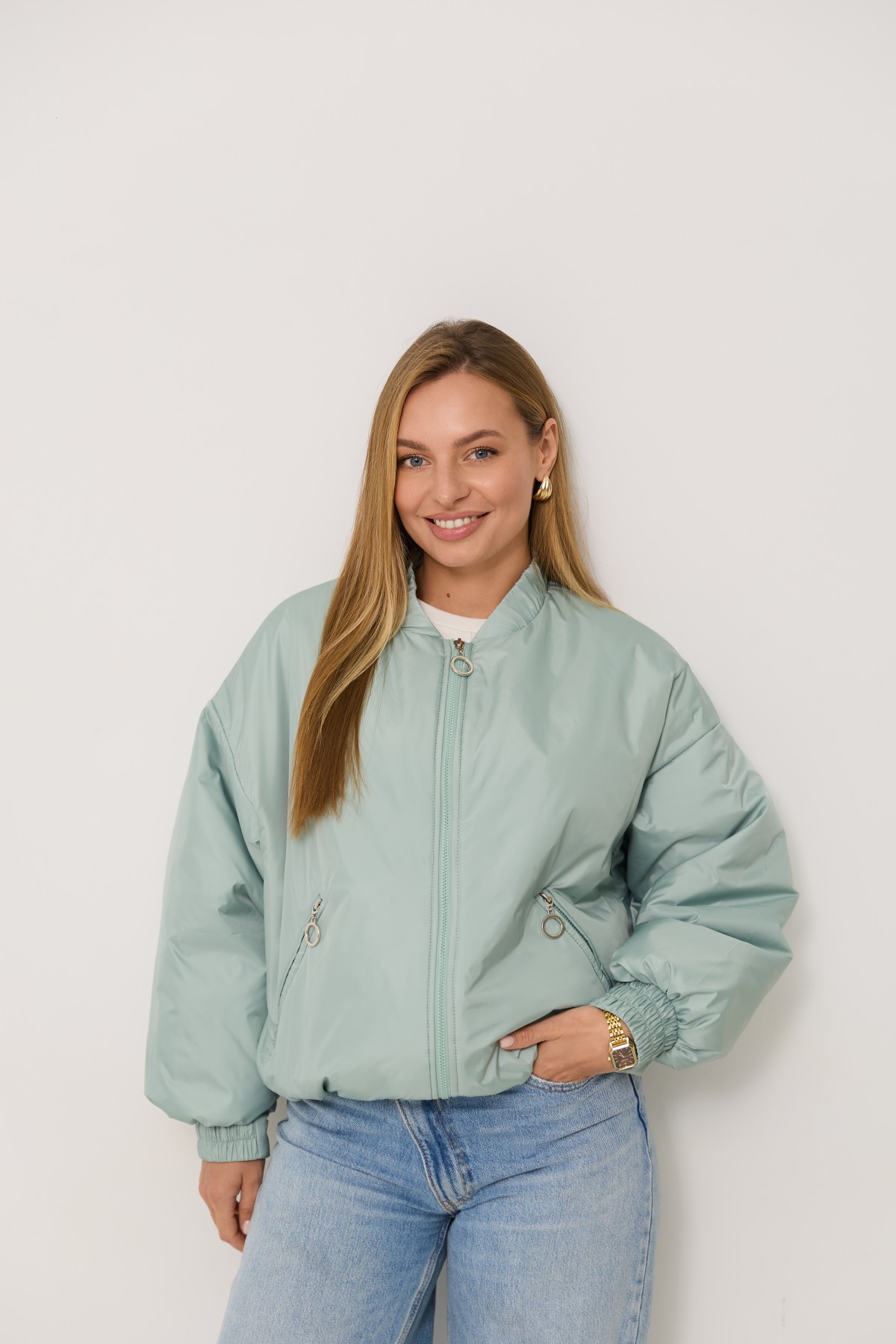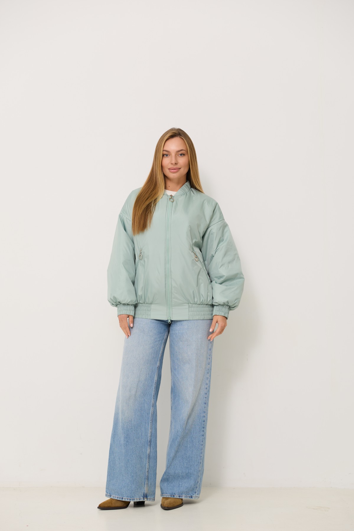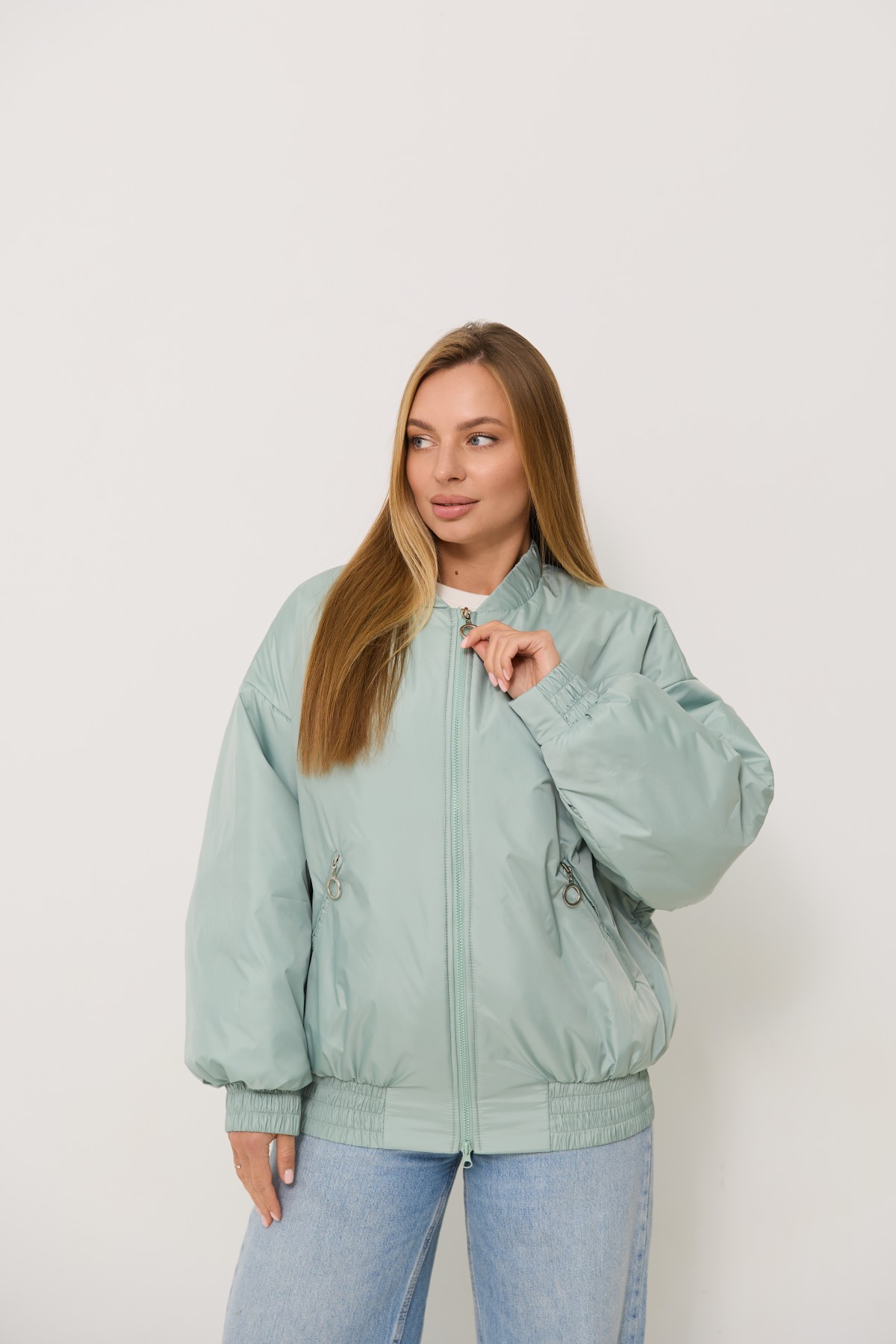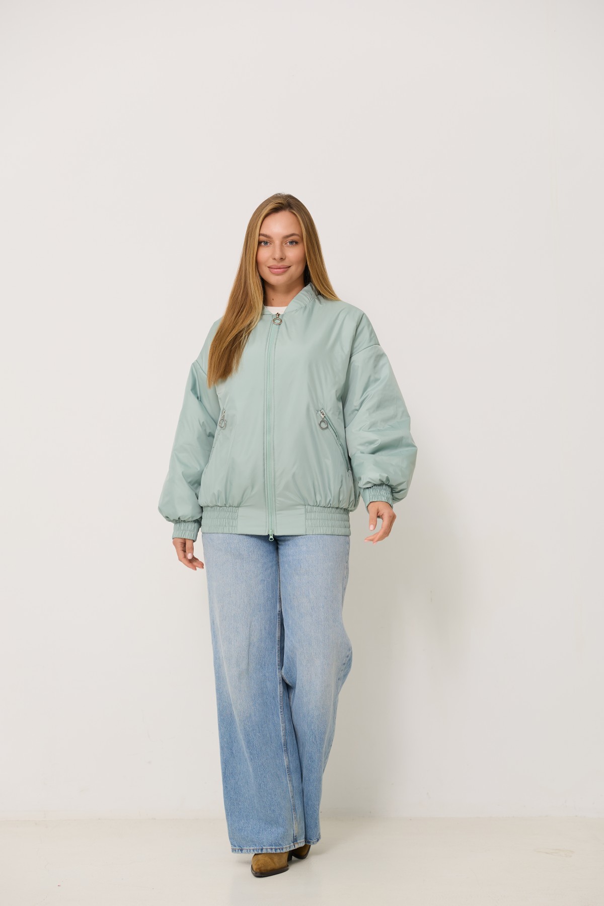 Стильна куртка-бомбер прямого підходить під стиль "спорт шик" та "кежуал". Застібка по борту на блискавці, для комфорту передбачений вітровик. Довжина куртки на рівні стегна. Низ виробу закінчується широким манжетом на гумці, що надає зручності в експлуатації. Комір-стійка еластичний завдяки гумці, можна носити як худі з капюшоном так і футболку. Втачний одношовний рукав, низ рукава закінчується манжетом на резинці.