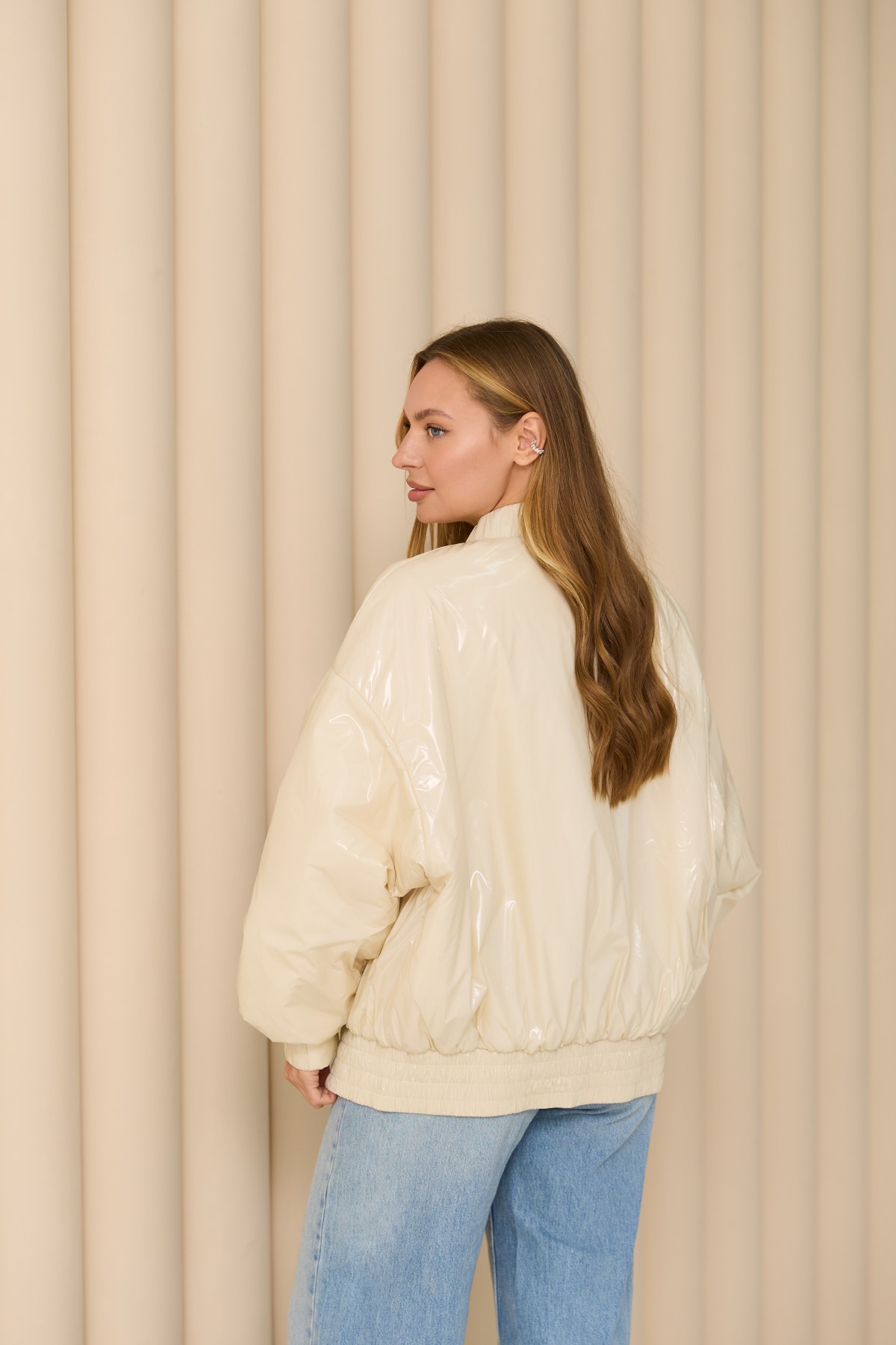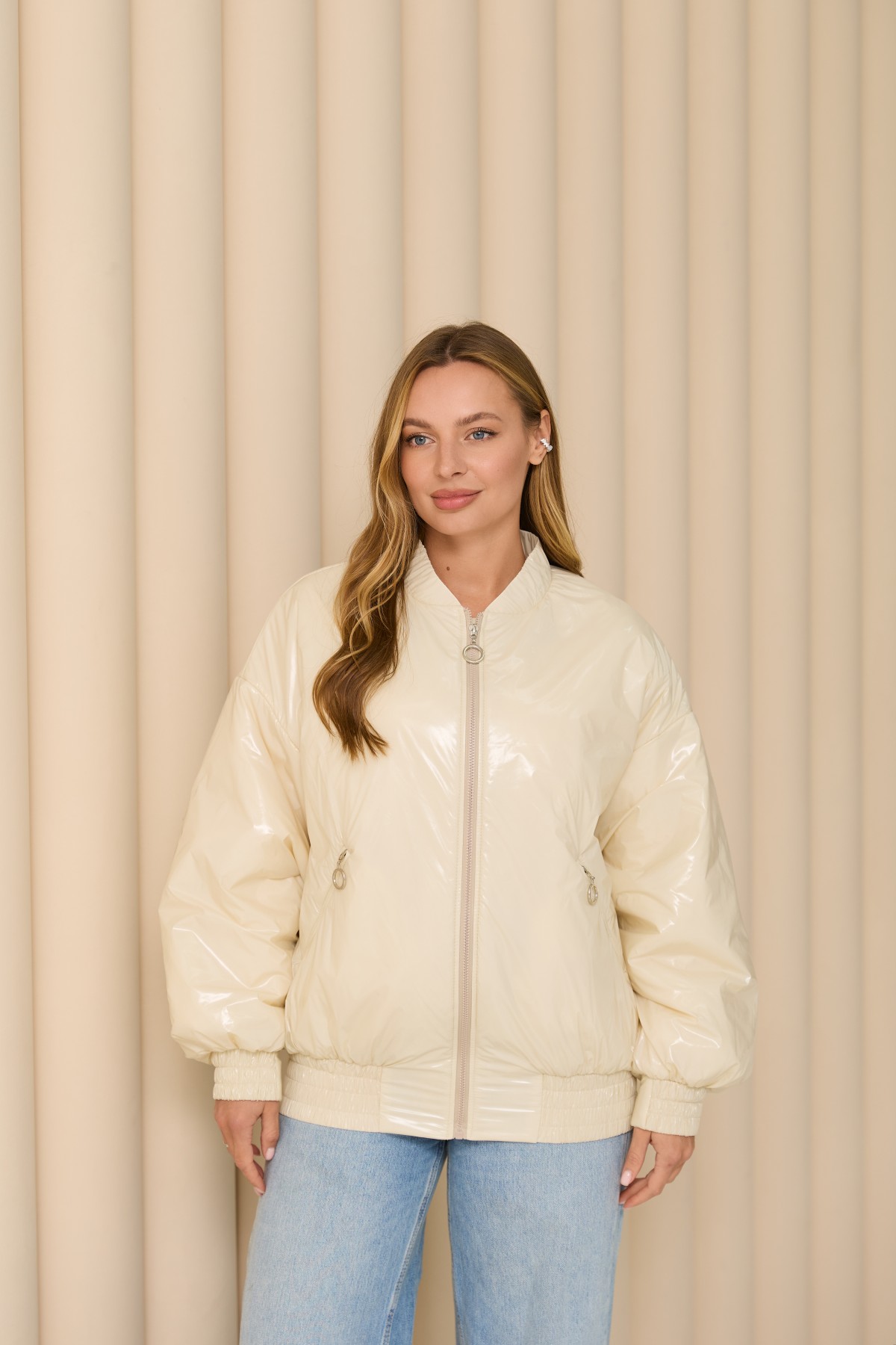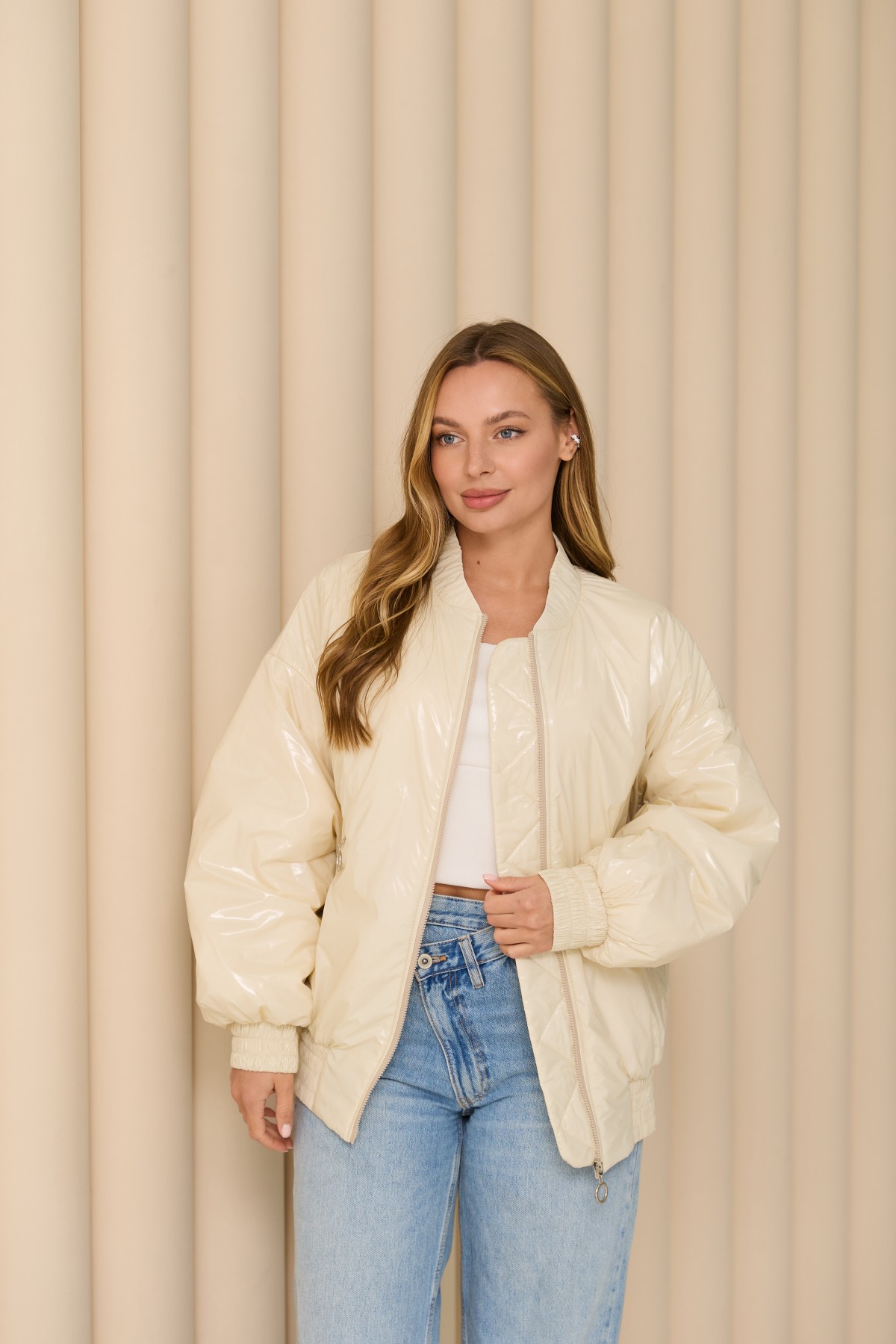 Стильна куртка-бомбер прямого підходить під стиль "спорт шик" та "кежуал". Застібка по борту на блискавці, для комфорту передбачений вітровик. Довжина куртки на рівні стегна. Низ виробу закінчується широким манжетом на гумці, що надає зручності в експлуатації. Комір-стійка еластичний завдяки гумці, можна носити як худі з капюшоном так і футболку. Втачний одношовний рукав, низ рукава закінчується манжетом на резинці.