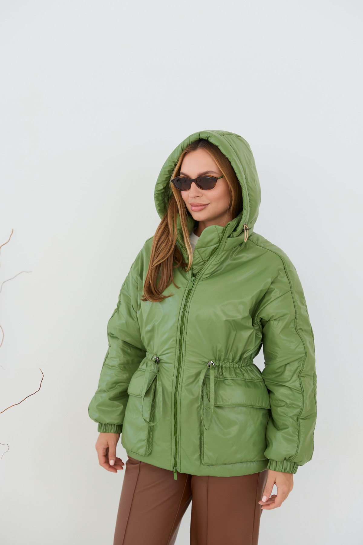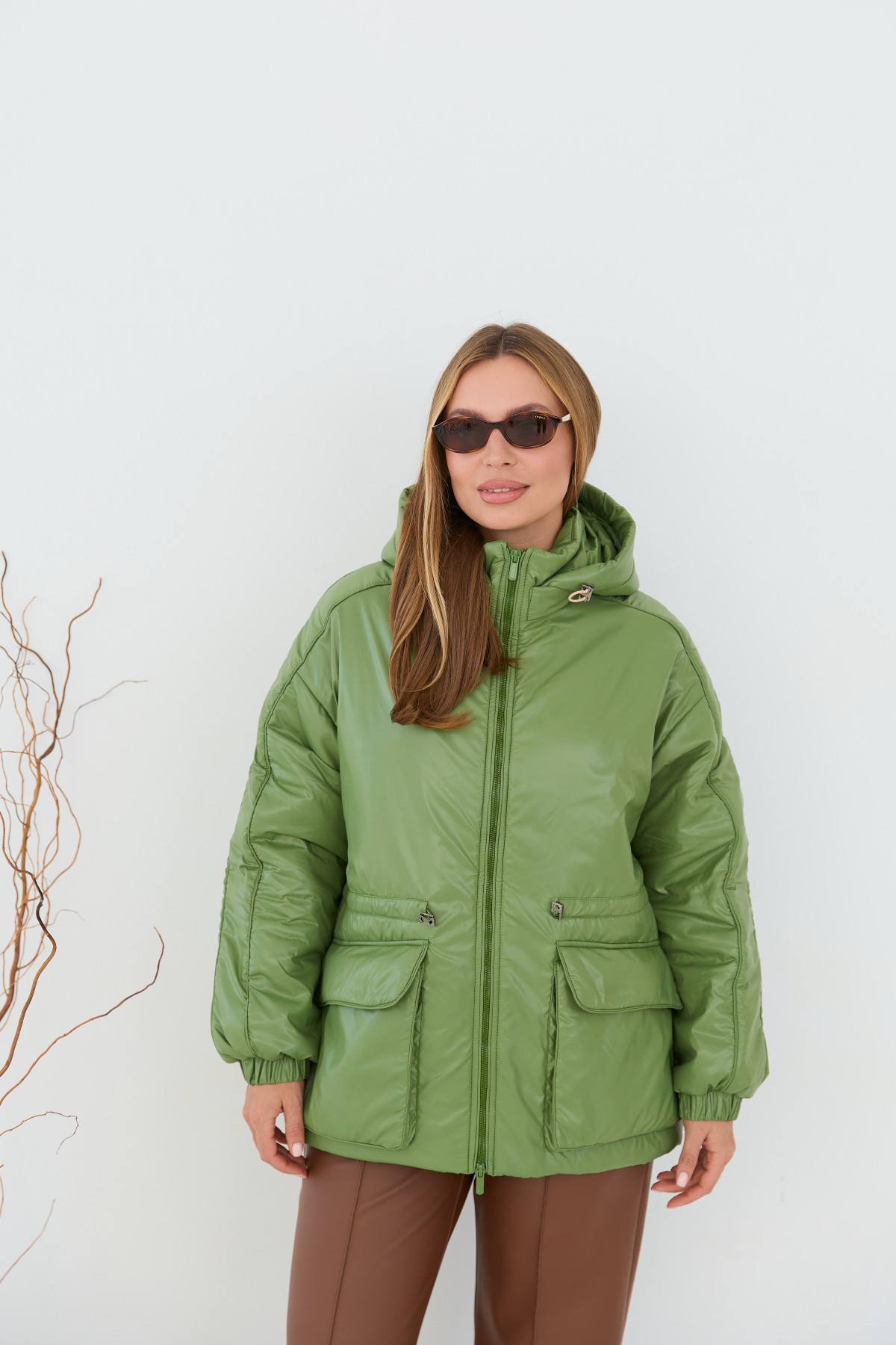 Хіт сезону - куртка крою "oversize" зі спущеним рукавом та капюшоном, прямого силуету у стилі кежуал. Довжина виробу нижче лінії стегна, по низу. Центральна застібка – на блискавці. Комір-стійка з пристібним капюшоном, який по лінії відльоту регулюється по висоті лаштункою з фіксатором. Рукав спущений – вільний, понизу на манжеті, застібається на декоративну кнопку. кишені накладні з клапаном на кнопках По лінії талії куліса обсяг талії регулюється шнуром з фіксаторами.Універсальна куртка, зручна та практична, прослужить вам кілька сезонів. Її можна поєднувати з одягом у спортивному та класичному стилі. Підійде для повсякденного носіння, подорожей та занять спортом.