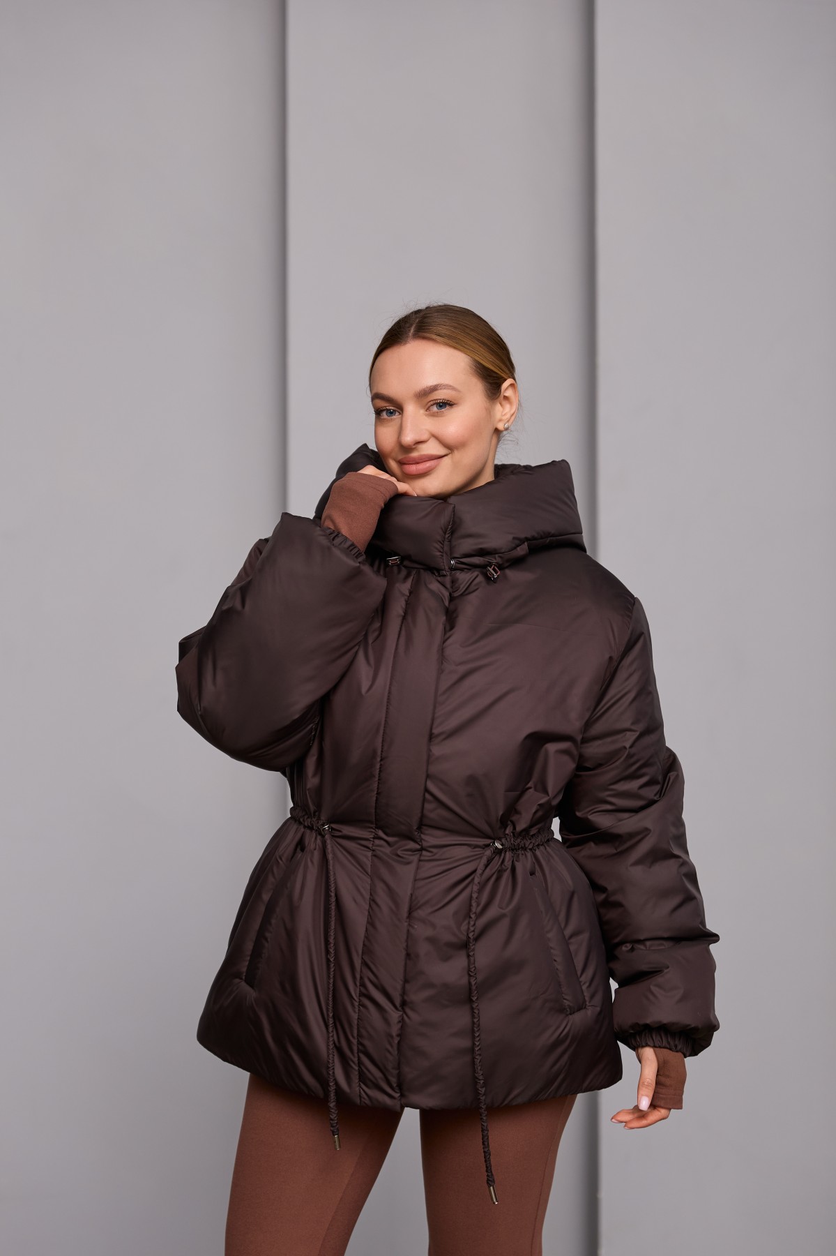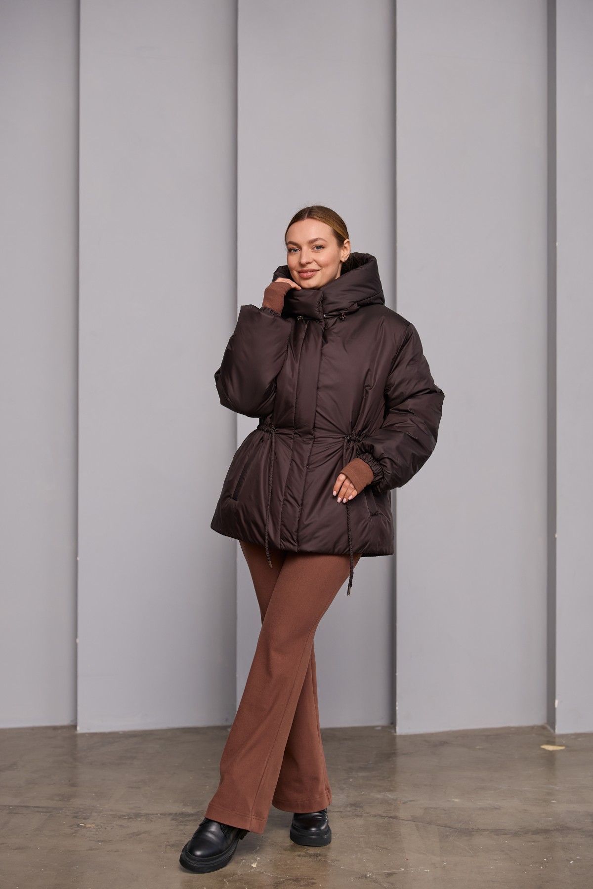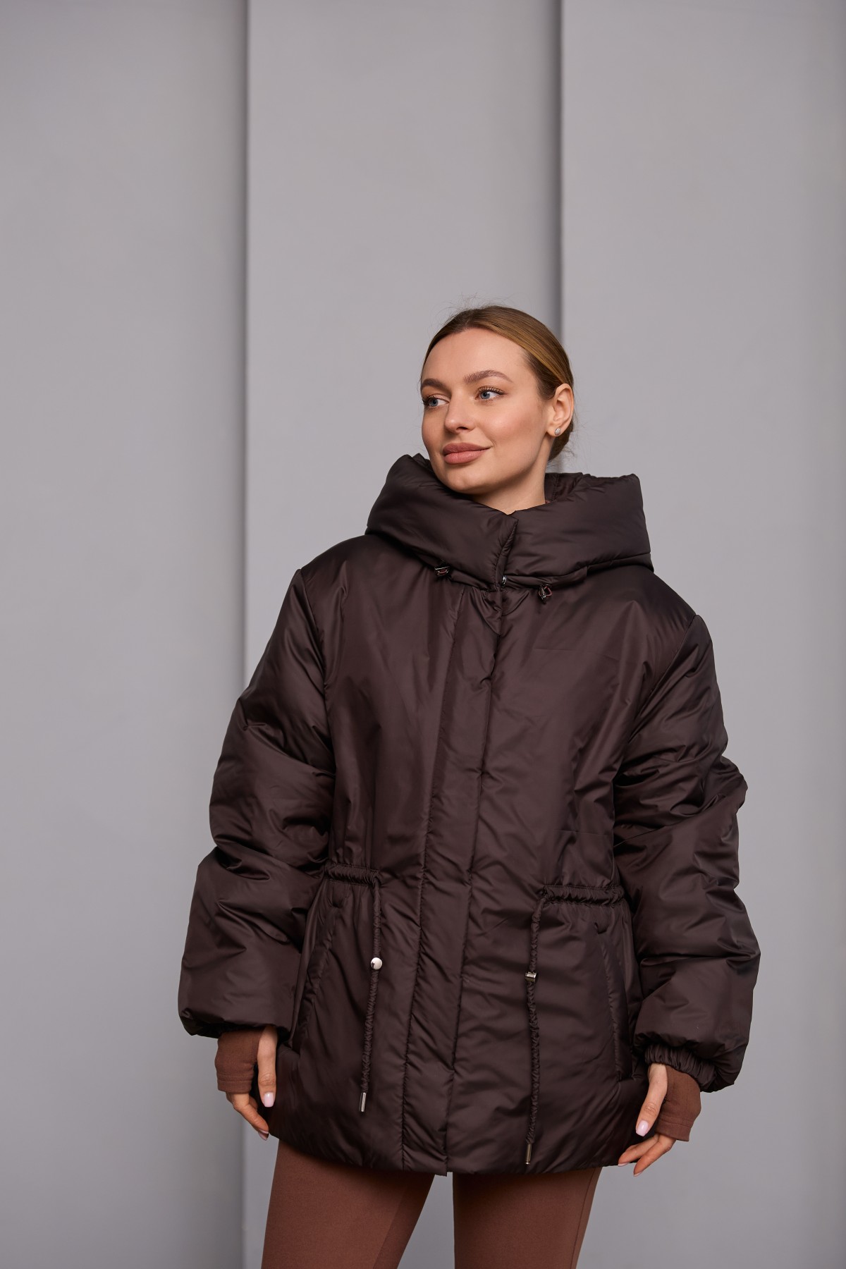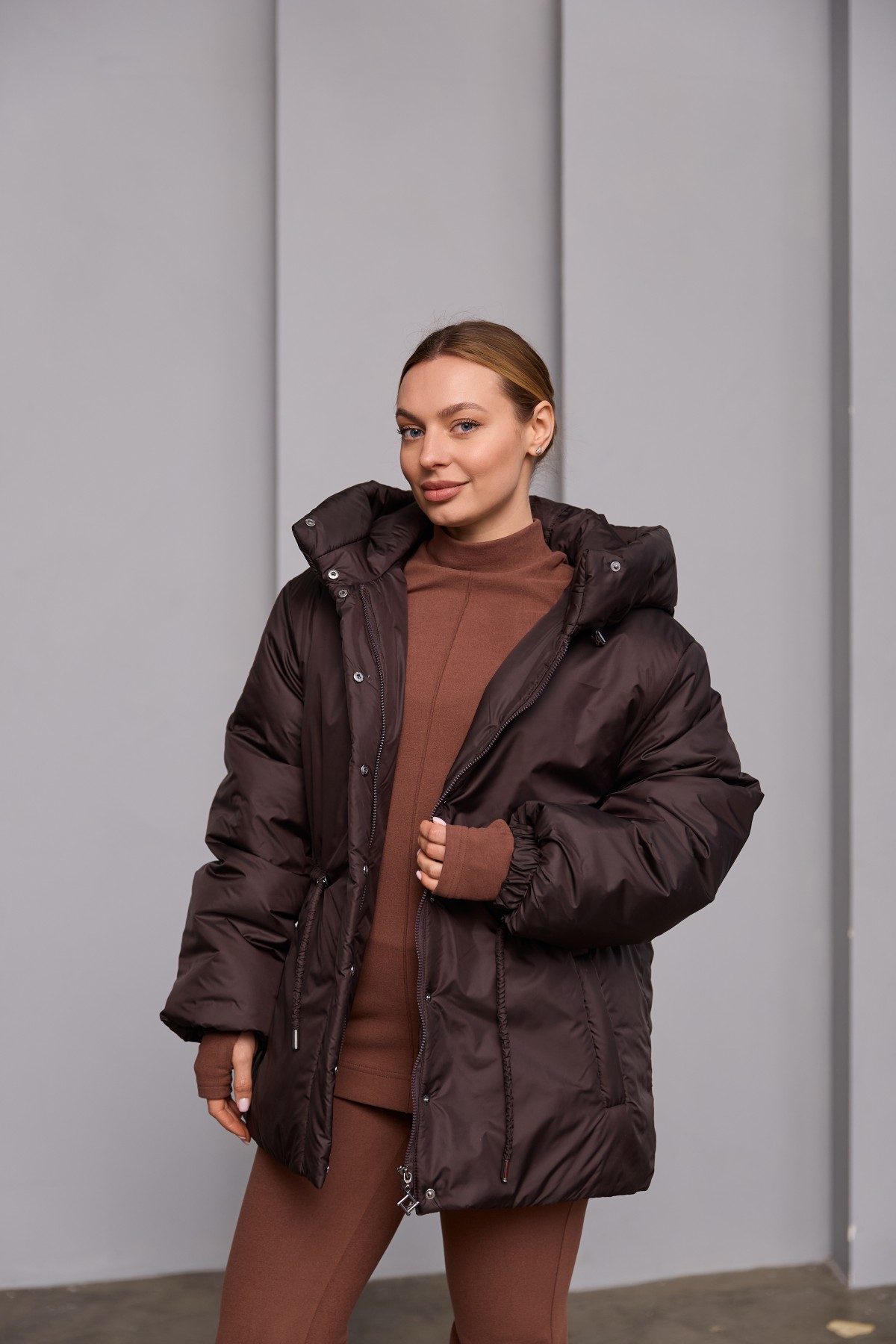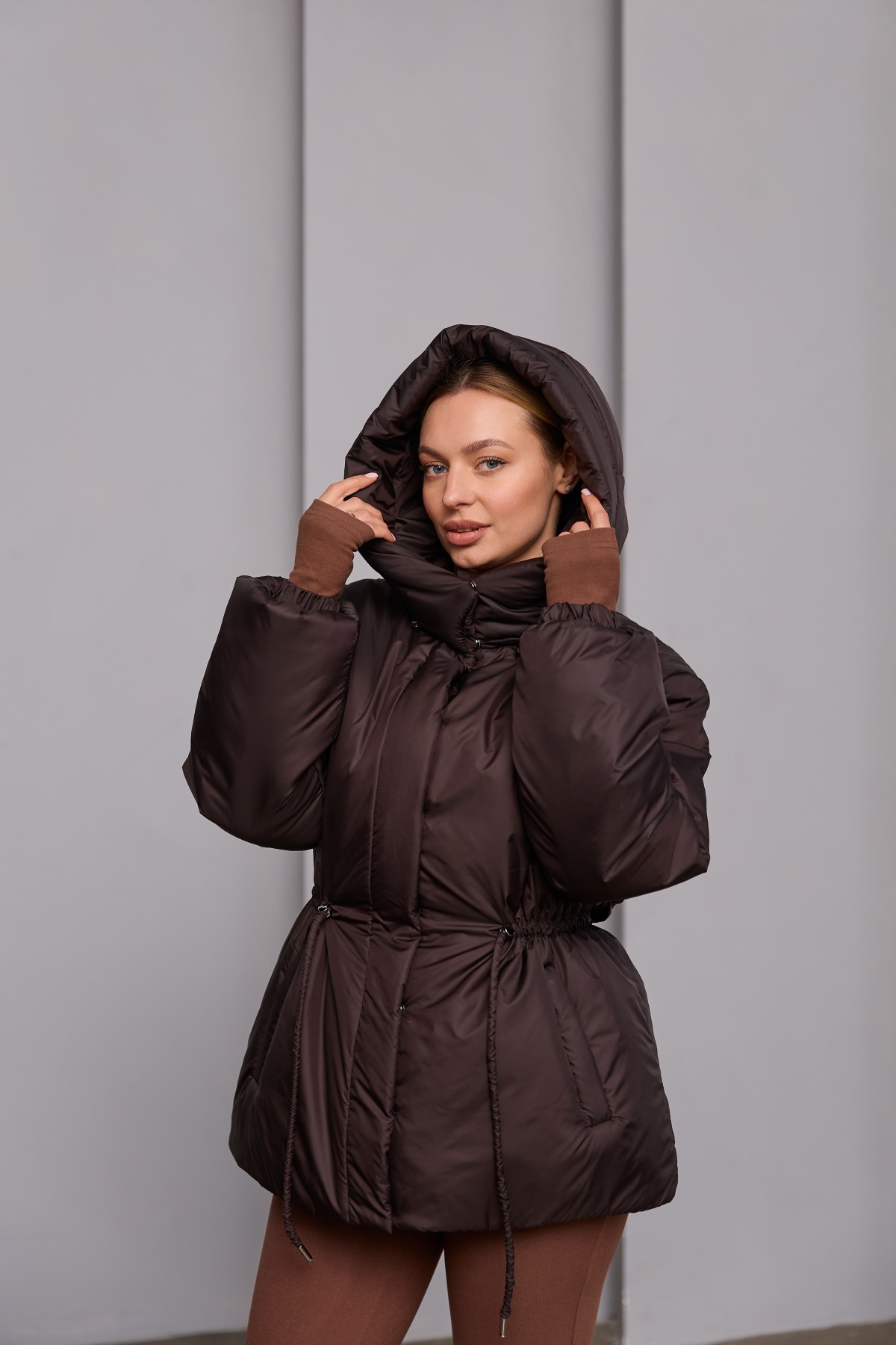 Універсальна куртка прямого силуету у класичному стилі. Довжина до лінії стегна. Застібка по борту полички потайна планка на блискавці та кнопках. Капюшон з відльоту регулюється лаштунками з фіксаторами. Втачний одношовний рукав, низ рукава зібраний на резинку. Кишеня лист на блискавці.Лінія талії фіксується пояском-кулісою з фіксаторами. Універсальна куртка, яка відмінно підходить під одяг вільного крою у спортивному стилі та під одяг у класичному стилі. Відмінно підходить для прогулянки в парку, подорожі в гори, заняття спортом на свіжому повітрі та для щоденного носіння в умовах міського ритму.