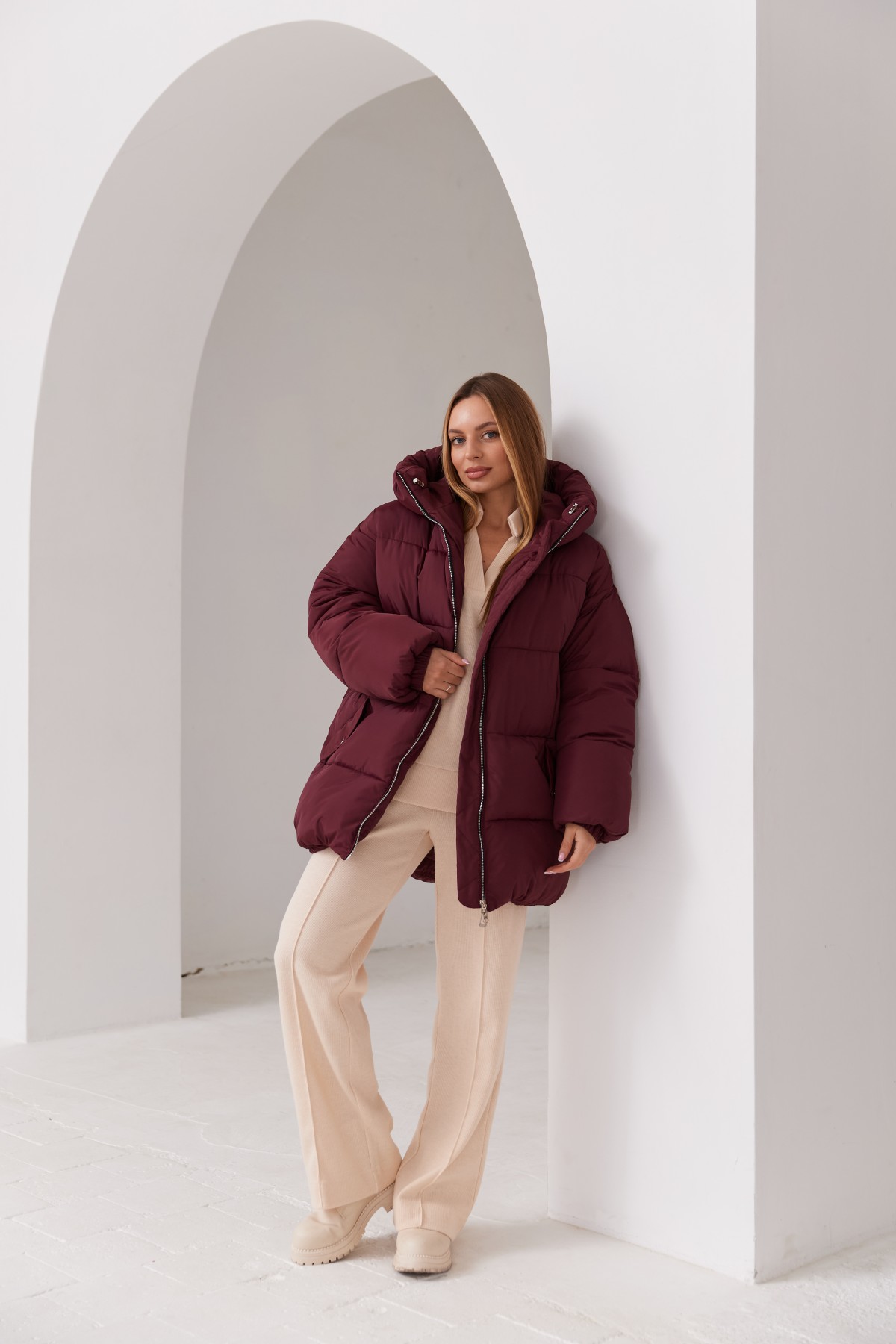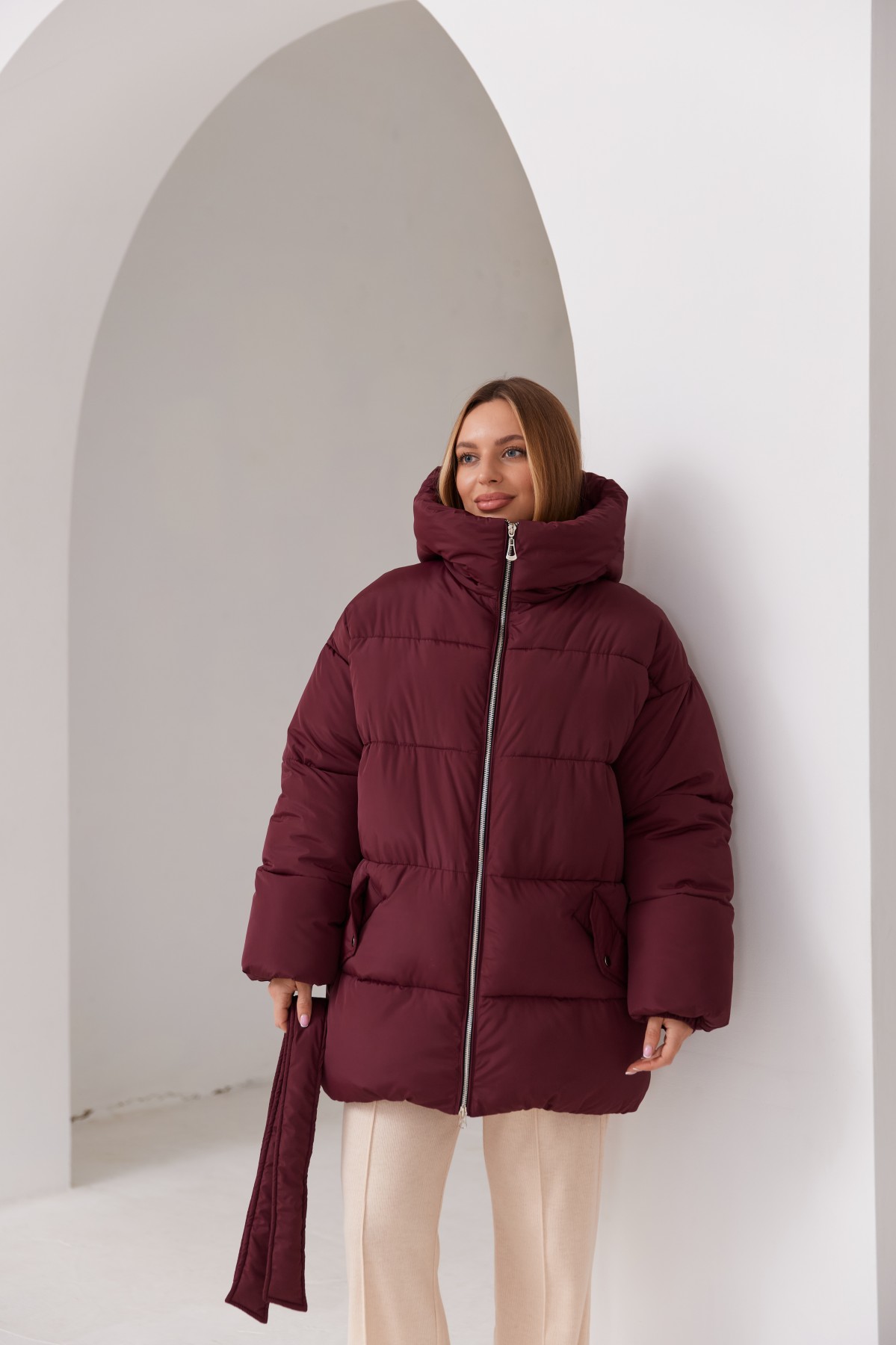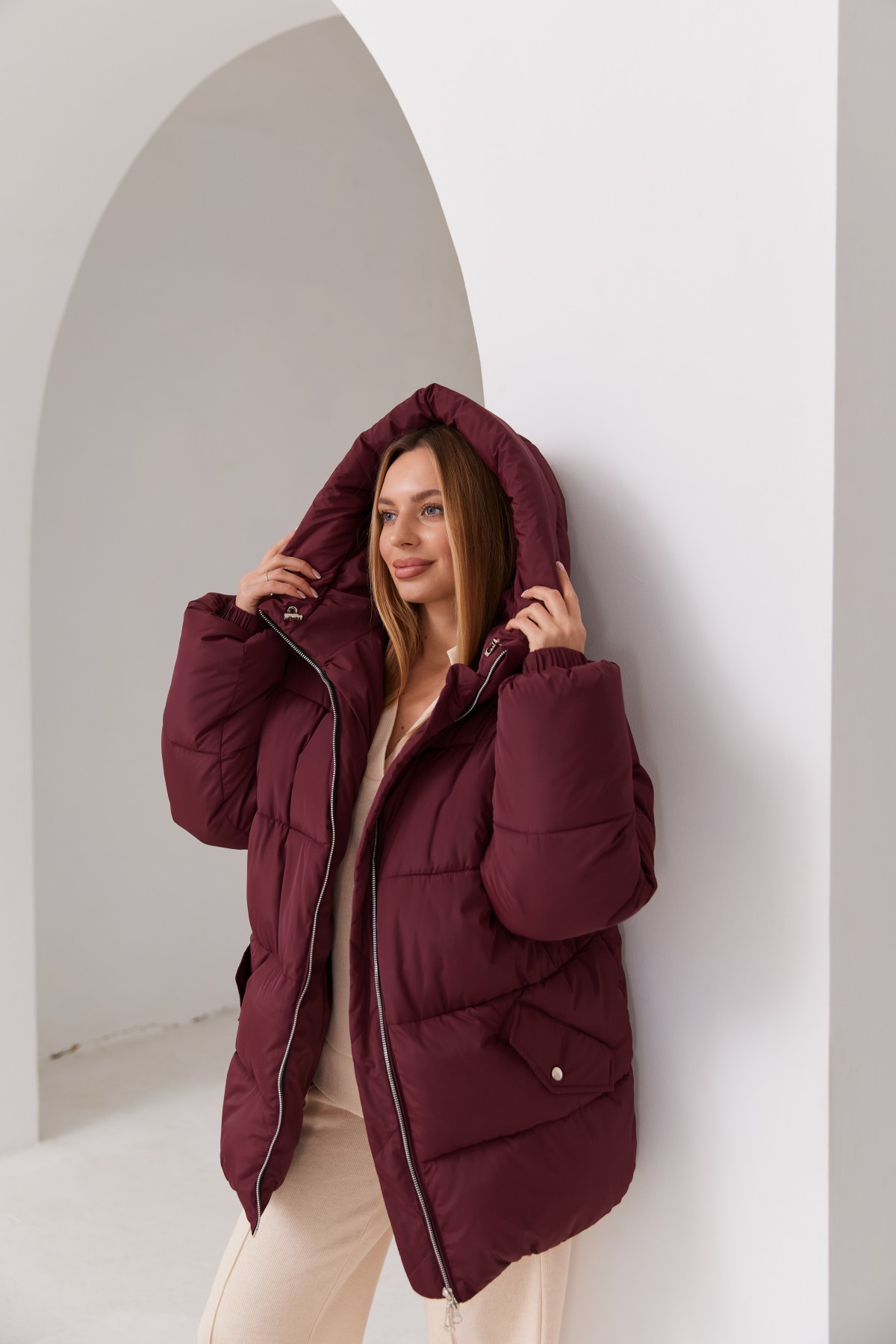 Стильний зимовий пуховик вільного крою "oversaze" з капюшоном на кулісі, зі спущеною лінією втачування рукава, рукав втачний одношовний закінчується манжетом на резинці. Довжина куртки нижче рівня лінії стегон.Застібка по борту полички на блискавці, для комфорту є вітровик під блискавкою. Кишені прорізні листочка с клапаном на кнопці Лінія талії по деталях підкладу фіксується лаштунками та фіксаторами, а також є знімний пояс з основної тканини. Універсальна зимова куртка, яка відмінно підходить під одяг вільного крою у спортивному стилі та під одяг у класичному стилі. Відмінно підходить для прогулянки в парку на свіжому повітрі, та для щоденного носіння в умовах міського ритму.