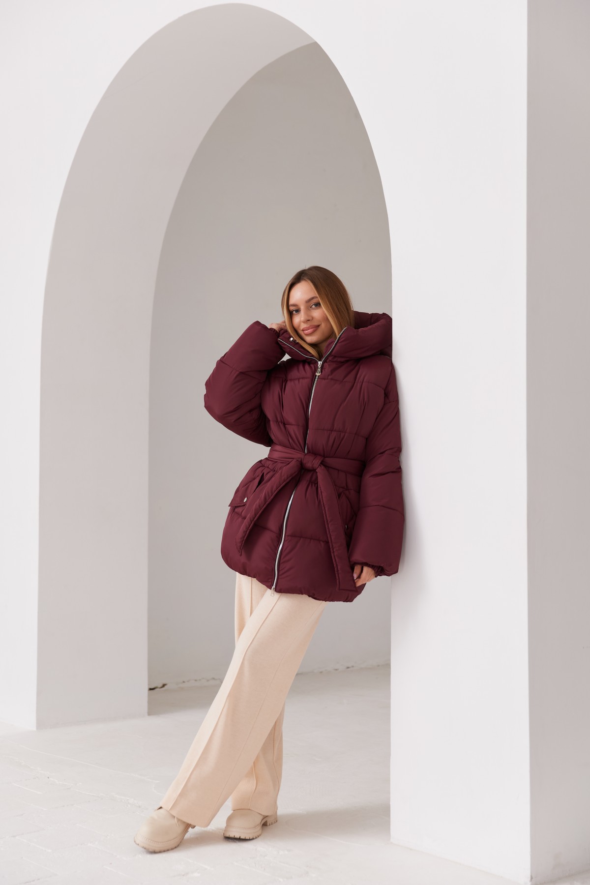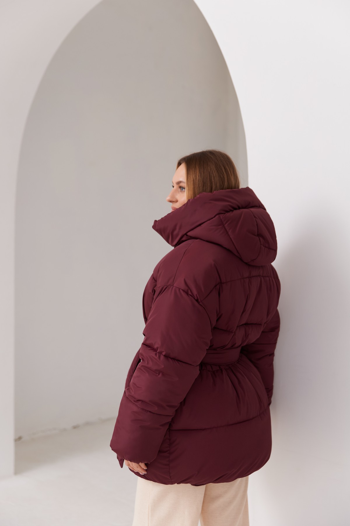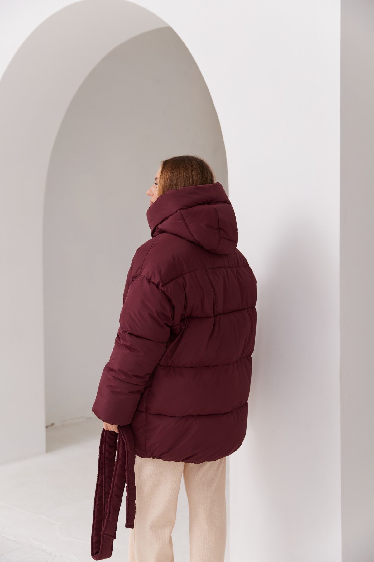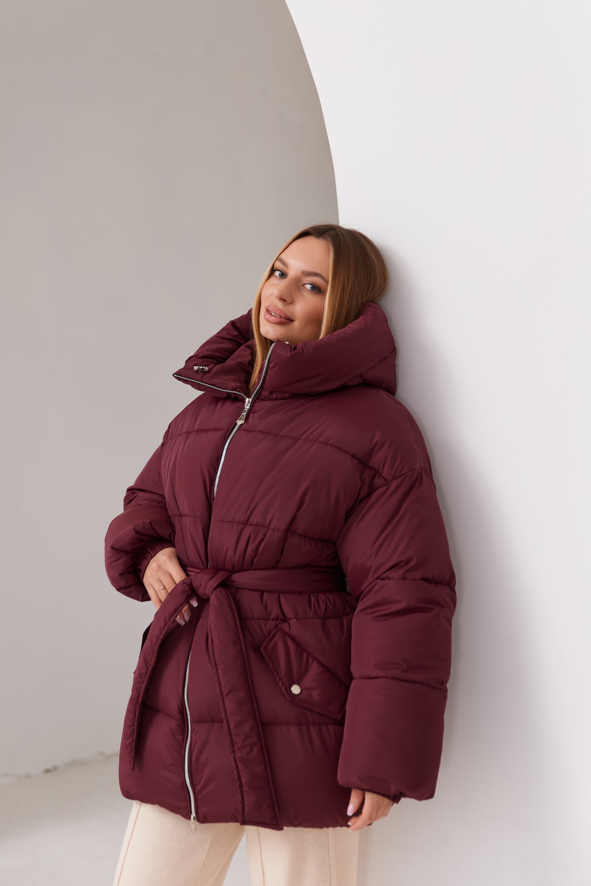 Стильний зимовий пуховик вільного крою "oversaze" з капюшоном на кулісі, зі спущеною лінією втачування рукава, рукав втачний одношовний закінчується манжетом на резинці. Довжина куртки нижче рівня лінії стегон.Застібка по борту полички на блискавці, для комфорту є вітровик під блискавкою. Кишені прорізні листочка с клапаном на кнопці Лінія талії по деталях підкладу фіксується лаштунками та фіксаторами, а також є знімний пояс з основної тканини. Універсальна зимова куртка, яка відмінно підходить під одяг вільного крою у спортивному стилі та під одяг у класичному стилі. Відмінно підходить для прогулянки в парку на свіжому повітрі, та для щоденного носіння в умовах міського ритму.
