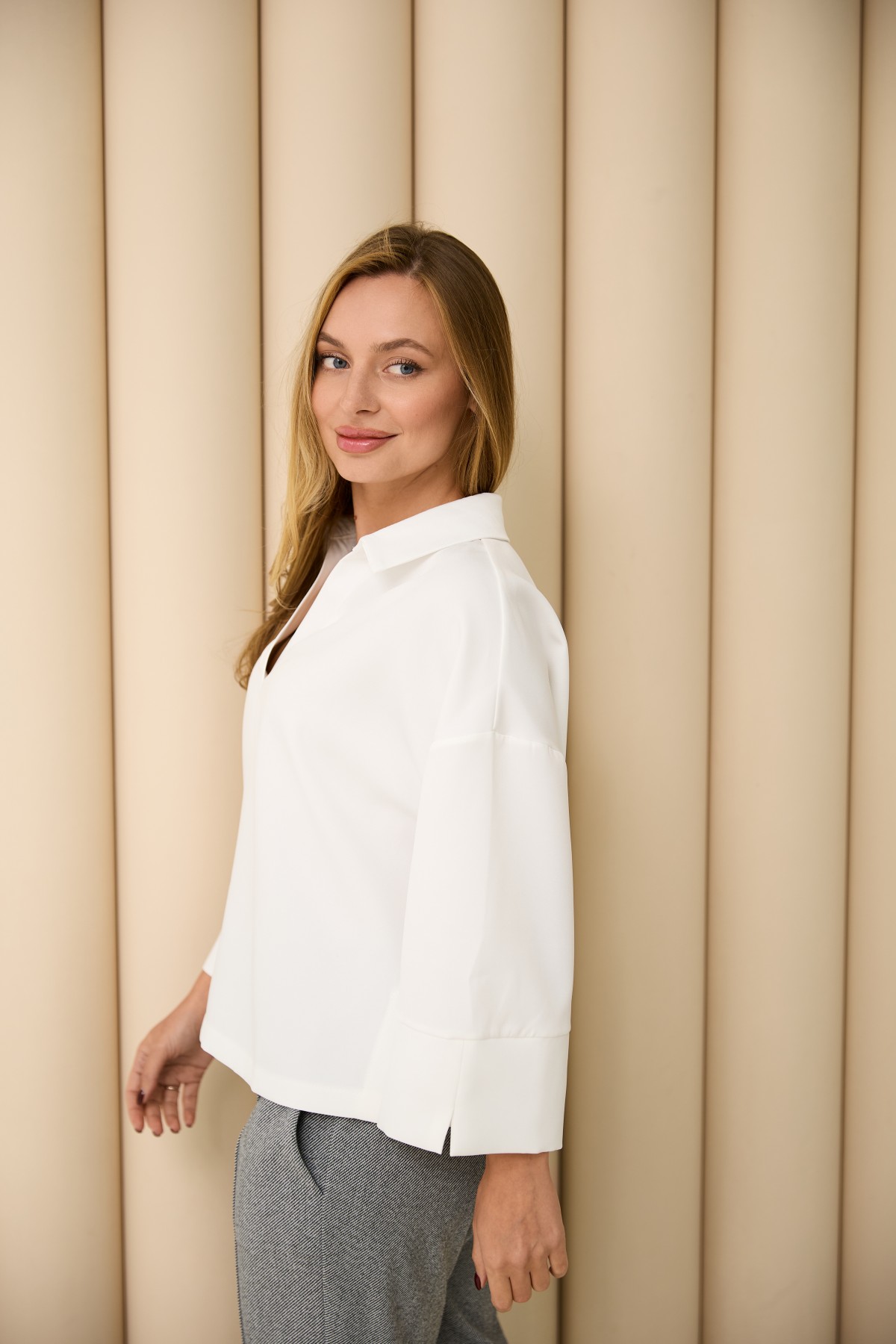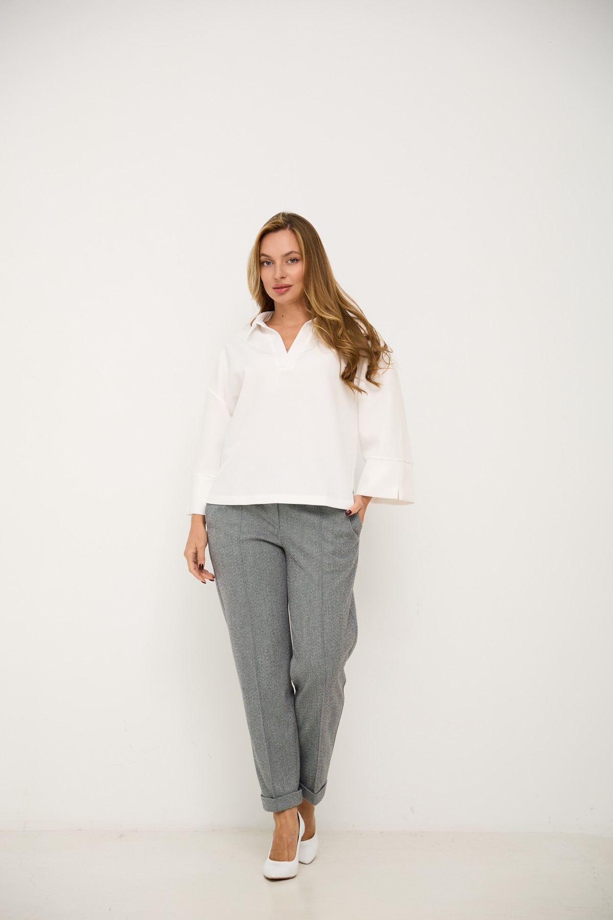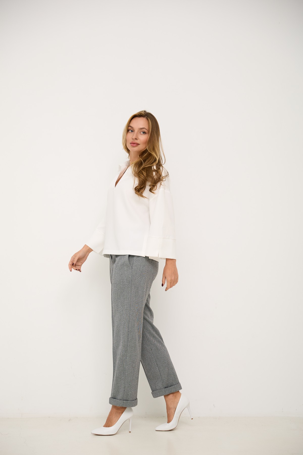 Свободна легка шелкова футболка з коротким рукавом, по боках є розрізи, довжиною до бедра. Класична практична футболка - блуза з атласного шелку дабл, проста, але у той же час таку річ можна одягати під різні варіанти брюк, спідниць, жакетів чи жилеток.
