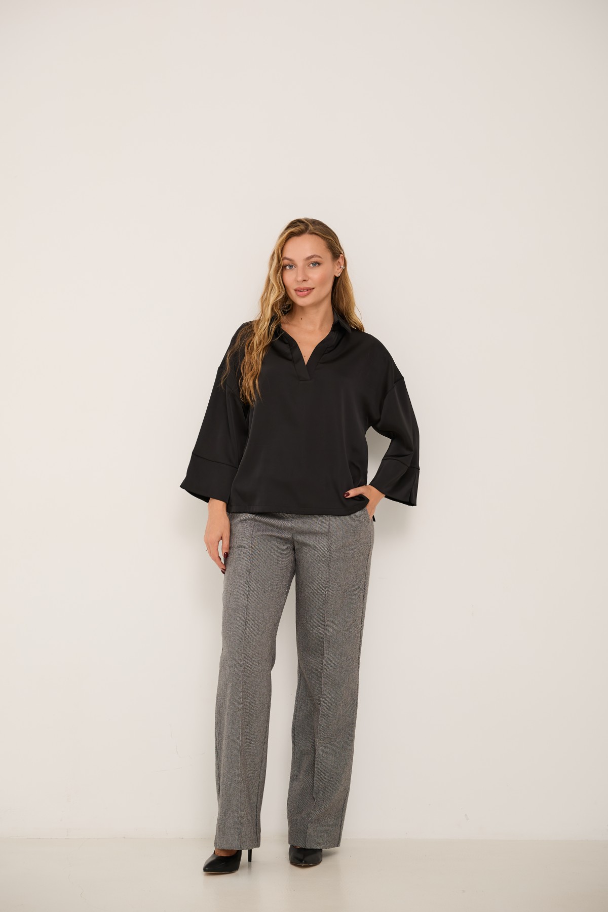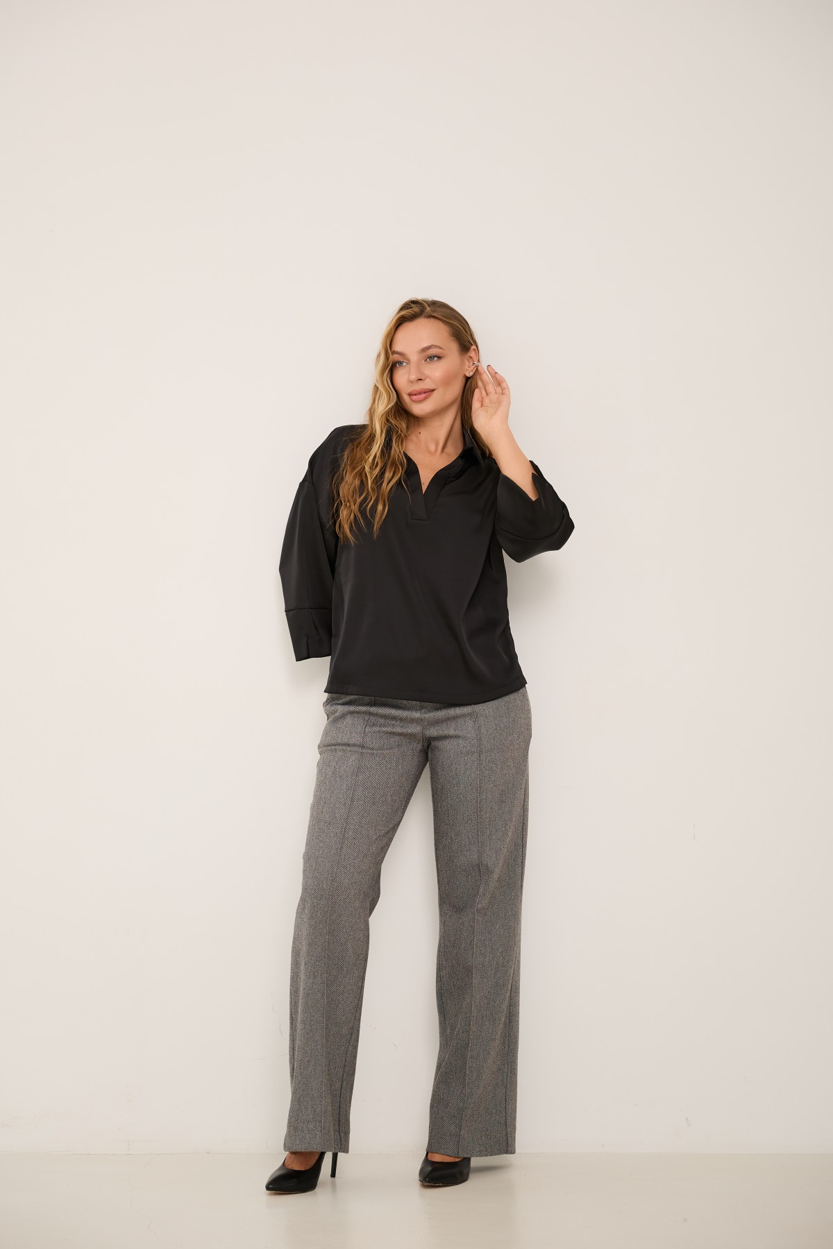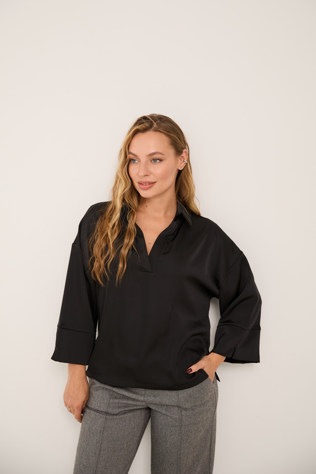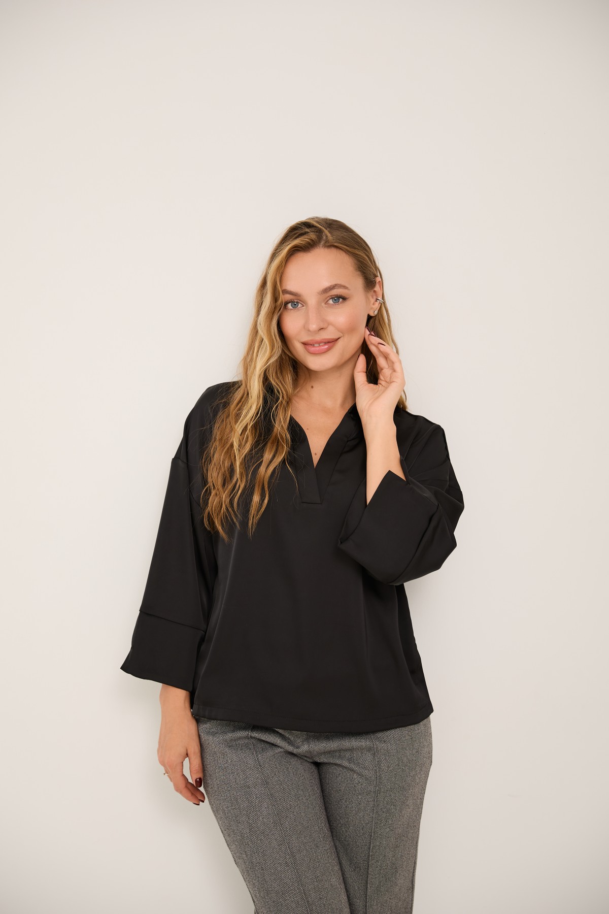 Футболка прямого силуэта, длиной до линии бедер. Отложной воротник на стойке, горловина с У-образным вырезом, в стиле "поло".Втачной рукав з заниженой линией проймы по низу заканчивается манжетом.Базовая футболка, актуальная не зависимо от смены модных тенденций, с ней можно миксовать образы от классического до спортивного стиля. Добавляя аксессуары делать образ в романтическом или нарядном стиле. Необходимая вещь в гардеробе любой девушки.