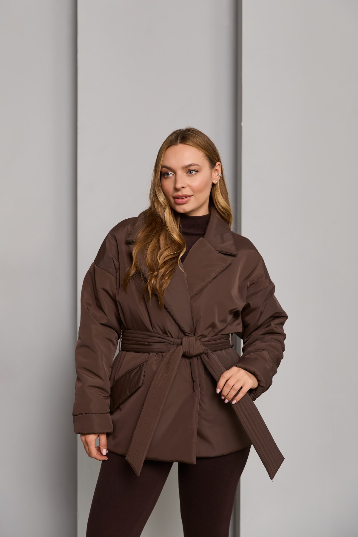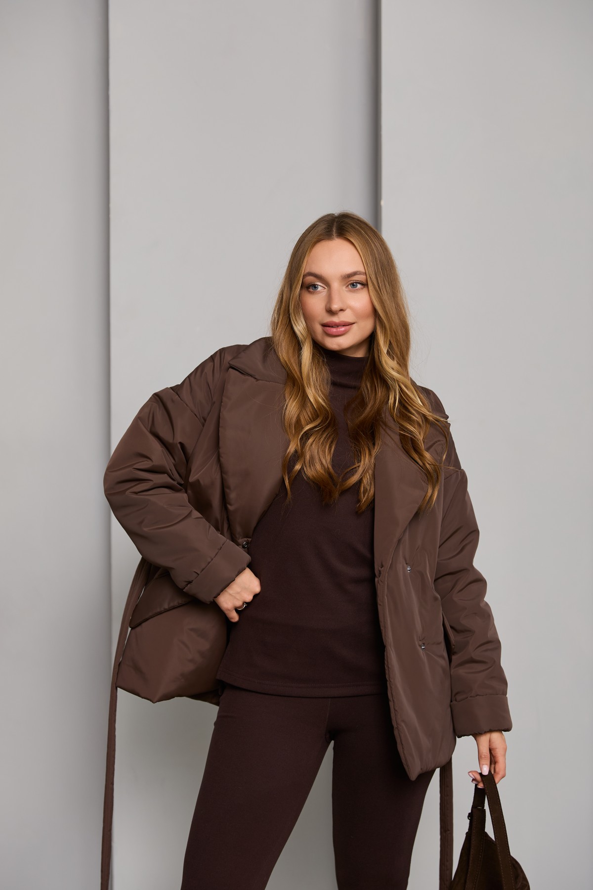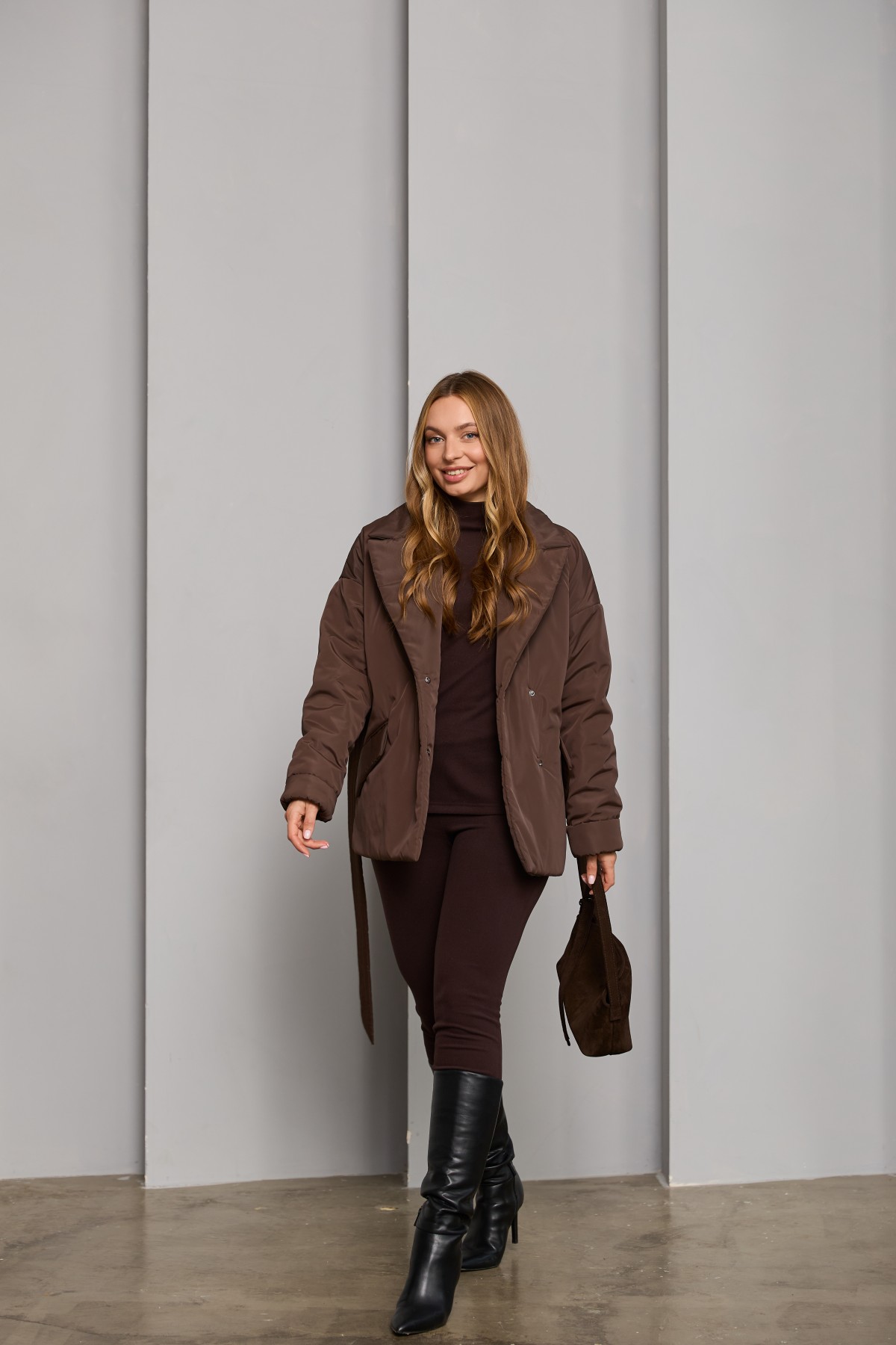 Стильна утеплена куртка вільного крою "oversaze" зі спущеною лінією рукава виготовлена з якісної плащової тканини, довжиною до лінії стегон.Довжина пальта вище коліна. Двобортна застібка на магнітні пришивні кнопки.Англійський комір з лацканами та відкладним коміром. У цій моделі спущене плече, рукави одношовні. Низ рукавів можна відвертати регулюючи тим самим довжину рукава. По переду виробу розташовані похилі прорізні кишені в рамку з клапаном. Пояс знімний з основної тканини. Дана куртка підійде для прогулянок, роботи, відвідування різноманітних заходів. Універсальна річ для стильних міських образів модного сезону.