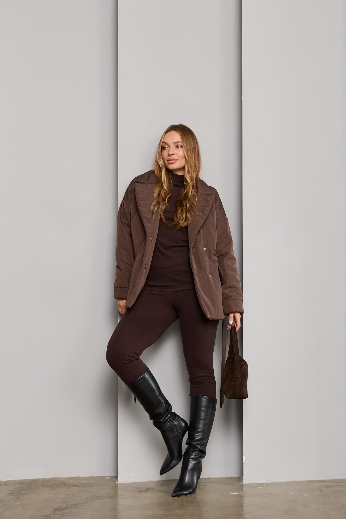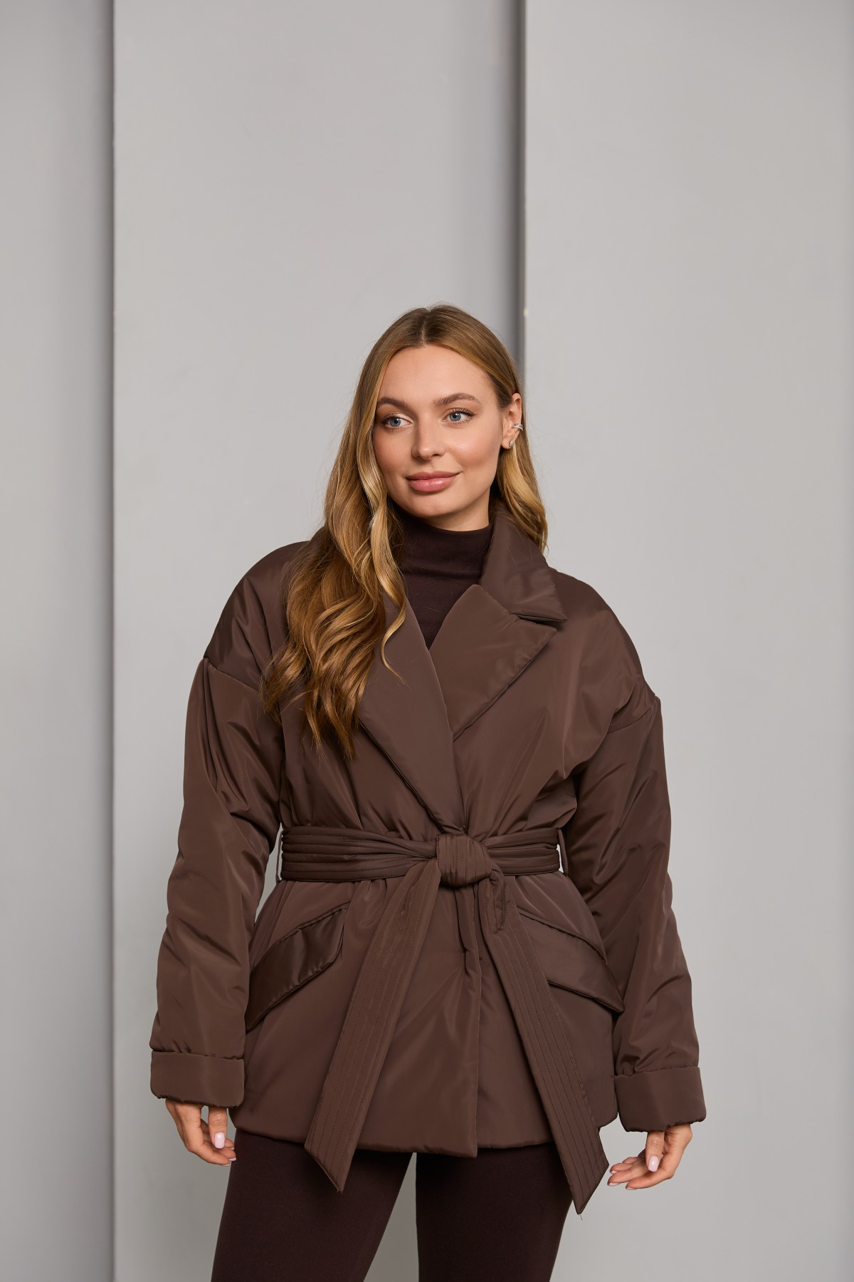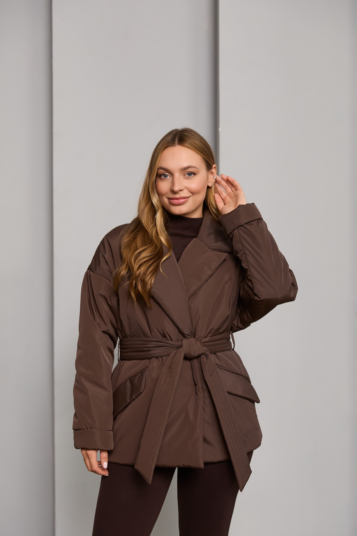 Стильна утеплена куртка вільного крою "oversaze" зі спущеною лінією рукава виготовлена з якісної плащової тканини, довжиною до лінії стегон.Довжина пальта вище коліна. Двобортна застібка на магнітні пришивні кнопки.Англійський комір з лацканами та відкладним коміром. У цій моделі спущене плече, рукави одношовні. Низ рукавів можна відвертати регулюючи тим самим довжину рукава. По переду виробу розташовані похилі прорізні кишені в рамку з клапаном. Пояс знімний з основної тканини. Дана куртка підійде для прогулянок, роботи, відвідування різноманітних заходів. Універсальна річ для стильних міських образів модного сезону.