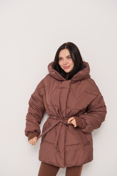 Стильний зимовий пуховик вільного крою "oversaze" з капюшоном на кулісі, зі спущеною лінією втачування рукава, рукав втачний одношовний закінчується манжетом на резинці. Довжина куртки нижче рівня лінії стегон. Застібка на блискавці під цельнокроєною планкою на кнопках. Кишені прорізні з листочкою декорованою кантами на молнії Лінія талії фіксується кулісою з поясом з основної тканини. Універсальна зимова куртка, яка відмінно підходить під одяг вільного крою у спортивному стилі та під одяг у класичному стилі. Відмінно підходить для прогулянки в парку на свіжому повітрі, та для щоденного носіння в умовах міського ритму.