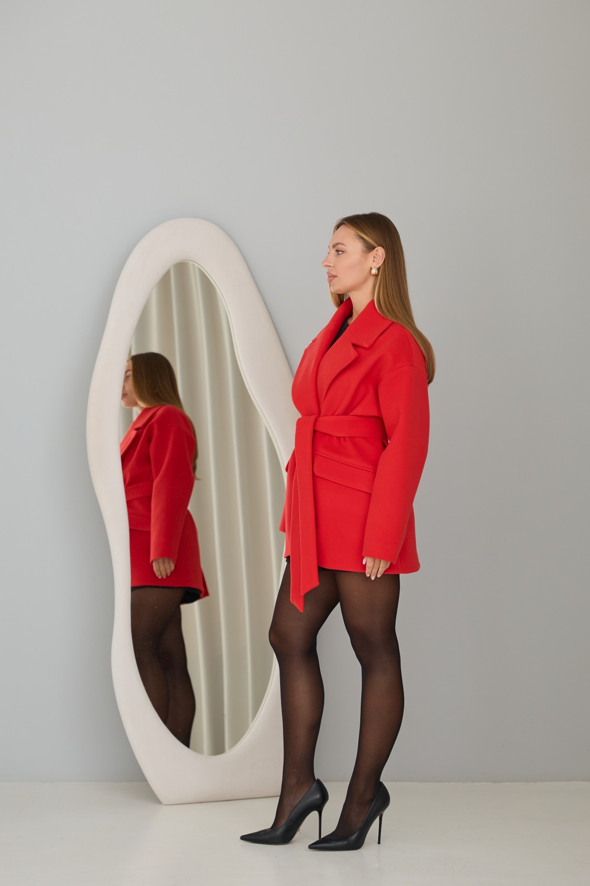 Стильне демісезонне пальто вільного крою "oversaze" зі спущеним плечем. Модель з характером: довжина міні, спущені плечі та широкий комір з лацканами. Довжина пальто нижче середини стегон.Двобортна застібка на кнопках.Англійський комір з лацканами та відкладним коміром.Кишеня прорізна з листочкою та клапаном.Пояс знімний з основної тканини. Трендове пальто - справа не лише у зручності та красі. Одягаючи таке пальто, ви одразу створюєте собі модний образ. Цій речі не потрібні додаткові атрибути та прикраси.Носити її можна з будь-чим і в будь-якому стилі — від класичного до спортивного. носіть водолазки і сорочки, заправляючи їх у прямі штани та джинси з високою талією, або підкреслюйте фігуру ременем. Створіть контрастний лук, надівши оверсайз-пальто з жіночною легкою сукнею. Поєднуйте його як з масивними грубими черевиками, так і з акуратними ботильйонами на шпильці або стійкому підборі.