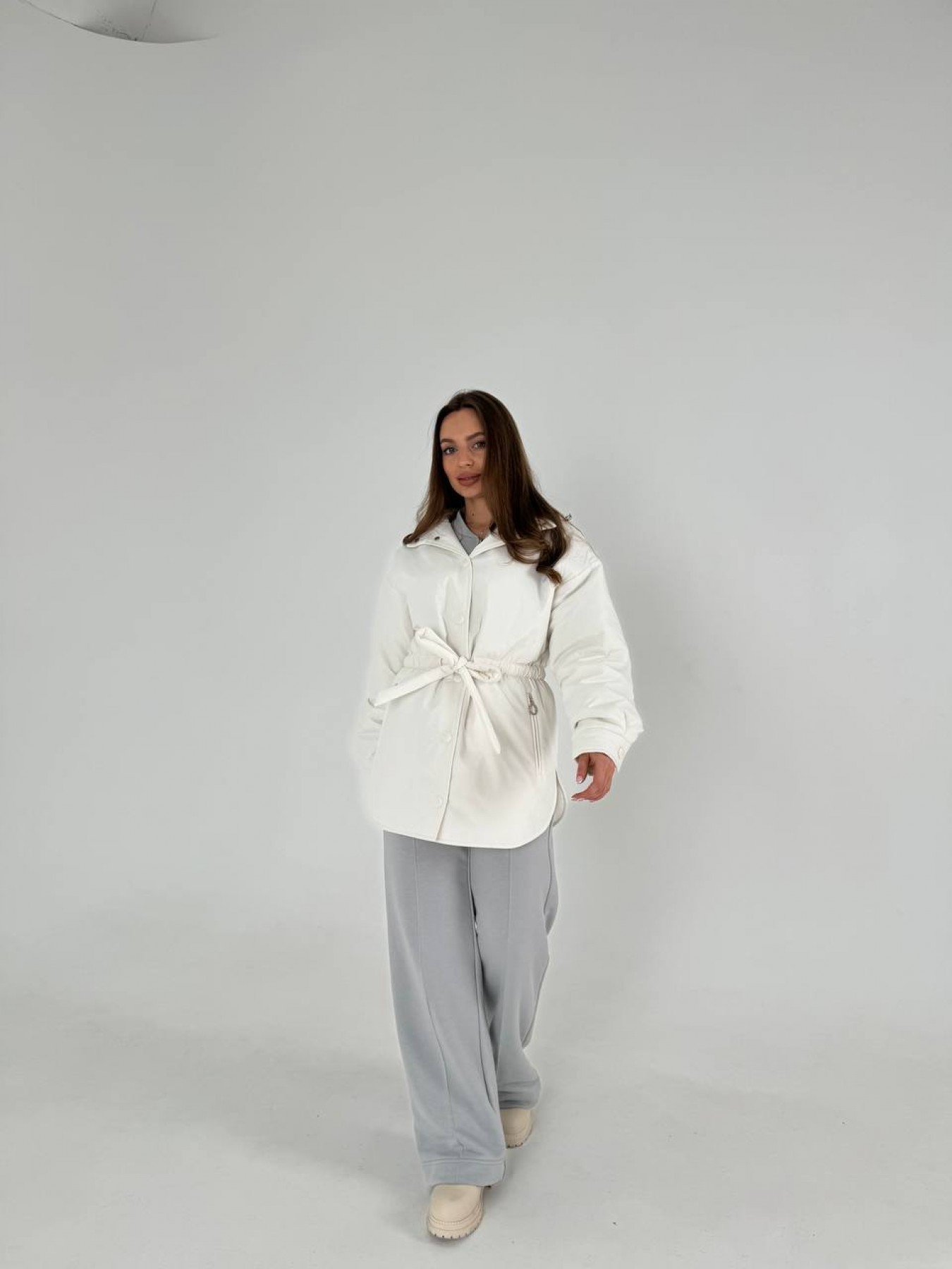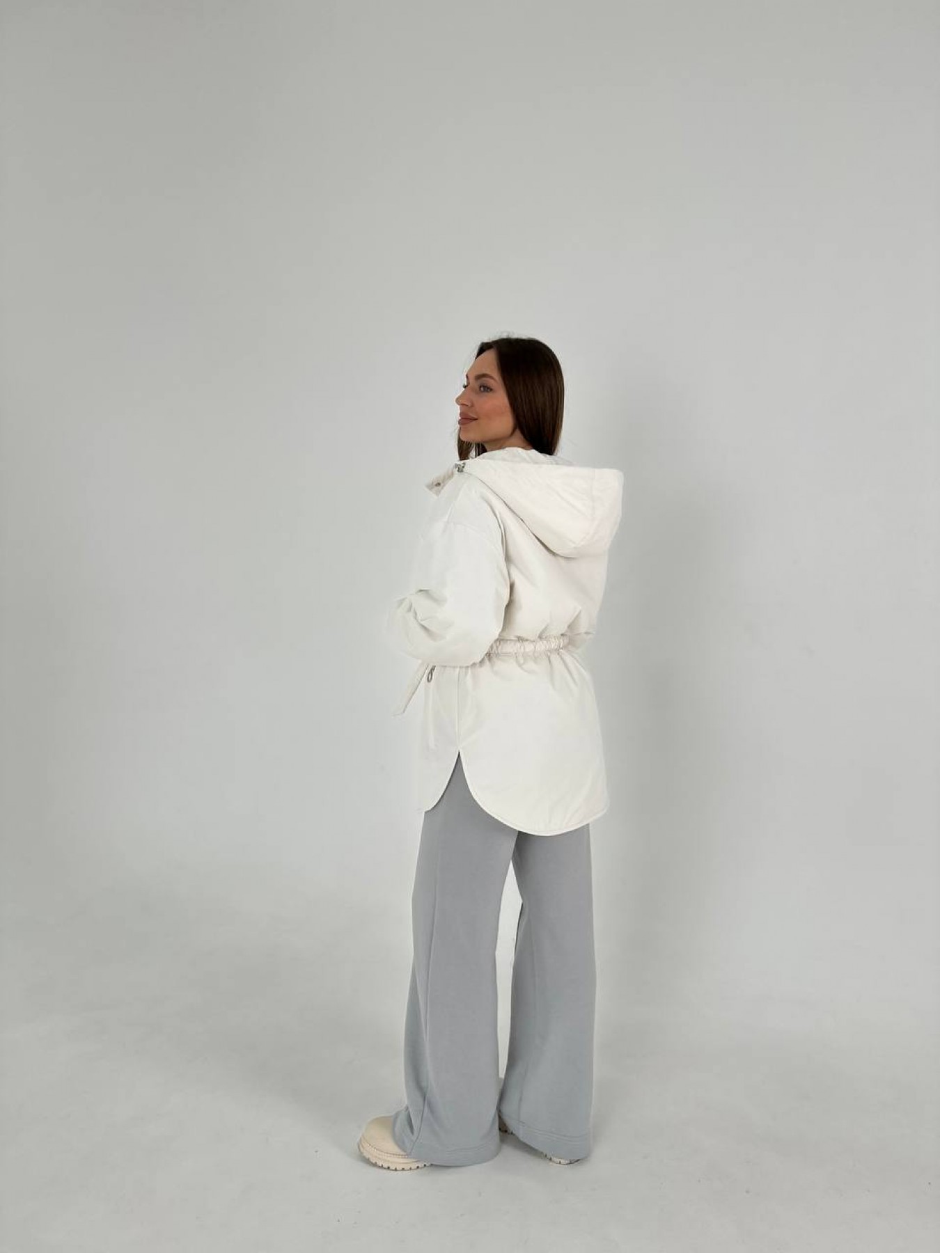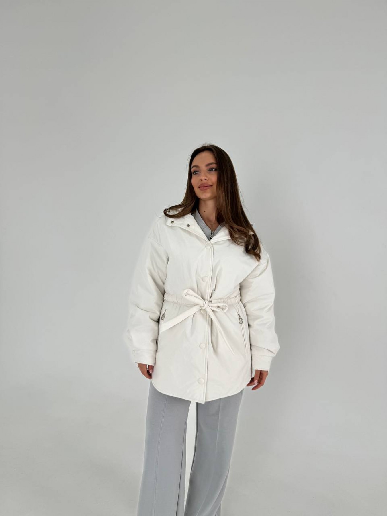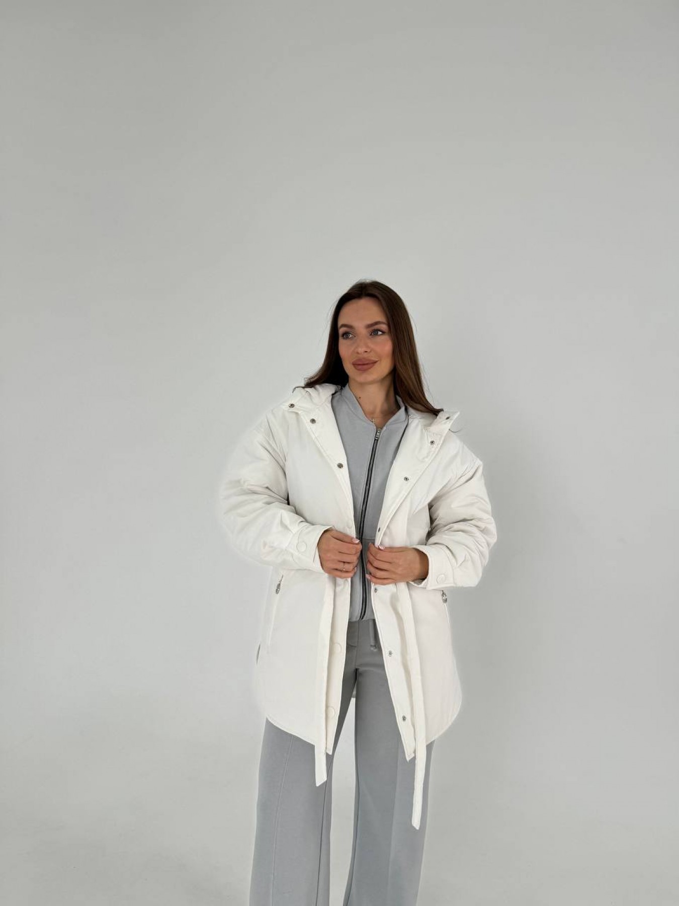 Хіт сезону - куртка крою "oversize" зі спущеним рукавом та капюшоном, прямого силуету у стилі кежуал. Довжина виробу нижче лінії стегна, низ виробу фігурний із бічними розрізами, за типом сорочки. Центральна застібка – декоративні кнопки, обтягнуті основною тканиною. Каптур по лінії відльоту регулюється по висоті на резинку з фіксатором. Рукав спущений – вільний, понизу на манжеті, застібається на декоративну кнопку.