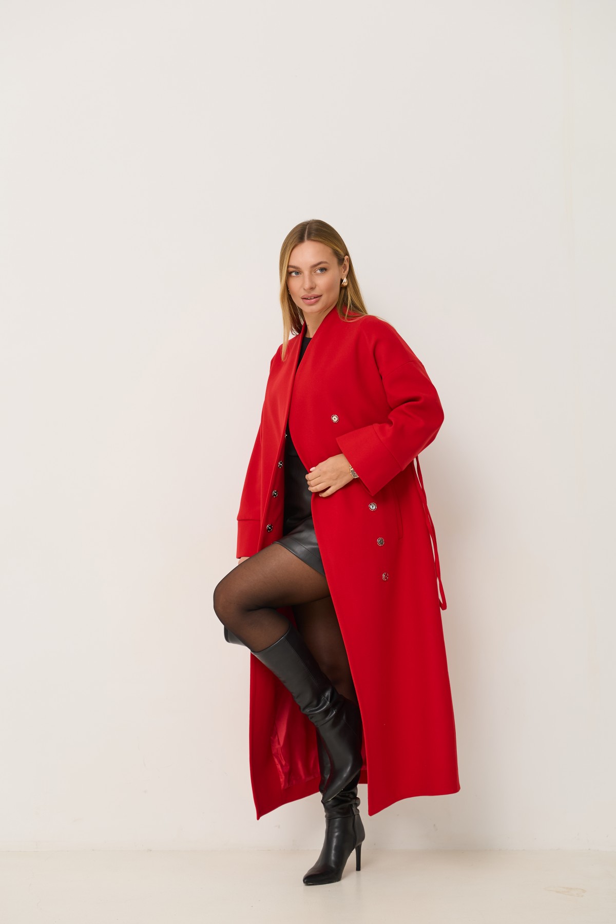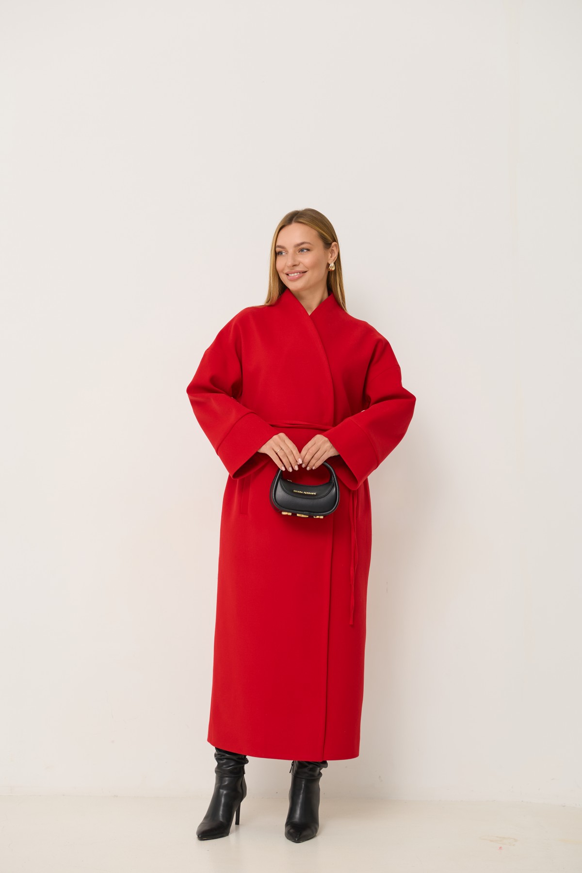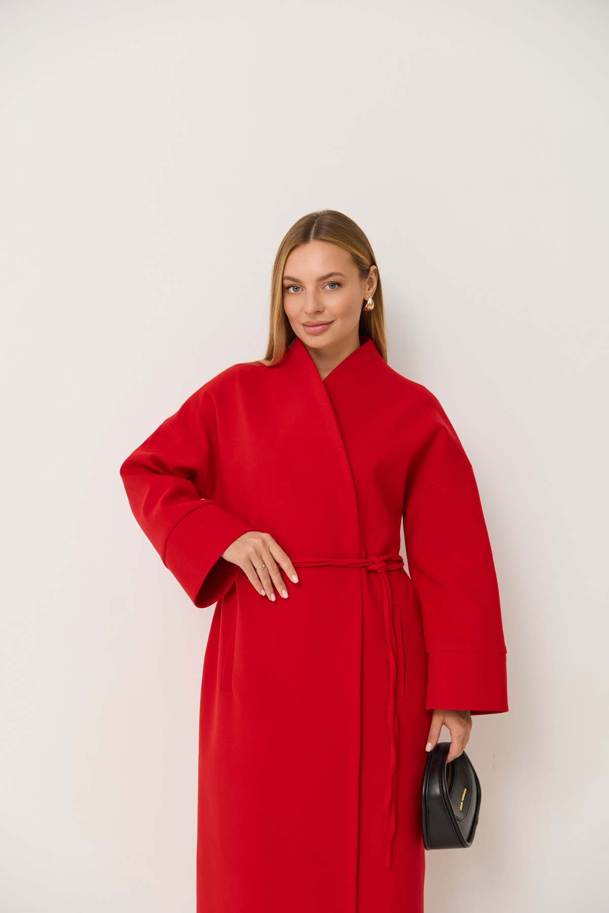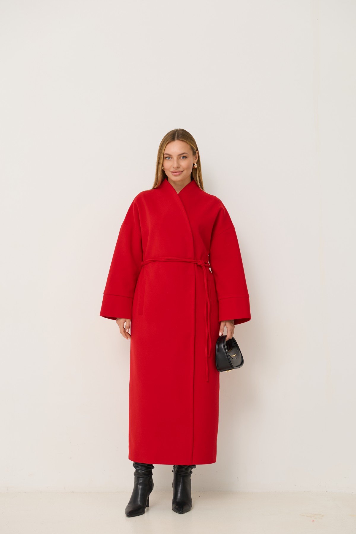Класичне демісезонне довге пальто прямого сілуету, з цільнокроєною стійкою та спущеною лінією плеча з одношовним рукавом. Довжина пальто - МАКСІ - нижче колін. Застібка на пришивні металеві потайні кнопки. Пояс знімний з основної тканини. Максі-довжинаДовге пальто у стилі кімано. Надягаючи таке пальто, ви відразу створюєте собі модний образ.Кишеня прорізна з листочкою та клапаном.