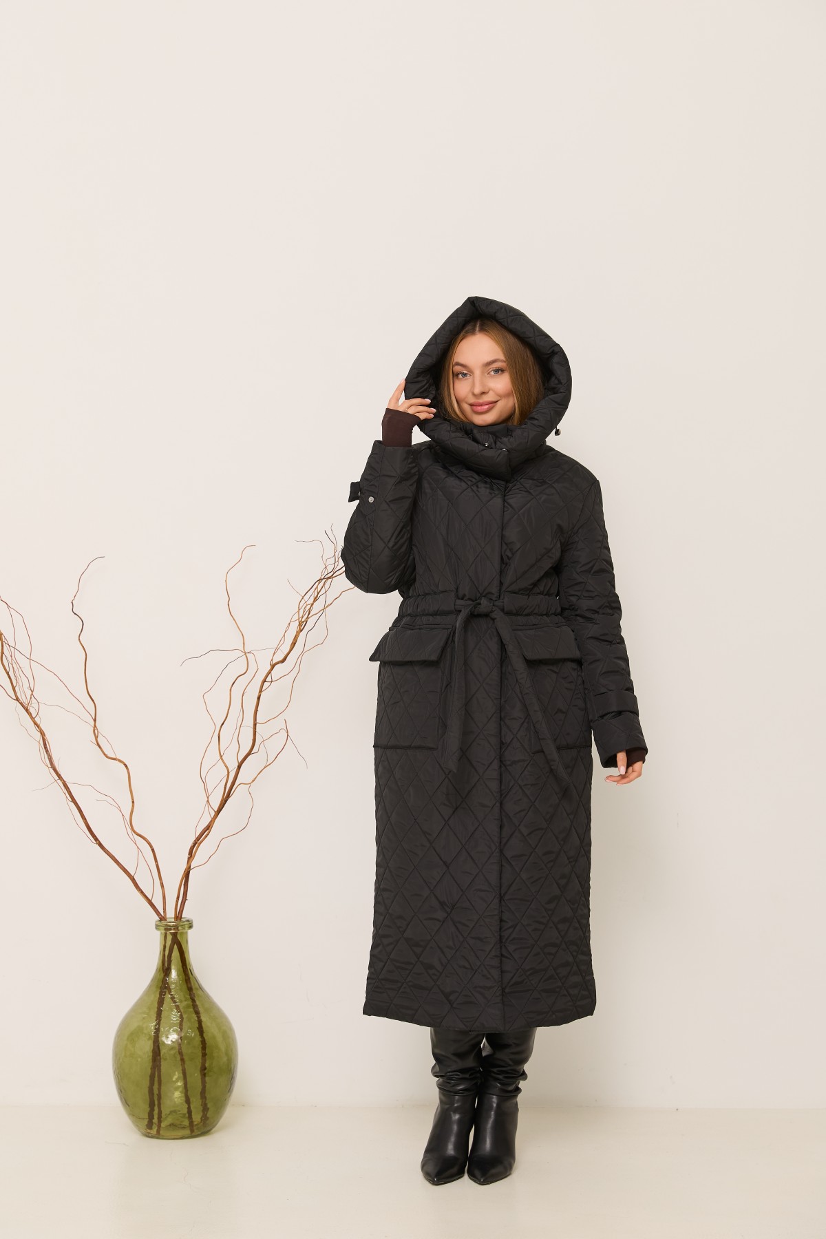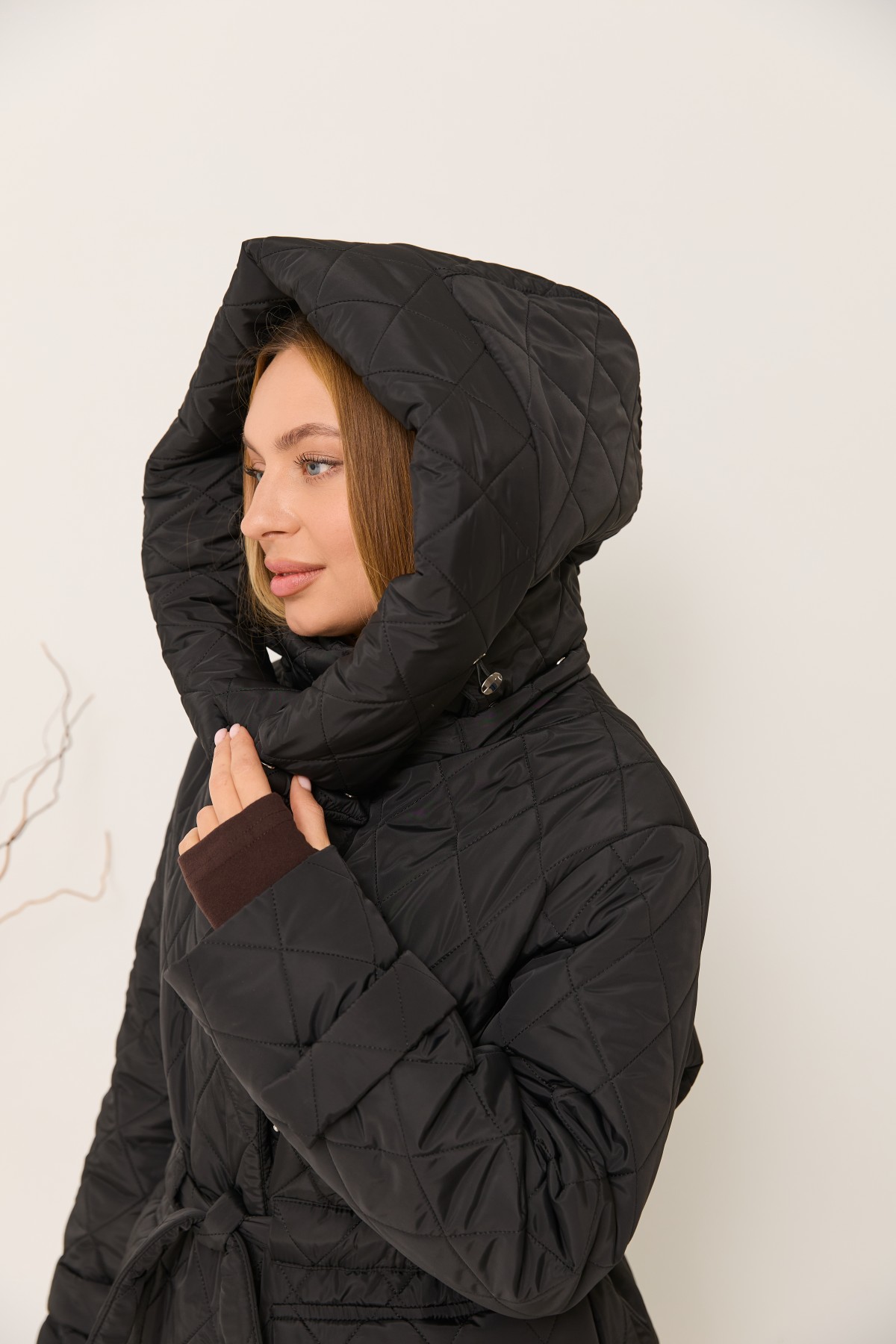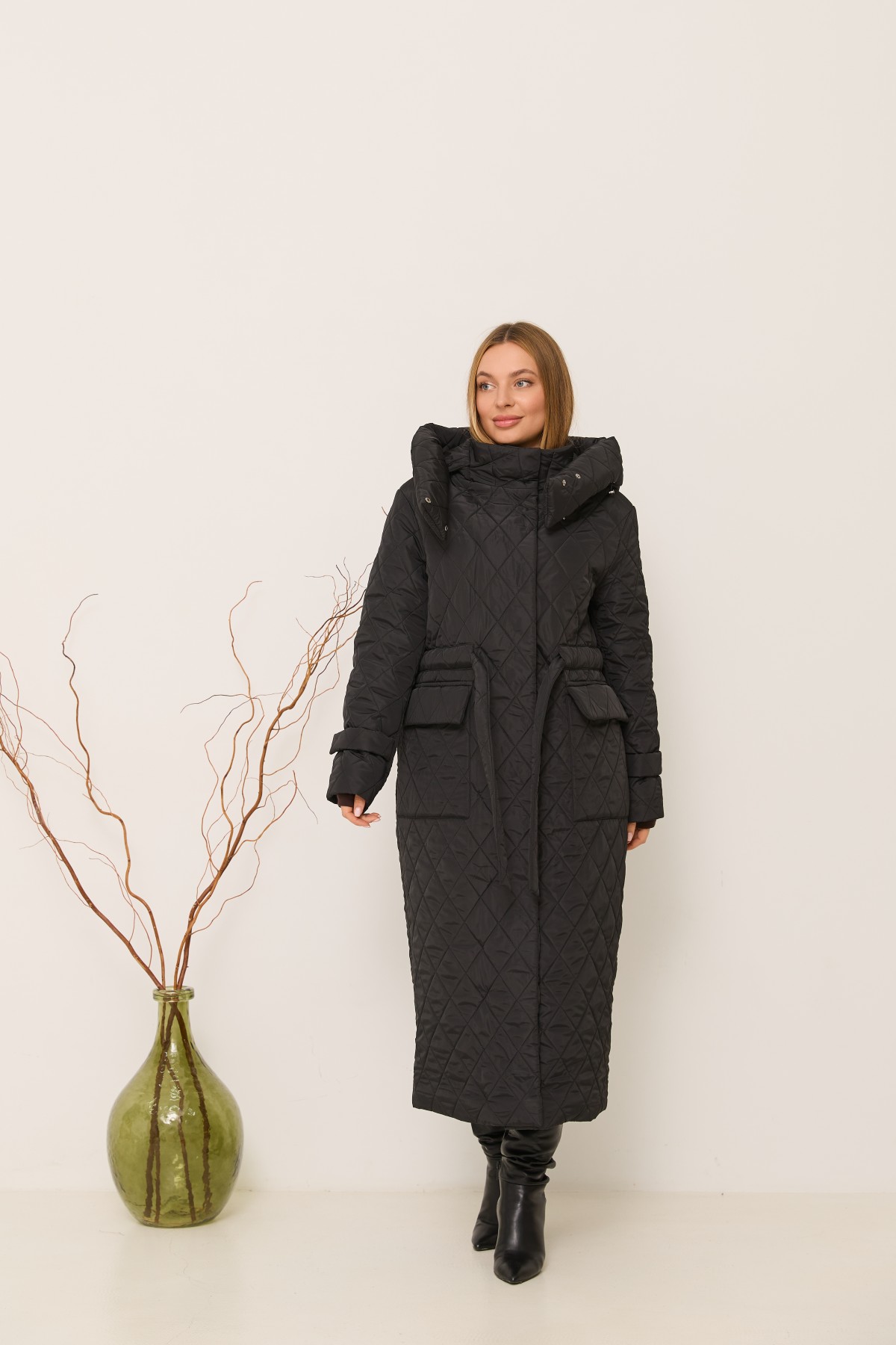 Стильна зимова куртка довжиною нижче колін, з капюшоном що відстібається на кнопках, та є куліса з фіксаторами для зручності регулювання обєму по переду капюшона. Рукав втачний, двошовний, з патами на кнопках по низу рукавів.Довжина куртки - нижче колін.Застібка на блискавці, та кнопках.Кишені накладні з клапанами.Лінія талії фіксується настрочною кулісою з поясом з основної тканини.Зимова куртка відмінно підходить для прогулянки в парку на свіжому повітрі, та для щоденного носіння в умовах міського ритму.