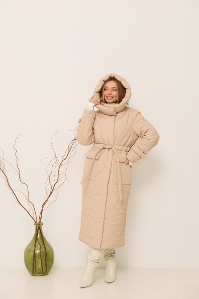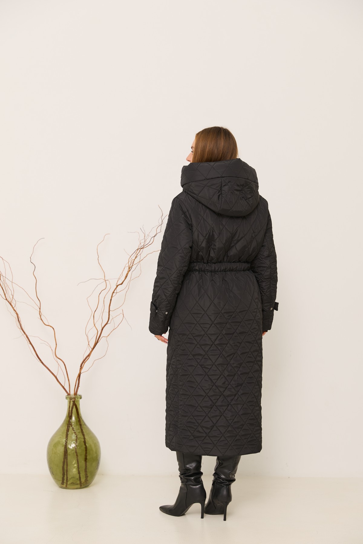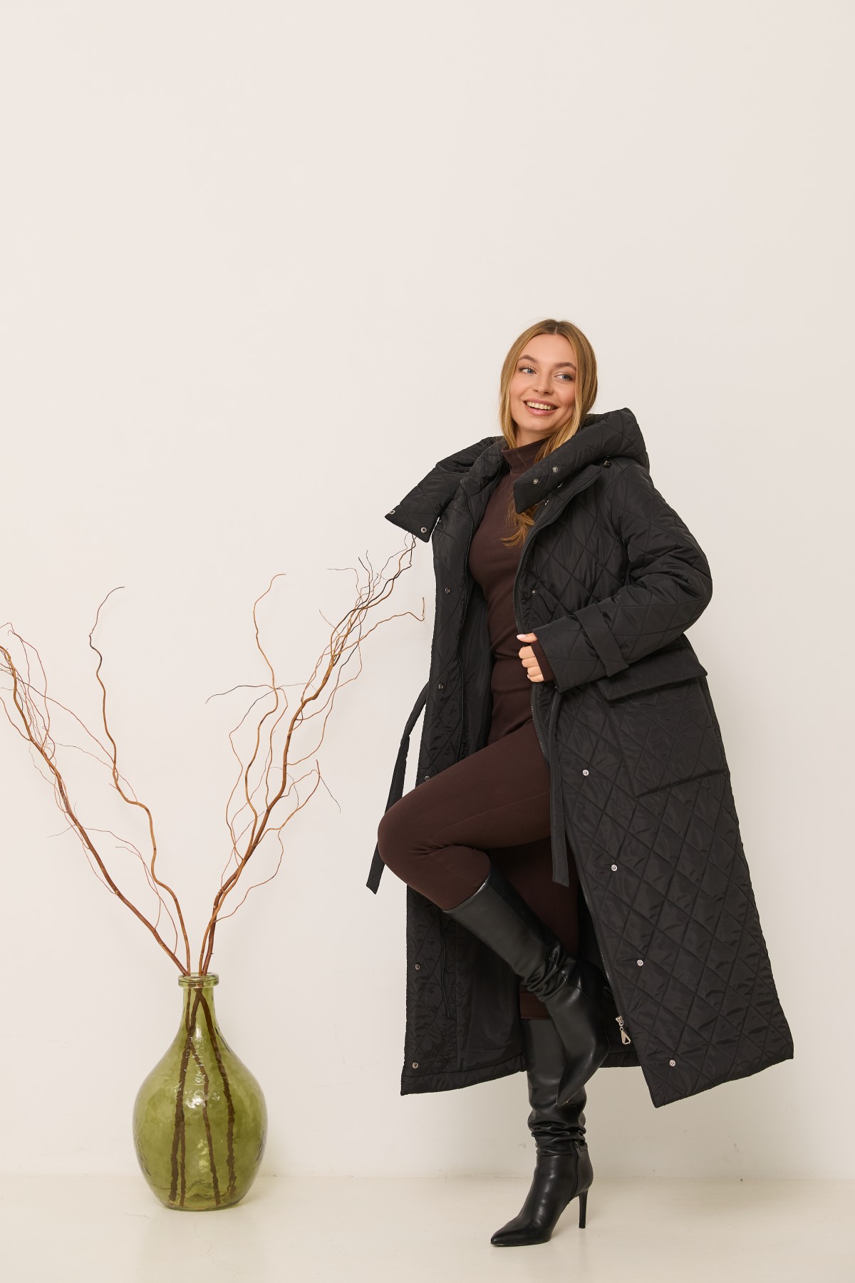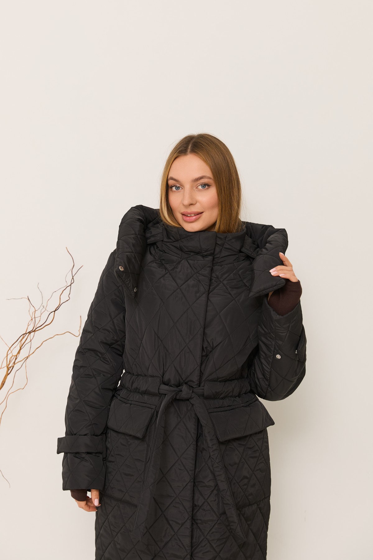 Стильна зимова куртка довжиною нижче колін, з капюшоном що відстібається на кнопках, та є куліса з фіксаторами для зручності регулювання обєму по переду капюшона. Рукав втачний, двошовний, з патами на кнопках по низу рукавів.Довжина куртки - нижче колін.Застібка на блискавці, та кнопках.Кишені накладні з клапанами.Лінія талії фіксується настрочною кулісою з поясом з основної тканини.Зимова куртка відмінно підходить для прогулянки в парку на свіжому повітрі, та для щоденного носіння в умовах міського ритму.