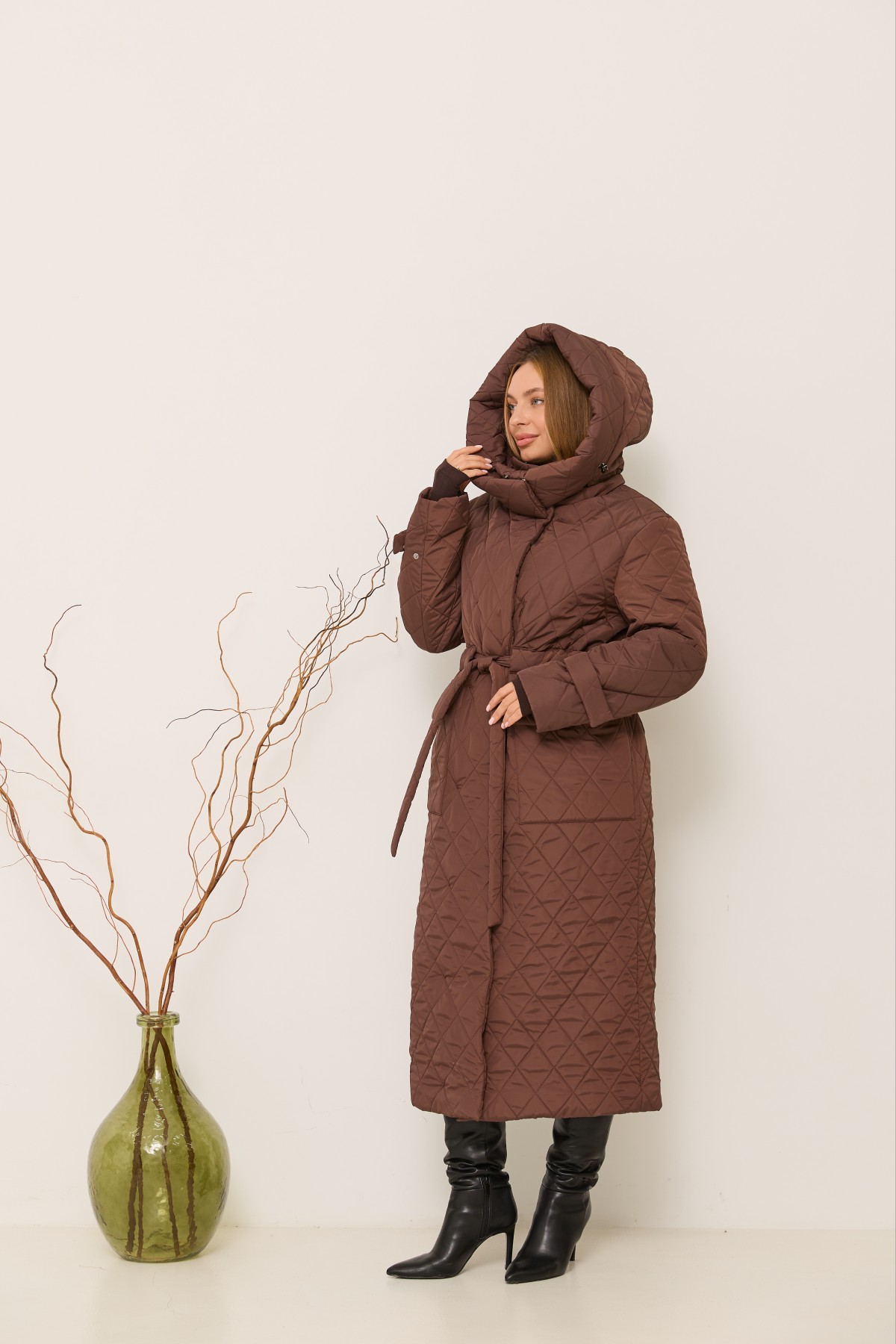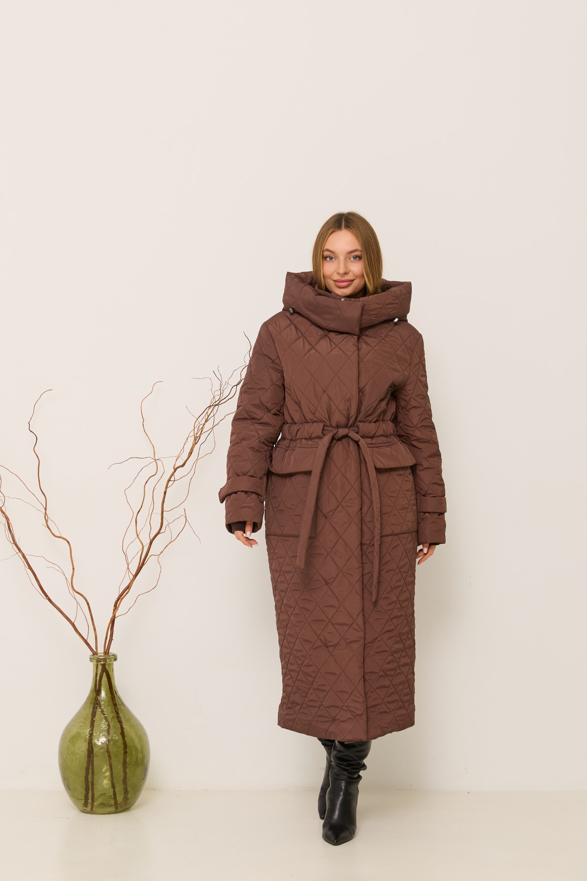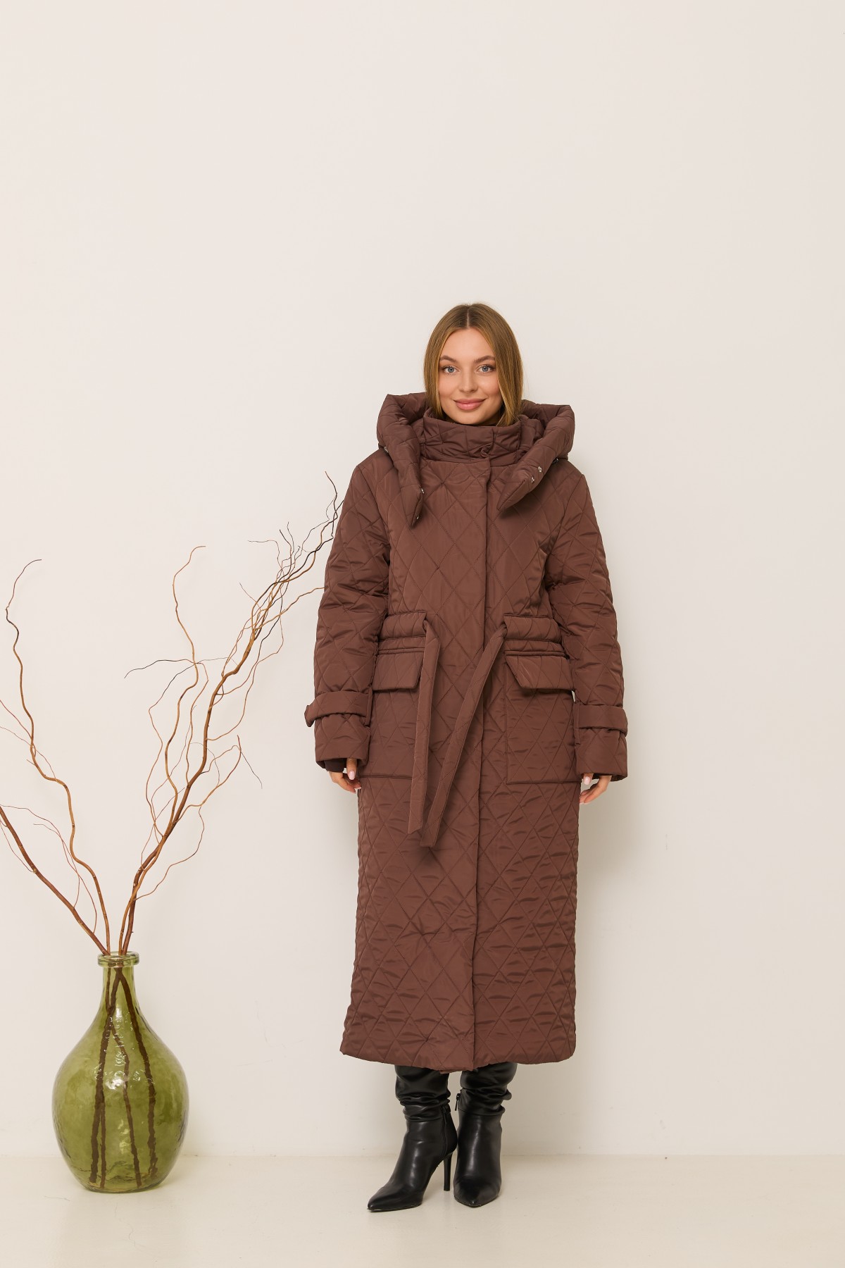 Стильна зимова куртка довжиною нижче колін, з капюшоном що відстібається на кнопках, та є куліса з фіксаторами для зручності регулювання обєму по переду капюшона. Рукав втачний, двошовний, з патами на кнопках по низу рукавів.Довжина куртки - нижче колін.Застібка на блискавці, та кнопках.Кишені накладні з клапанами.Лінія талії фіксується настрочною кулісою з поясом з основної тканини.Зимова куртка відмінно підходить для прогулянки в парку на свіжому повітрі, та для щоденного носіння в умовах міського ритму.