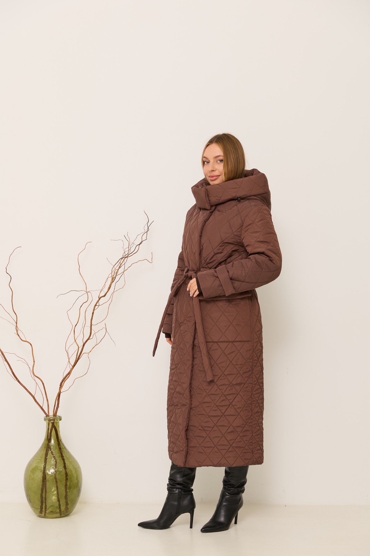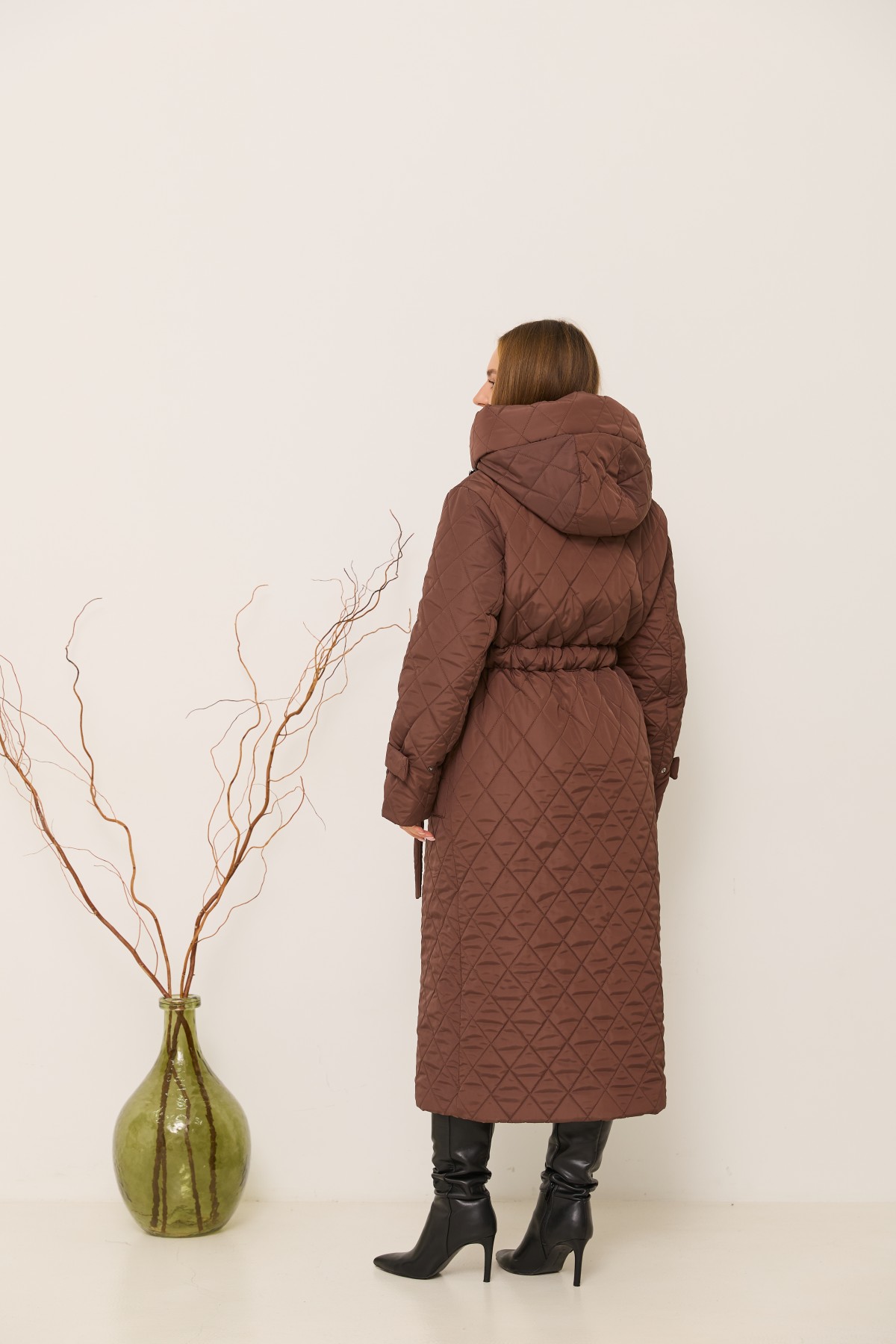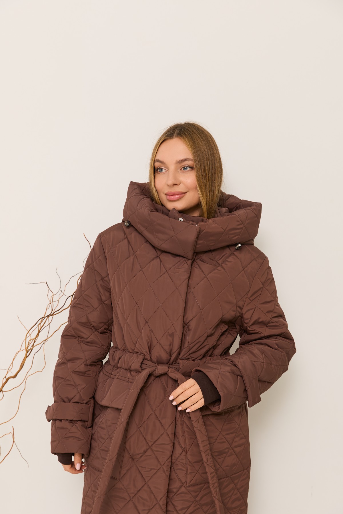 Стильна зимова куртка довжиною нижче колін, з капюшоном що відстібається на кнопках, та є куліса з фіксаторами для зручності регулювання обєму по переду капюшона. Рукав втачний, двошовний, з патами на кнопках по низу рукавів.Довжина куртки - нижче колін.Застібка на блискавці, та кнопках.Кишені накладні з клапанами.Лінія талії фіксується настрочною кулісою з поясом з основної тканини.Зимова куртка відмінно підходить для прогулянки в парку на свіжому повітрі, та для щоденного носіння в умовах міського ритму.