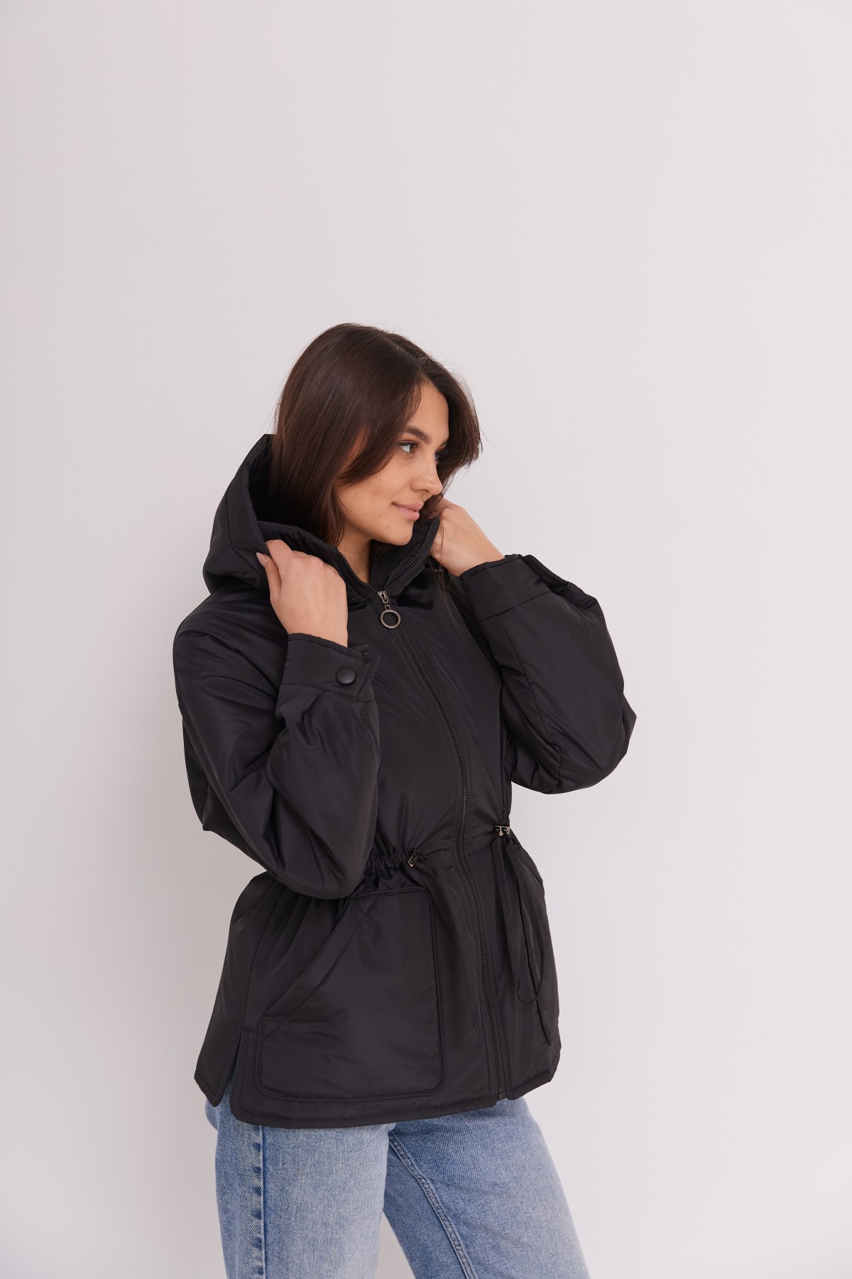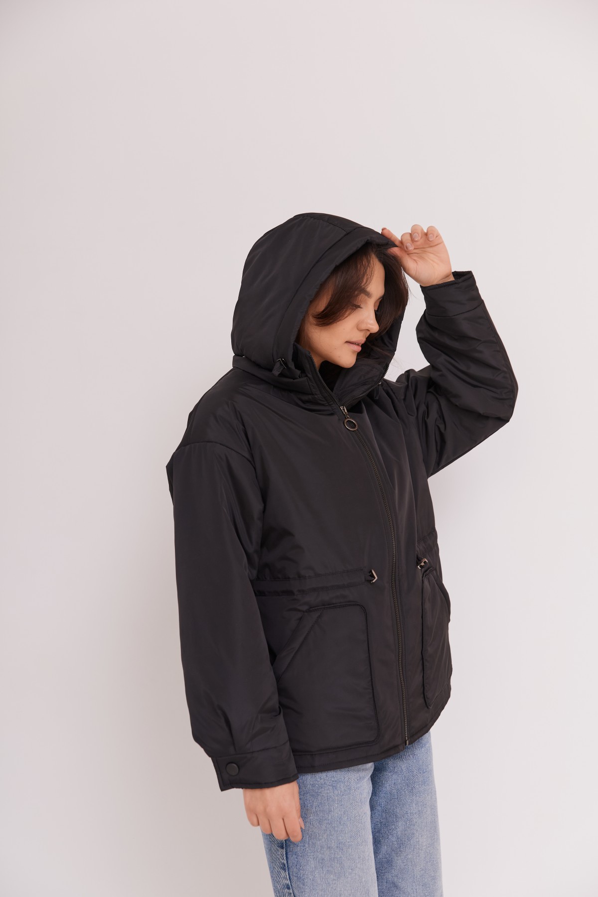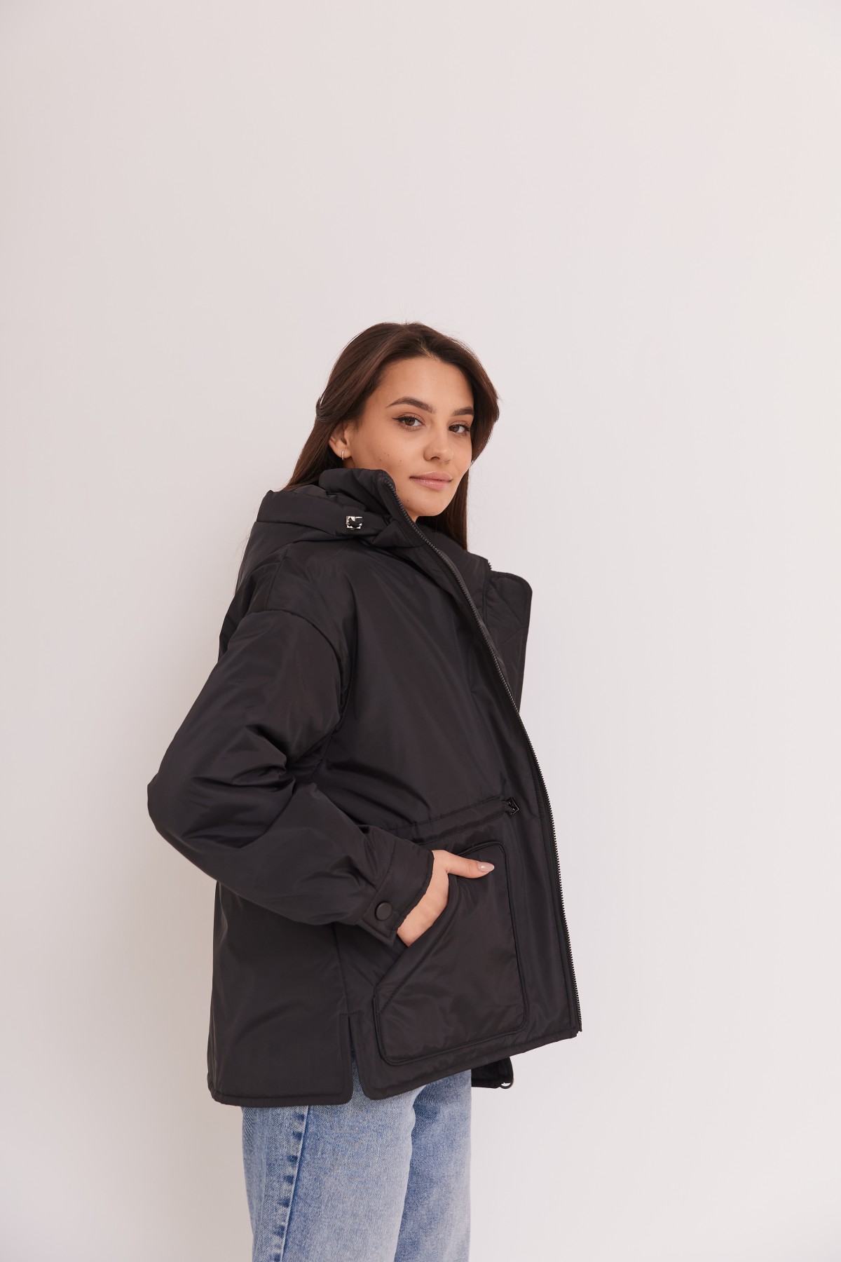 Хіт сезону - куртка крою "oversize" зі спущеним рукавом та капюшоном, прямого силуету у стилі кежуал. Довжина виробу нижче лінії стегна, низ виробу фігурний із бічними розрізами, за типом сорочки. Центральна застібка – декоративні кнопки, обтягнуті основною тканиною. Каптур по лінії відльоту регулюється по висоті на резинку з фіксатором. Рукав спущений – вільний, понизу на манжеті, застібається на декоративну кнопку. Кишеня у рамку застібається на блискавку. Знімний пояс з основної тканини. Універсальна куртка, зручна та практична, прослужить вам кілька сезонів. Її можна поєднувати з одягом у спортивному та класичному стилі. Підійде для повсякденного носіння, подорожей та занять спортом.
