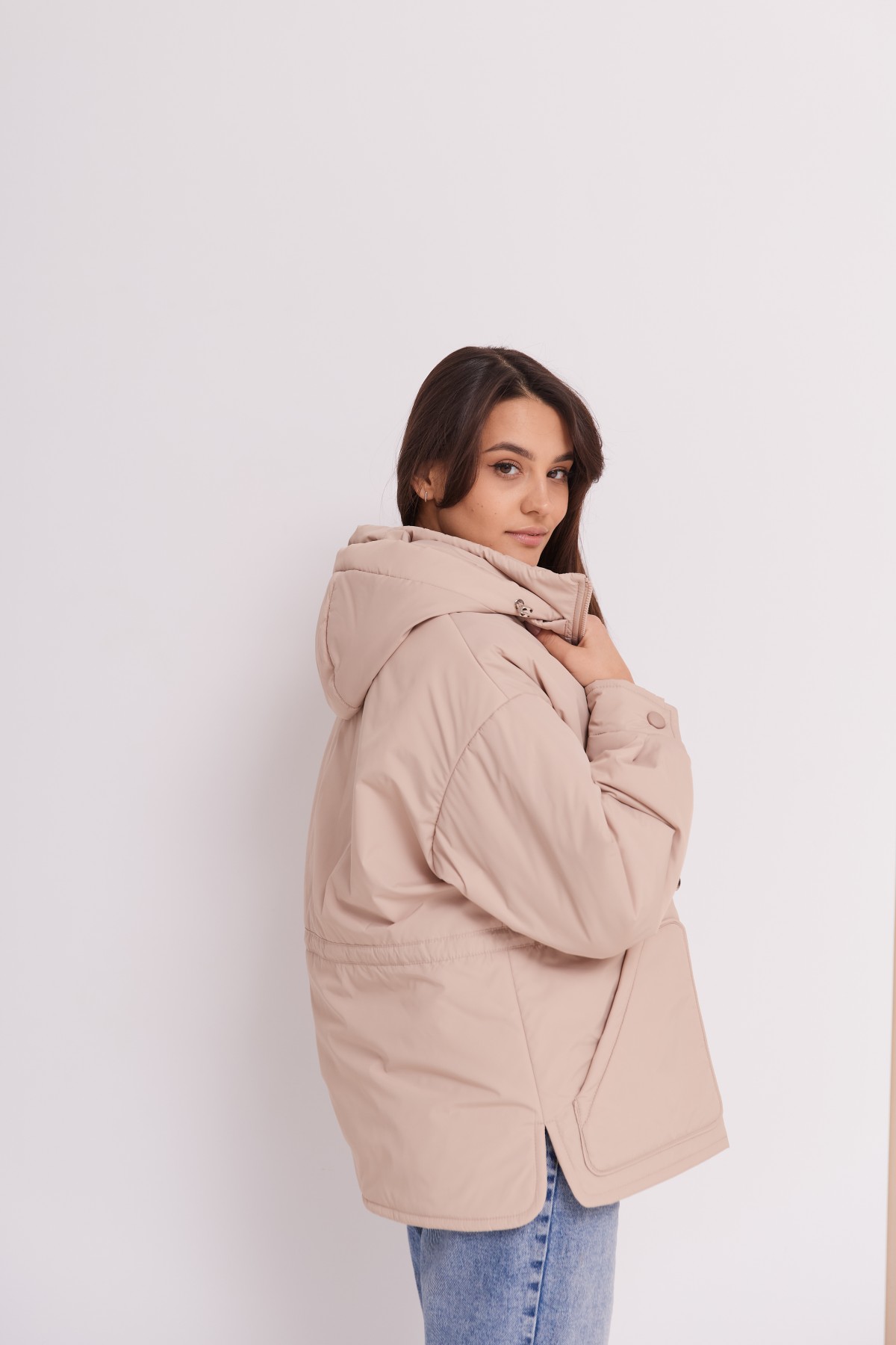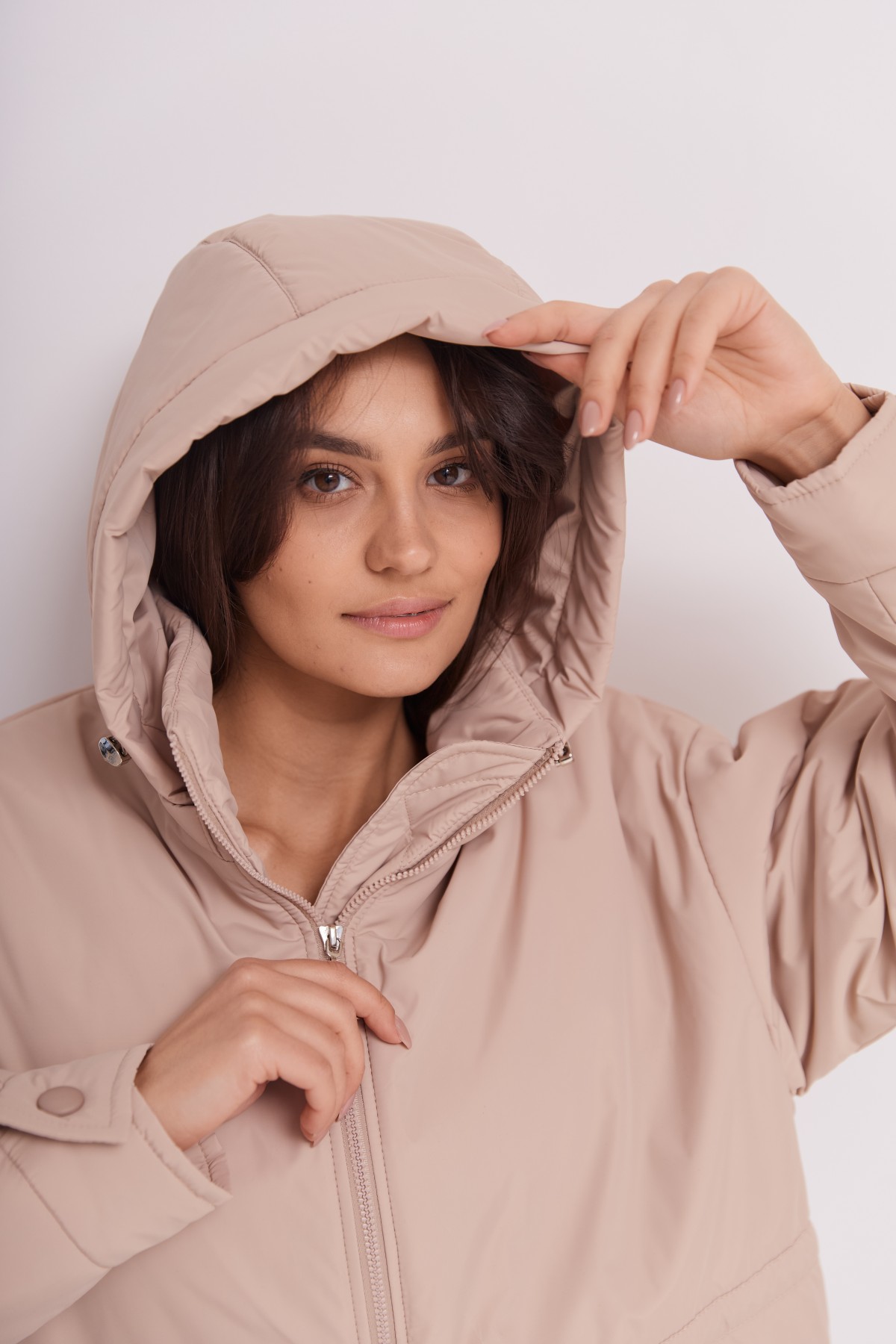 Хіт сезону - куртка крою "oversize" зі спущеним рукавом та капюшоном, прямого силуету у стилі кежуал. Довжина виробу нижче лінії стегна, низ виробу фігурний із бічними розрізами, за типом сорочки. Центральна застібка – декоративні кнопки, обтягнуті основною тканиною. Каптур по лінії відльоту регулюється по висоті на резинку з фіксатором. Рукав спущений – вільний, понизу на манжеті, застібається на декоративну кнопку. Кишеня у рамку застібається на блискавку. Знімний пояс з основної тканини. Універсальна куртка, зручна та практична, прослужить вам кілька сезонів. Її можна поєднувати з одягом у спортивному та класичному стилі. Підійде для повсякденного носіння, подорожей та занять спортом.