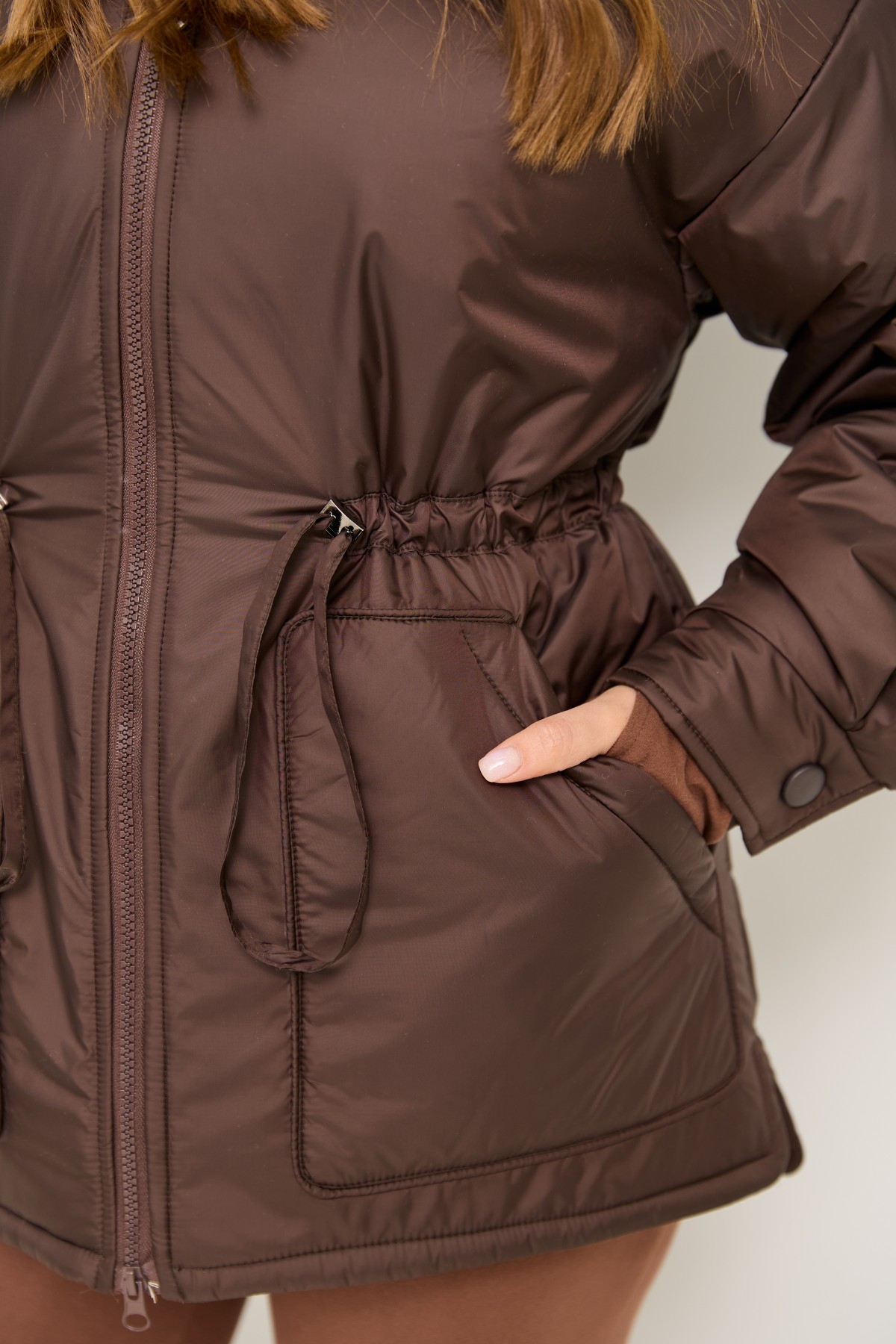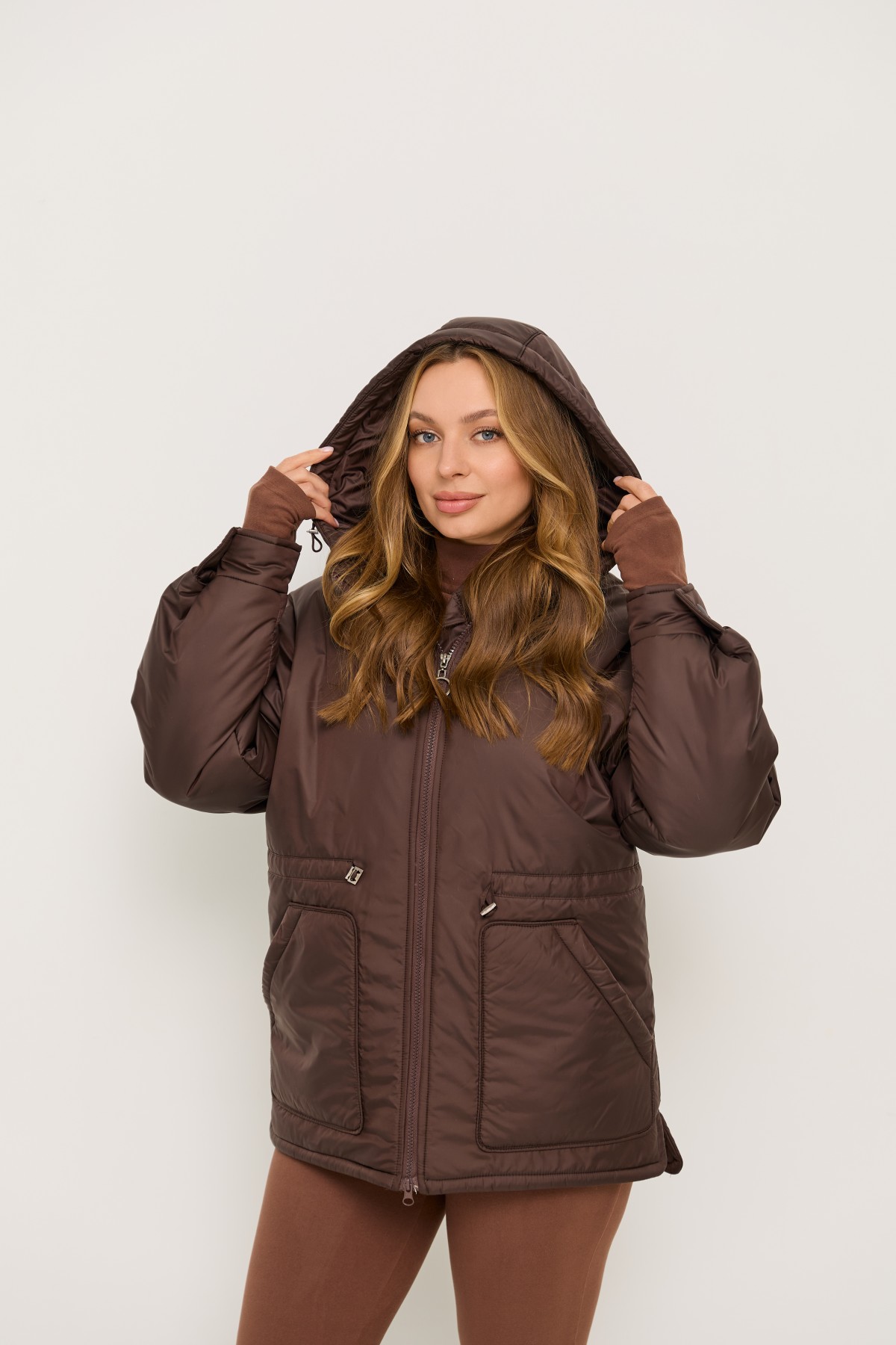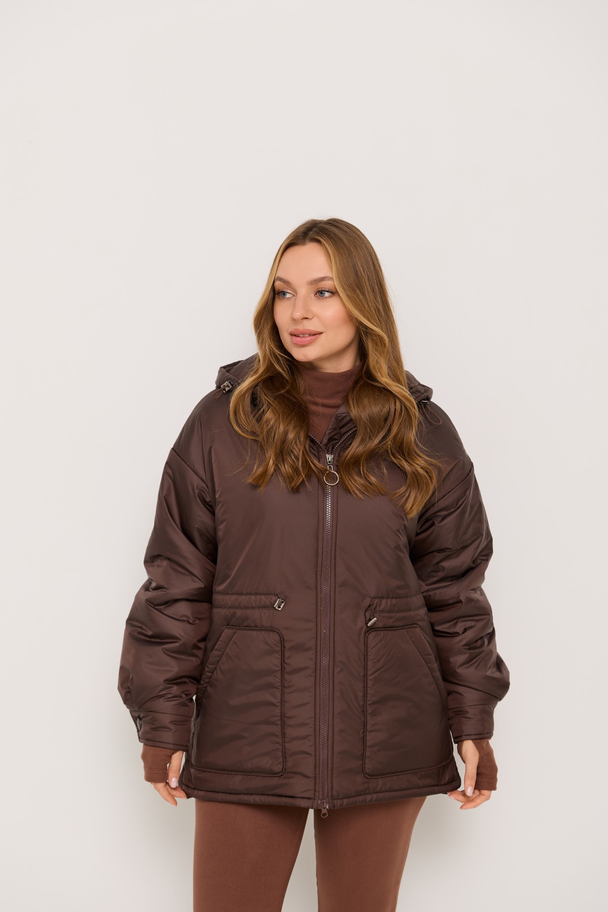 Хіт сезону - куртка крою "oversize" зі спущеним рукавом та капюшоном, прямого силуету у стилі кежуал. Довжина виробу нижче лінії стегна, низ із закругленими бічними розрізами. Центральна застібка – на блискавці. Капюшон, який регулюється по висоті лаштункою з фіксатором.Універсальна куртка, зручна та практична, прослужить вам кілька сезонів. Її можна поєднувати з одягом у спортивному та класичному стилі. Підійде для повсякденного носіння, подорожей та занять спортом.