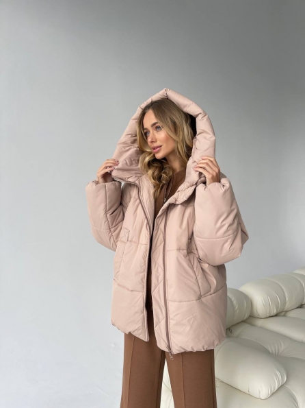 Стильний зимовий пуховик вільного крою "oversaze" зі спущеним рукавом та капюшоном. Довжина пуховика до середини стегна. Блискавка в центрі переду. Кишеня прорізна з накладним листочком. Новинка цього сезону пуховик "oversaze". Відмінно підходить під одяг вільного крою "oversize" у спортивному стилі.