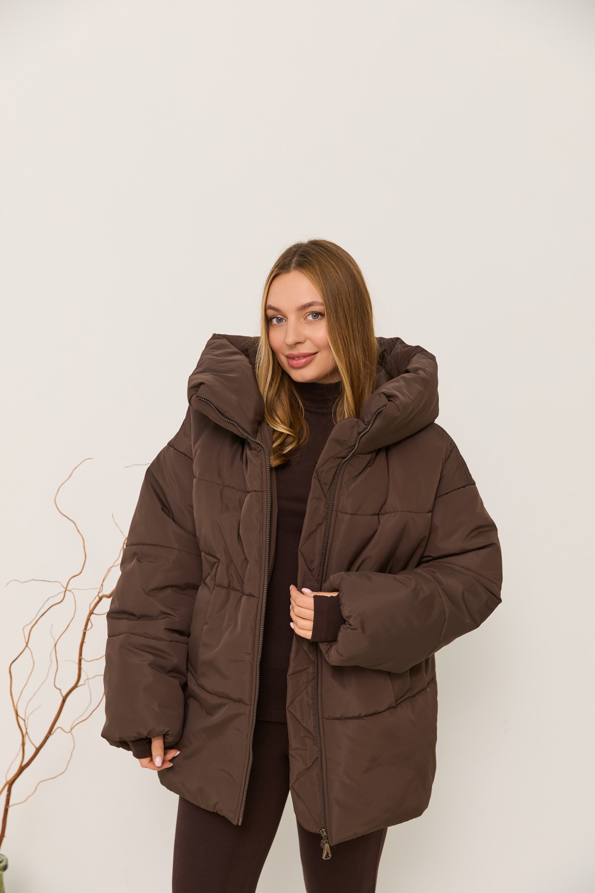 Стильний зимовий пуховик вільного крою "oversaze" зі спущеним рукавом та капюшоном. Довжина пуховика до середини стегна. Блискавка в центрі переду. Кишеня прорізна з накладним листочком. Новинка цього сезону пуховик "oversaze". Відмінно підходить під одяг вільного крою "oversize" у спортивному стилі.