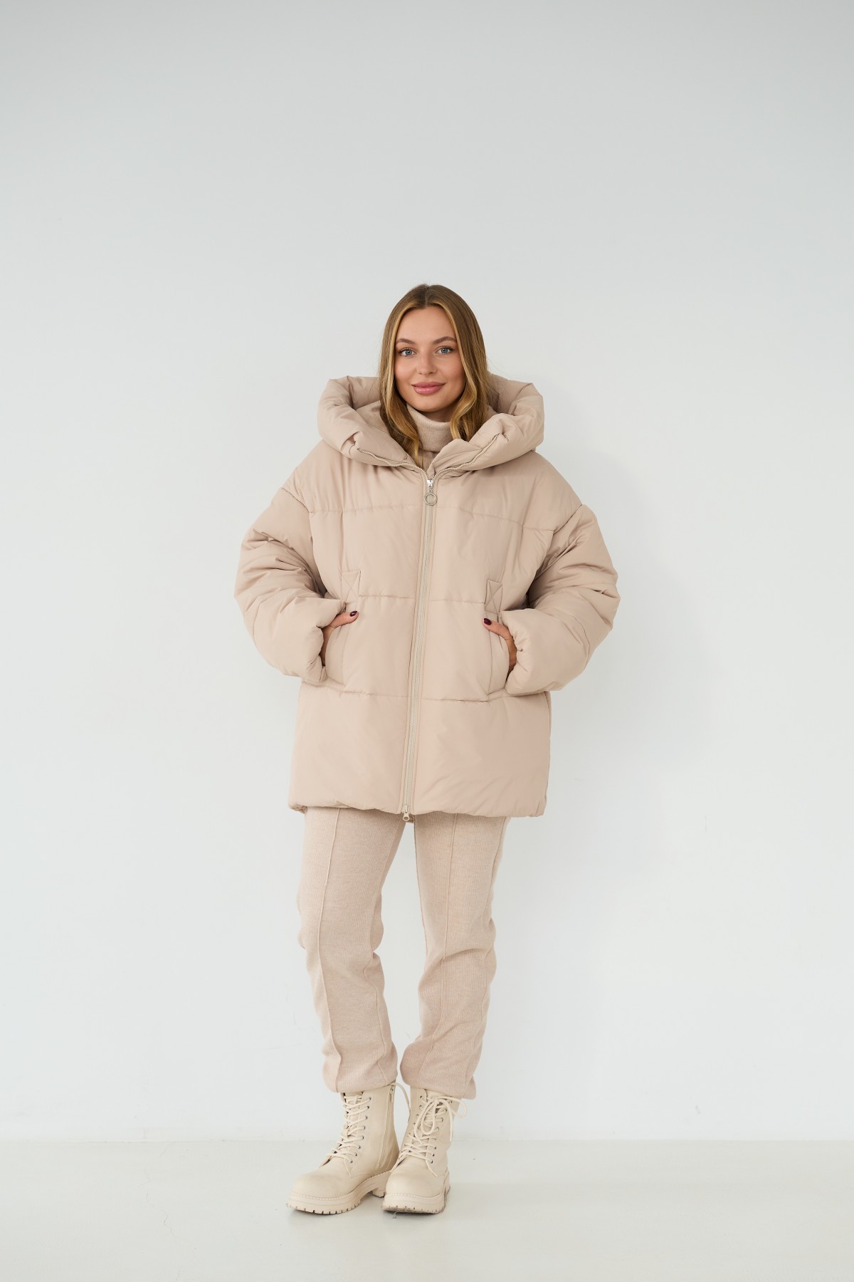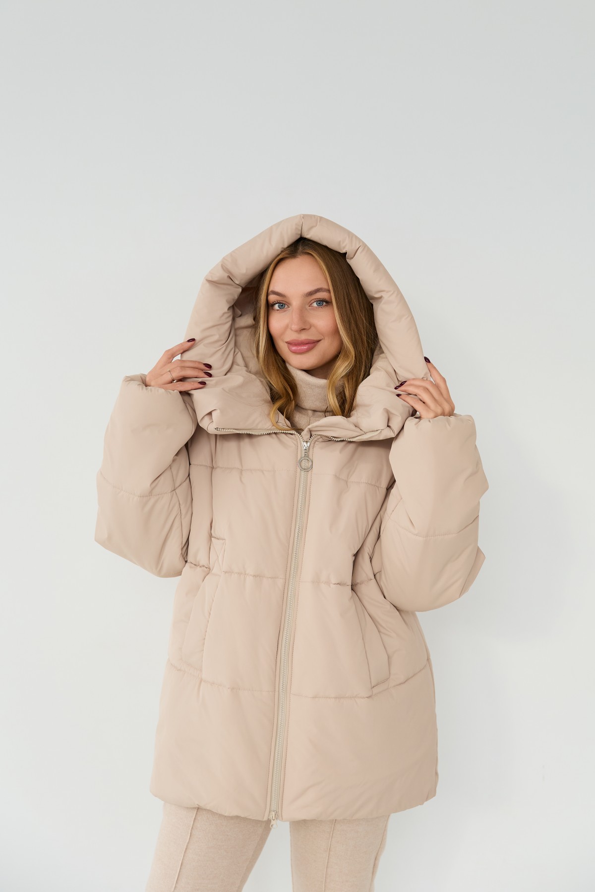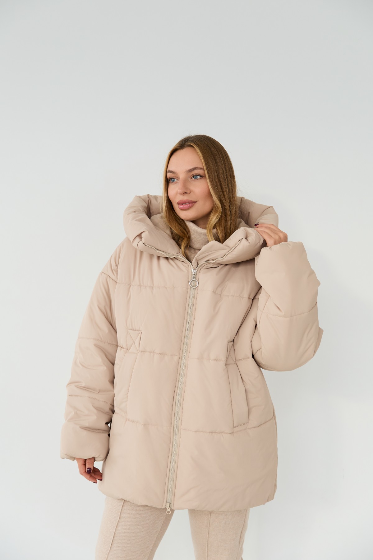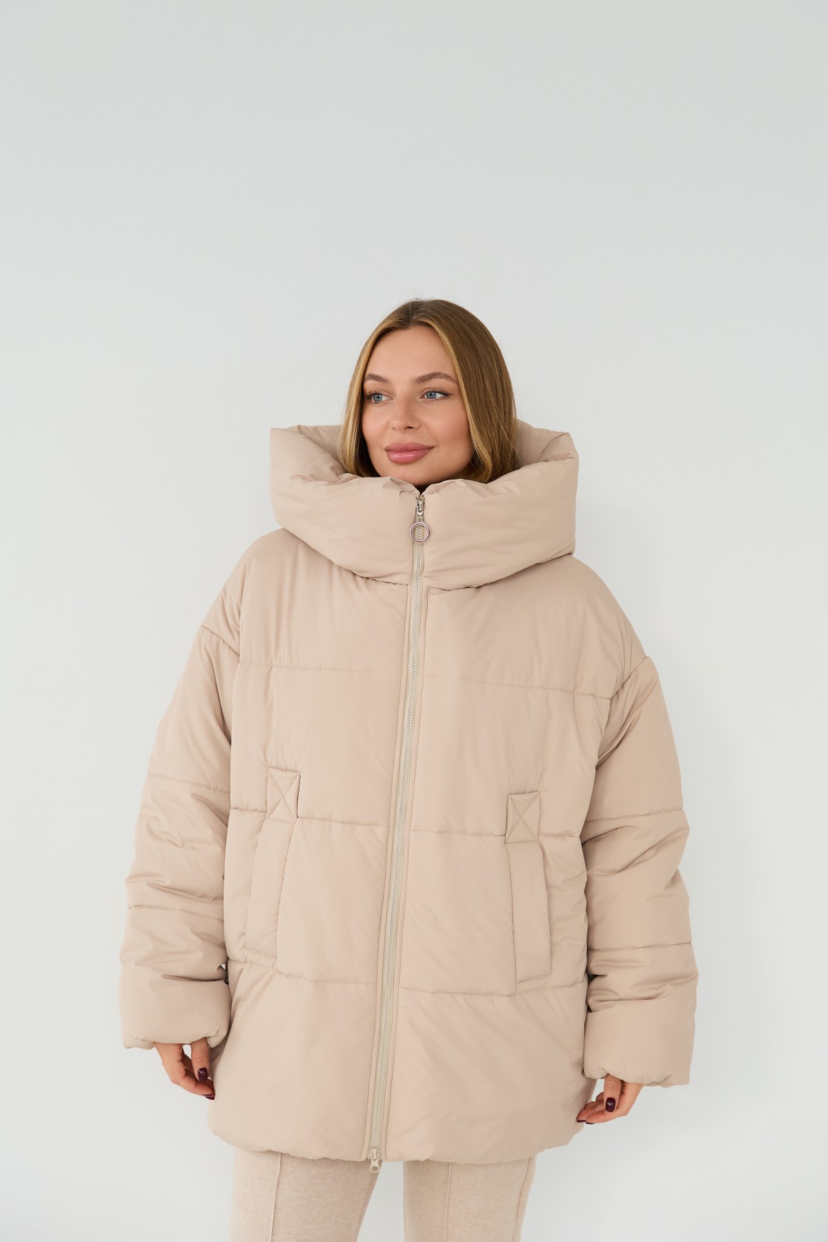 Стильний зимовий пуховик вільного крою "oversaze" зі спущеним рукавом та капюшоном. Довжина пуховика до середини стегна. Блискавка в центрі переду. Кишеня прорізна з накладним листочком. Новинка цього сезону пуховик "oversaze". Відмінно підходить під одяг вільного крою "oversize" у спортивному стилі.