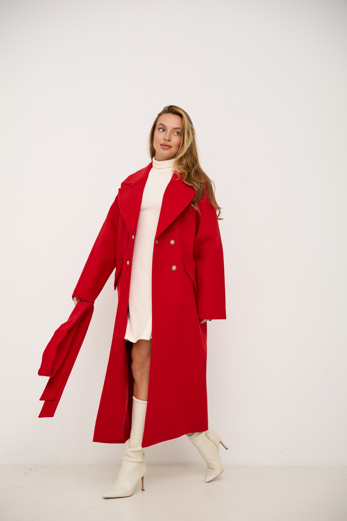 Стильне демісезонне пальто вільного крою "oversaze" зі спущеним рукавом.Довжина пальта нижче за коліно до середини ікри. Англійський комір з лацканами та відкладним коміром. Кишеня накладна. Пояс знімний з основної тканини. Новинка цього сезону пальто "oversaze". Відмінно підходить під одяг вільного крою "oversize" та під класичний брючний костюм. Елегантно пальто буде виглядати як під ошатне, так і під повсякденне плаття. Його можна носити, як під класичне взуття, так і міксувати із взуттям у спортивному стилі. Також до цього пальта можна вибрати аксесуар у вигляді вязаного снуда або вязаного шарфа.