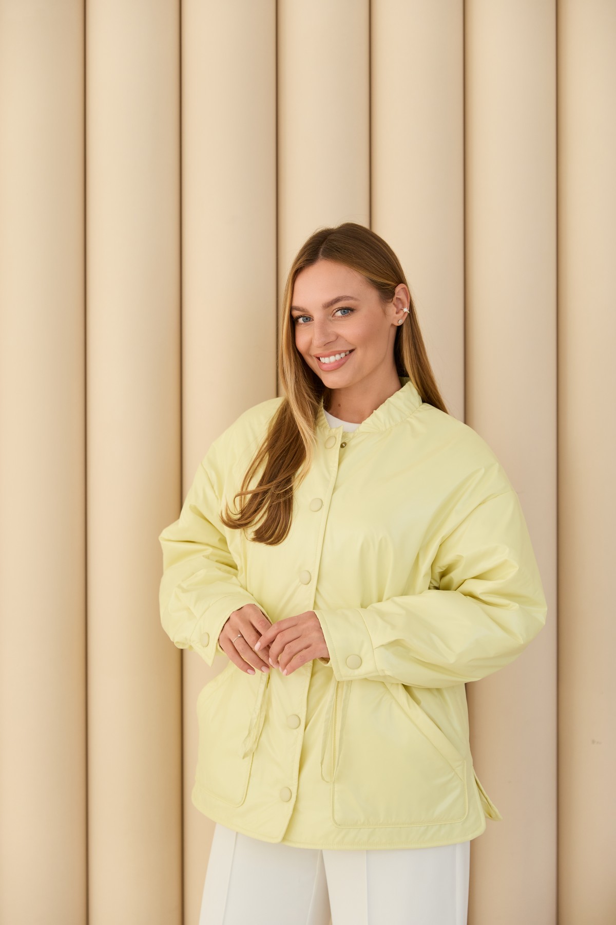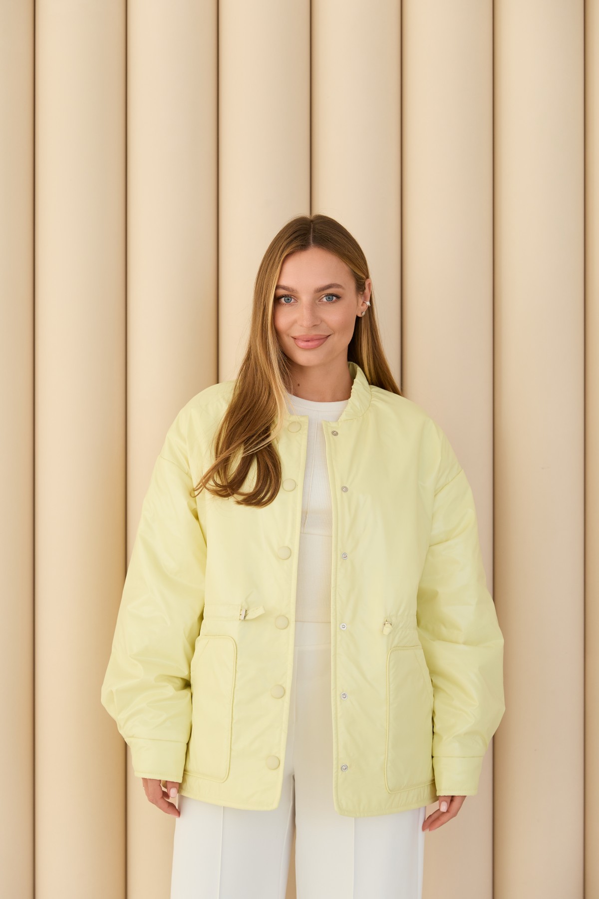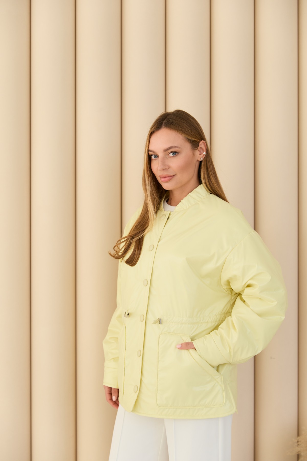 Универсальная куртка-рубашка прямого силуэта, со спущенным плечом в стиле "кежуал" Длина куртки ниже уровня бедра. Застежка по борту полочки кнопках. Накладной карман по контуру декорирован кантом. Объем по линии талии регулируется кулисой с фиксаторами. Воротник-стойка на резинке. Втачной одношовный рукав. По низу рукава манжет на кнопке.Накладной карман по контуру декорирован кантом.Объем по линии талии регулируется кулисой с фиксаторами.Хит этого сезона универсальная куртка-рубашка, которая отлично подходит под одежду свободного покроя в спортивном стиле и под одежду в классическом стиле. Отлично подходит для прогулки в парке и для ежедневной носки в условиях городского ритма.