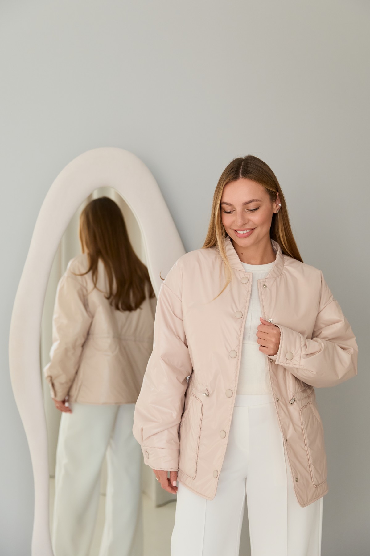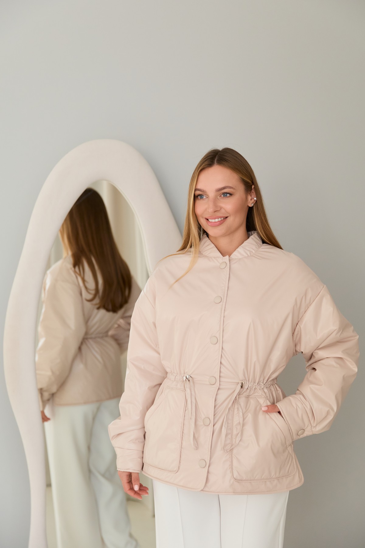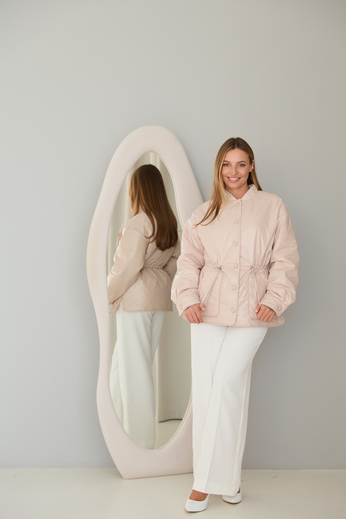 Универсальная куртка-рубашка прямого силуэта, со спущенным плечом в стиле "кежуал" Длина куртки ниже уровня бедра. Застежка по борту полочки кнопках. Накладной карман по контуру декорирован кантом. Объем по линии талии регулируется кулисой с фиксаторами. Воротник-стойка на резинке. Втачной одношовный рукав. По низу рукава манжет на кнопке.Накладной карман по контуру декорирован кантом.Объем по линии талии регулируется кулисой с фиксаторами.Хит этого сезона универсальная куртка-рубашка, которая отлично подходит под одежду свободного покроя в спортивном стиле и под одежду в классическом стиле. Отлично подходит для прогулки в парке и для ежедневной носки в условиях городского ритма.