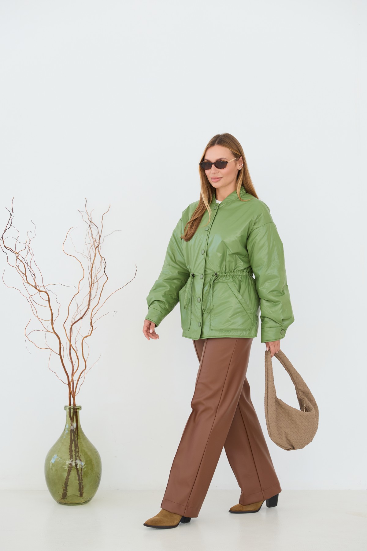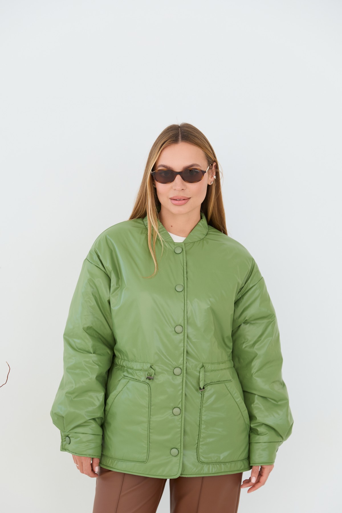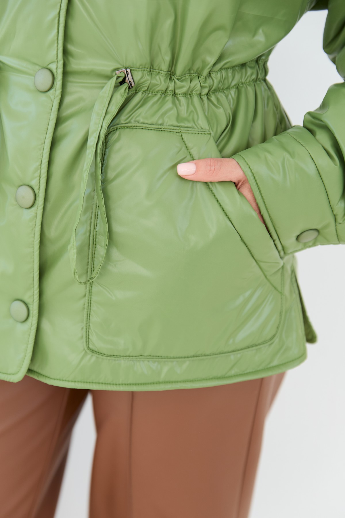 Универсальная куртка-рубашка прямого силуэта, со спущенным плечом в стиле "кежуал" Длина куртки ниже уровня бедра. Застежка по борту полочки кнопках. Накладной карман по контуру декорирован кантом. Объем по линии талии регулируется кулисой с фиксаторами. Воротник-стойка на резинке. Втачной одношовный рукав. По низу рукава манжет на кнопке.Накладной карман по контуру декорирован кантом.Объем по линии талии регулируется кулисой с фиксаторами.Хит этого сезона универсальная куртка-рубашка, которая отлично подходит под одежду свободного покроя в спортивном стиле и под одежду в классическом стиле. Отлично подходит для прогулки в парке и для ежедневной носки в условиях городского ритма.