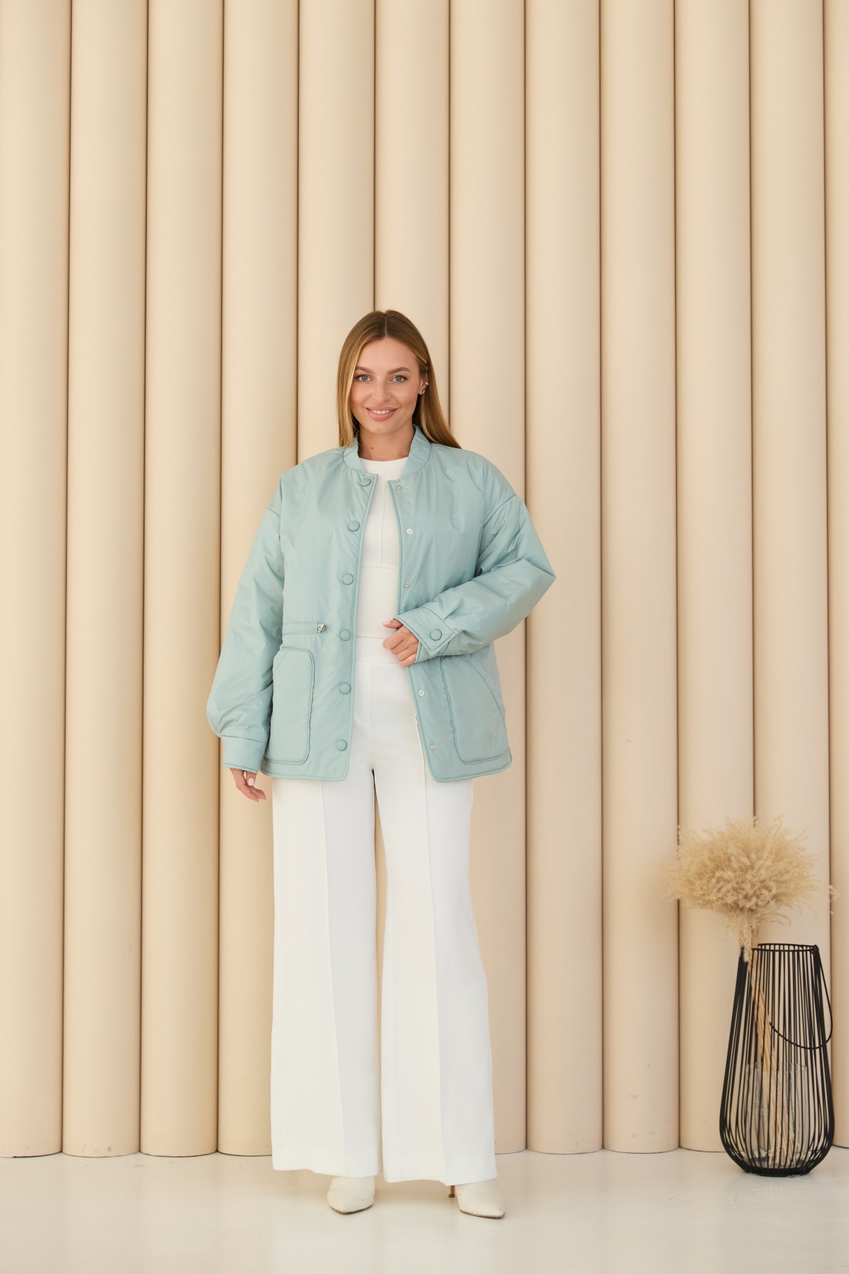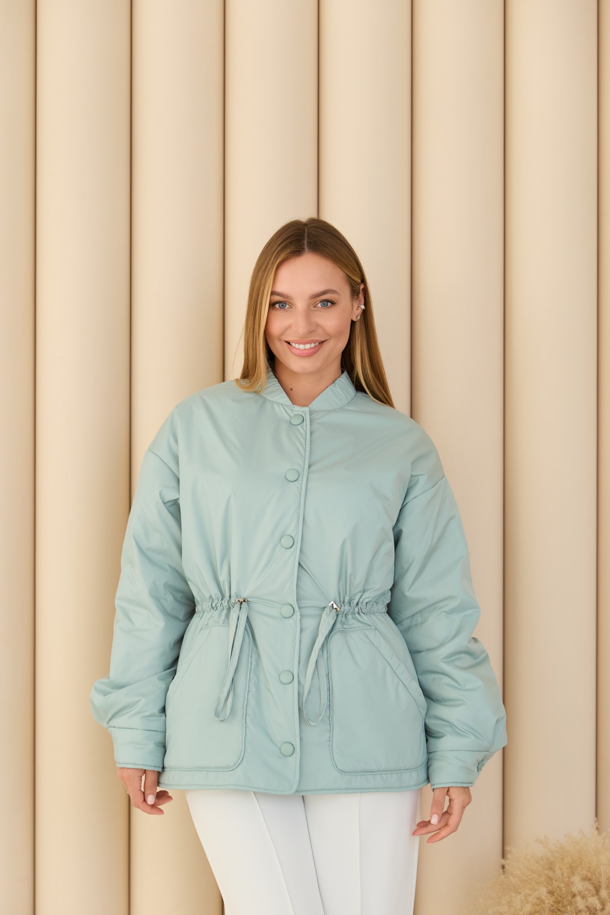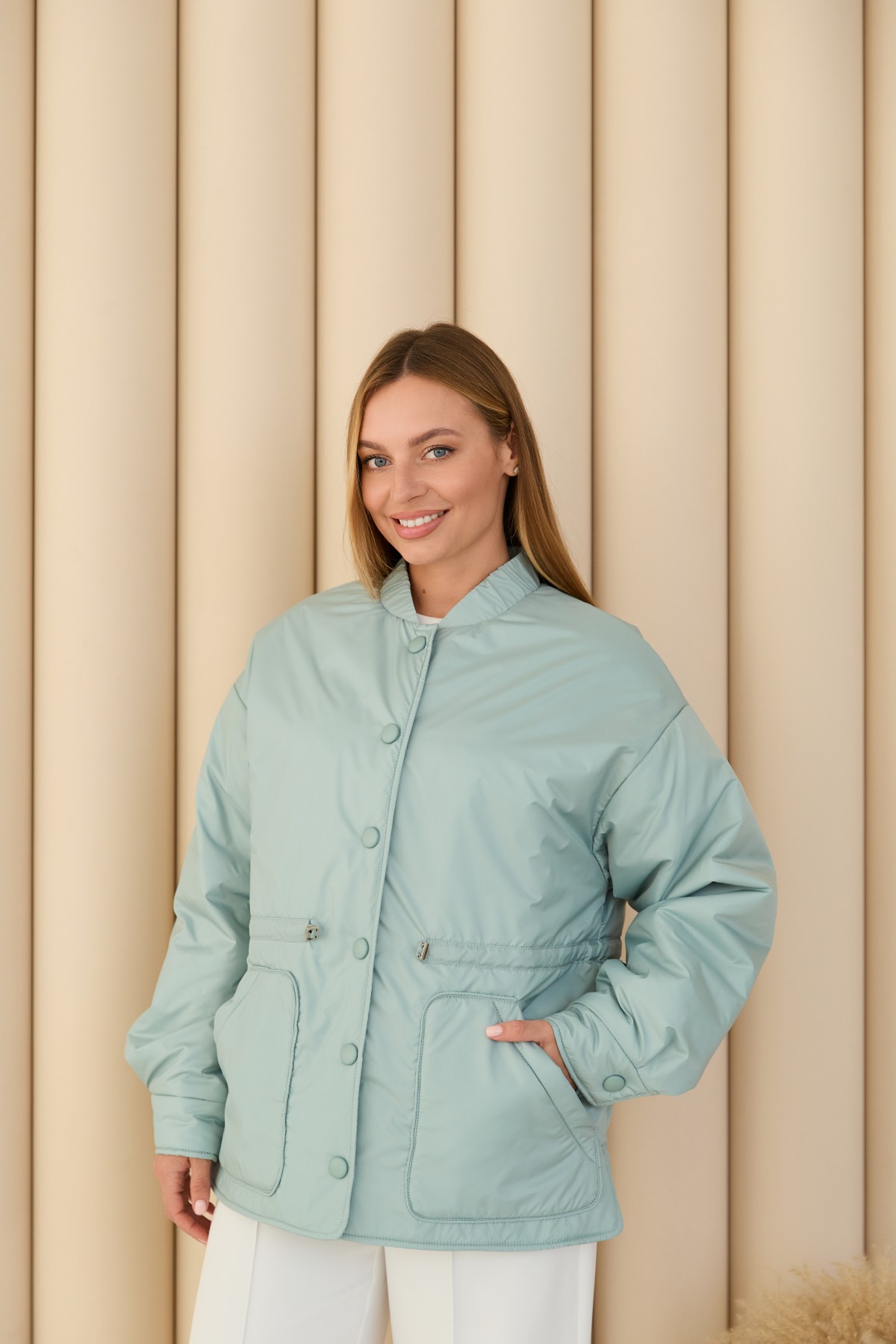 Универсальная куртка-рубашка прямого силуэта, со спущенным плечом в стиле "кежуал" Длина куртки ниже уровня бедра. Застежка по борту полочки кнопках. Накладной карман по контуру декорирован кантом. Объем по линии талии регулируется кулисой с фиксаторами. Воротник-стойка на резинке. Втачной одношовный рукав. По низу рукава манжет на кнопке.Накладной карман по контуру декорирован кантом.Объем по линии талии регулируется кулисой с фиксаторами.Хит этого сезона универсальная куртка-рубашка, которая отлично подходит под одежду свободного покроя в спортивном стиле и под одежду в классическом стиле. Отлично подходит для прогулки в парке и для ежедневной носки в условиях городского ритма.