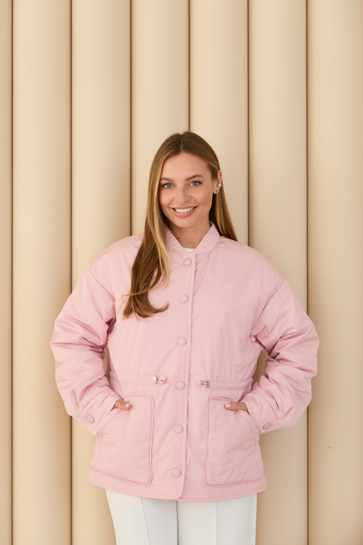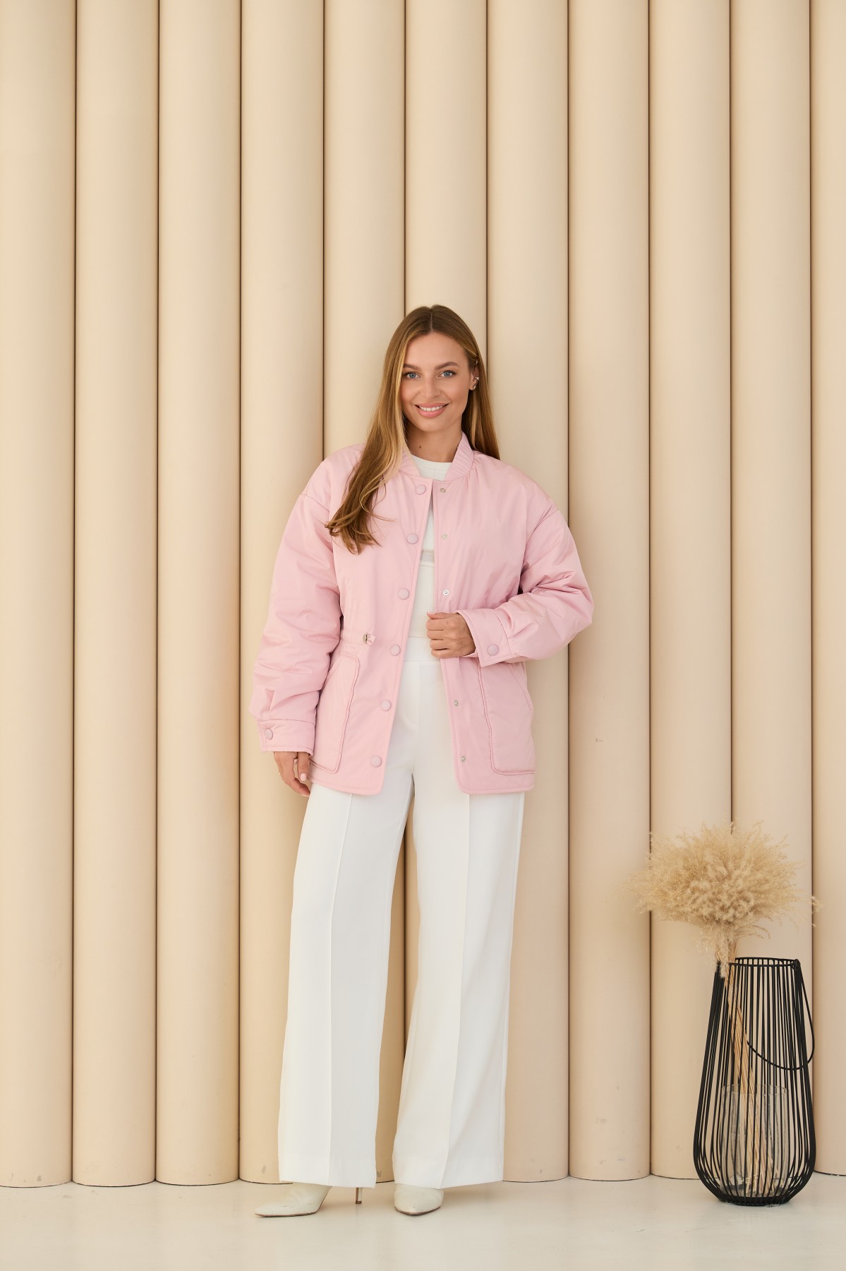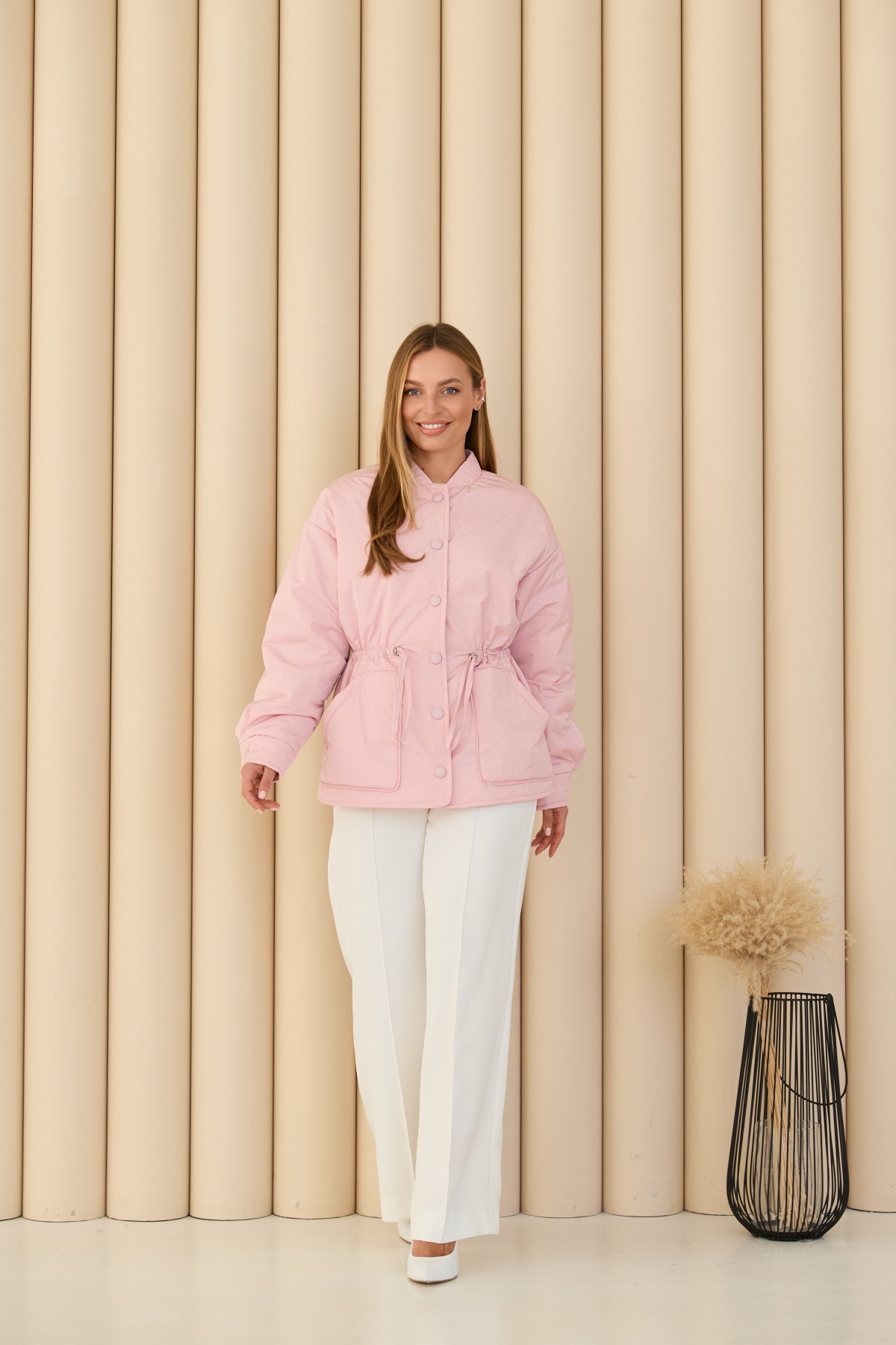 Универсальная куртка-рубашка прямого силуэта, со спущенным плечом в стиле "кежуал" Длина куртки ниже уровня бедра. Застежка по борту полочки кнопках. Накладной карман по контуру декорирован кантом. Объем по линии талии регулируется кулисой с фиксаторами. Воротник-стойка на резинке. Втачной одношовный рукав. По низу рукава манжет на кнопке.Накладной карман по контуру декорирован кантом.Объем по линии талии регулируется кулисой с фиксаторами.Хит этого сезона универсальная куртка-рубашка, которая отлично подходит под одежду свободного покроя в спортивном стиле и под одежду в классическом стиле. Отлично подходит для прогулки в парке и для ежедневной носки в условиях городского ритма.