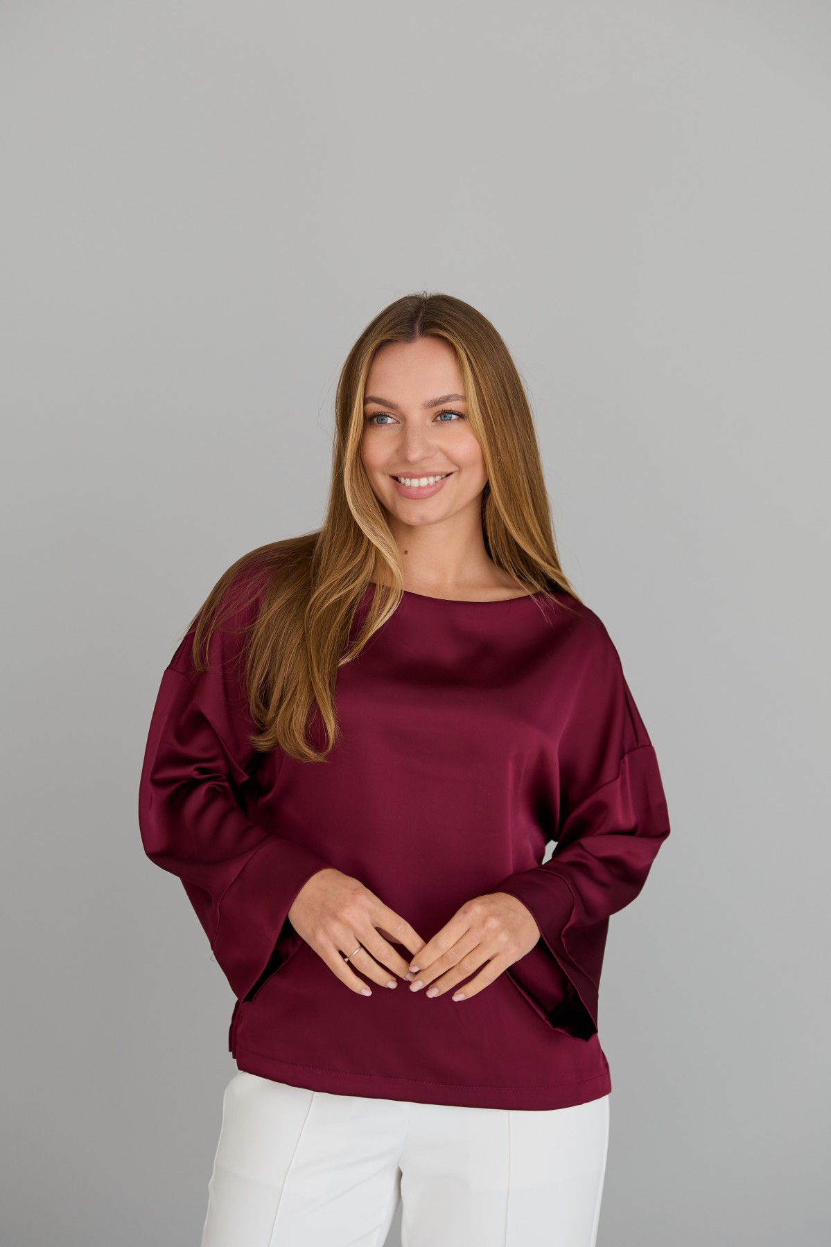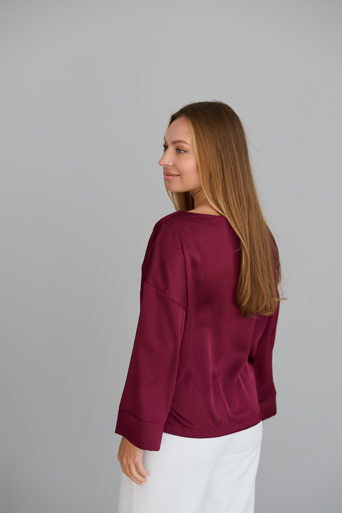 Свободна легка шелкова футболка з коротким рукавом, по боках є розрізи, довжиною до бедра. Класична практична футболка - блуза з атласного шелку дабл, проста, але у той же час таку річ можна одягати під різні варіанти брюк, спідниць, жакетів чи жилеток.